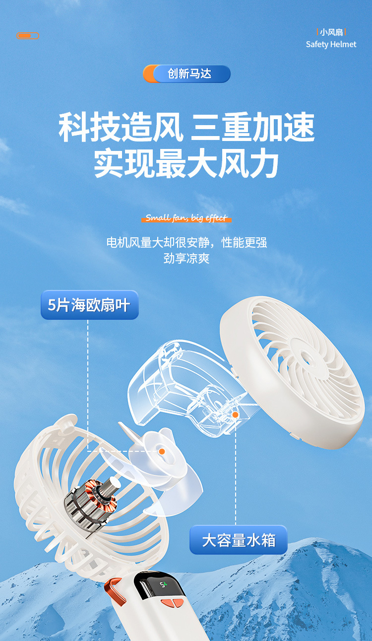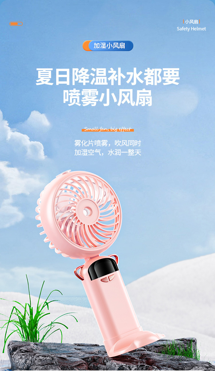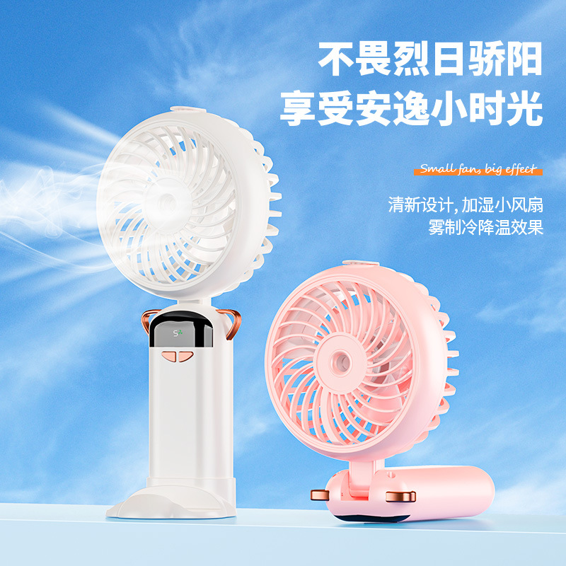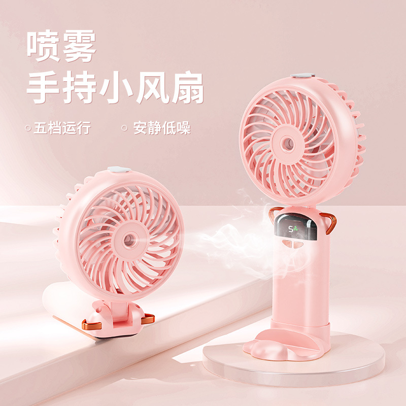 新款喷雾小风扇手持挂脖折叠数显礼品跨境专供加工定制
