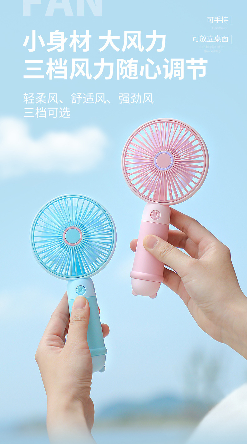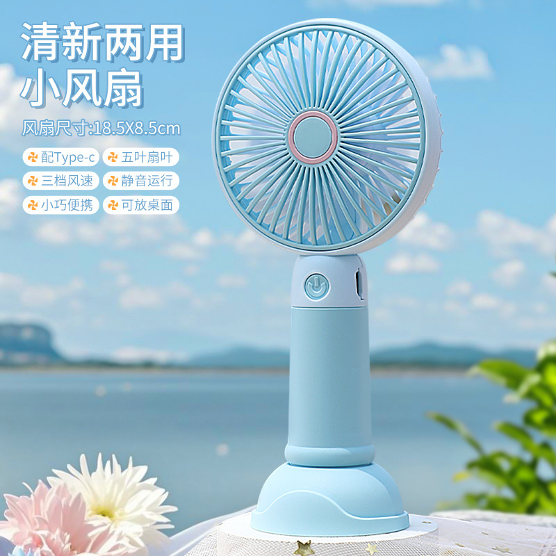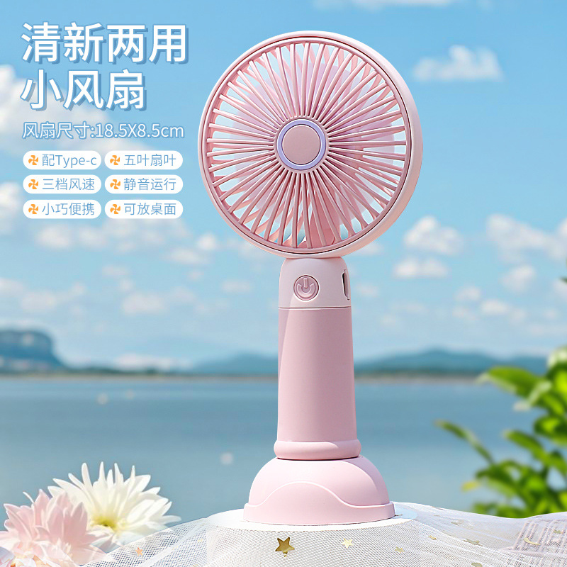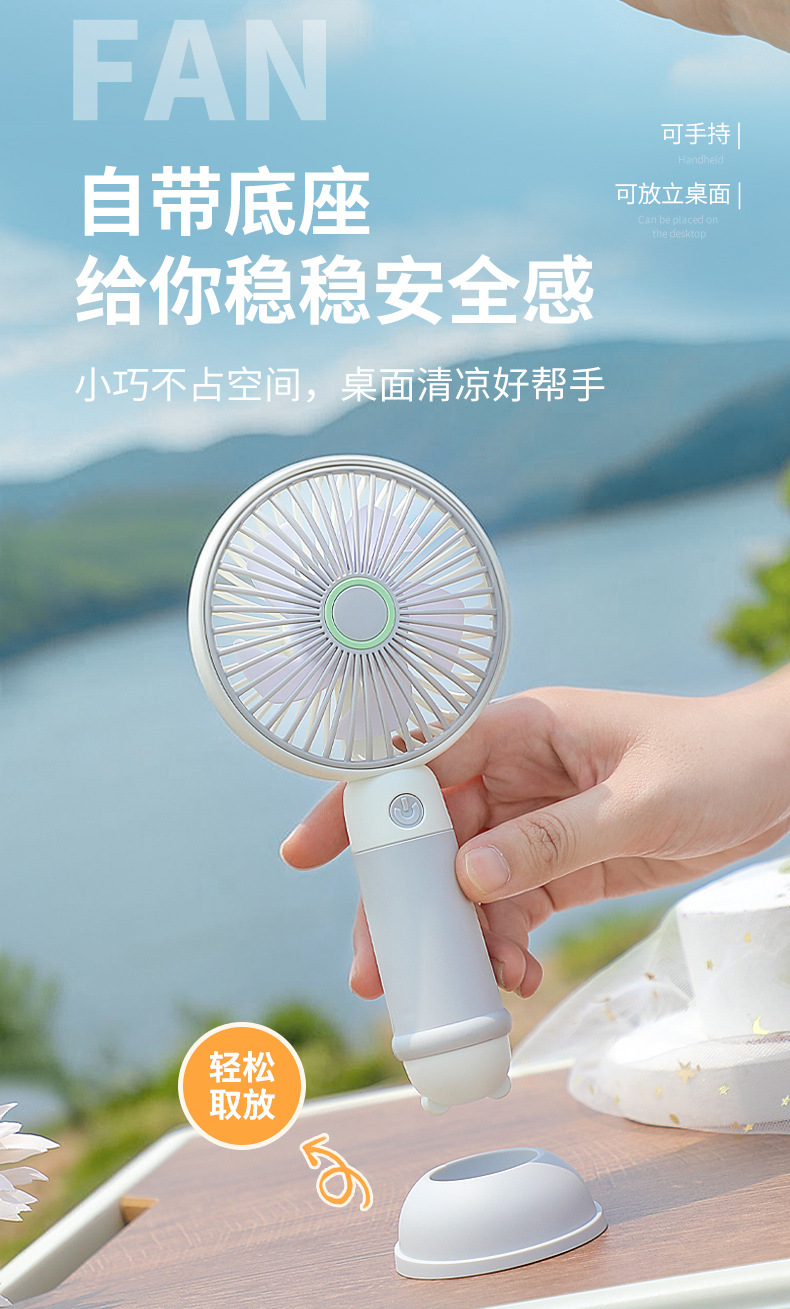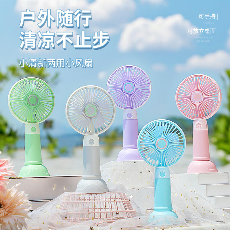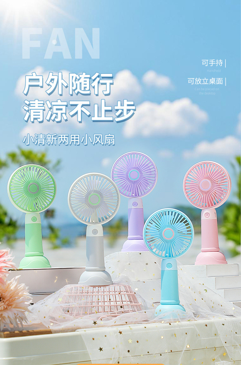 跨境小清新带底座桌面小风扇礼品usb充电户外便携式迷你手持风扇
