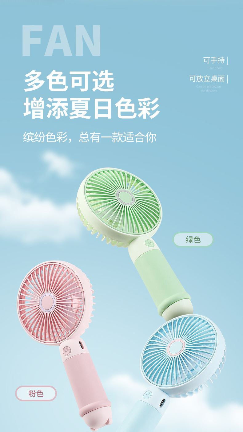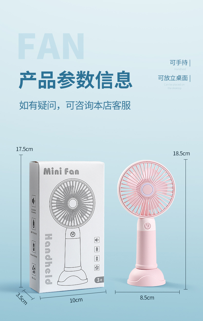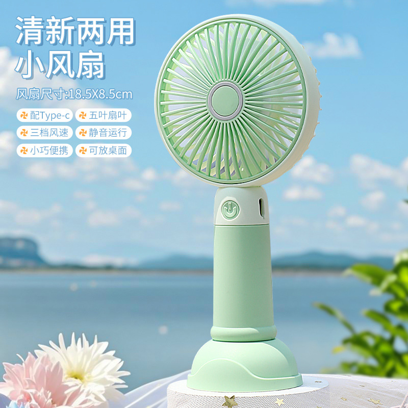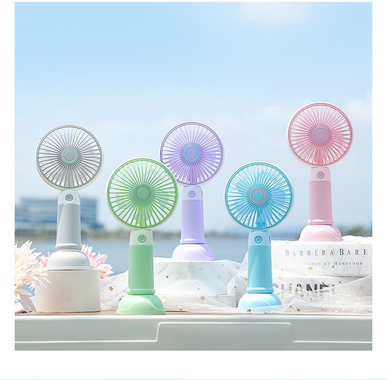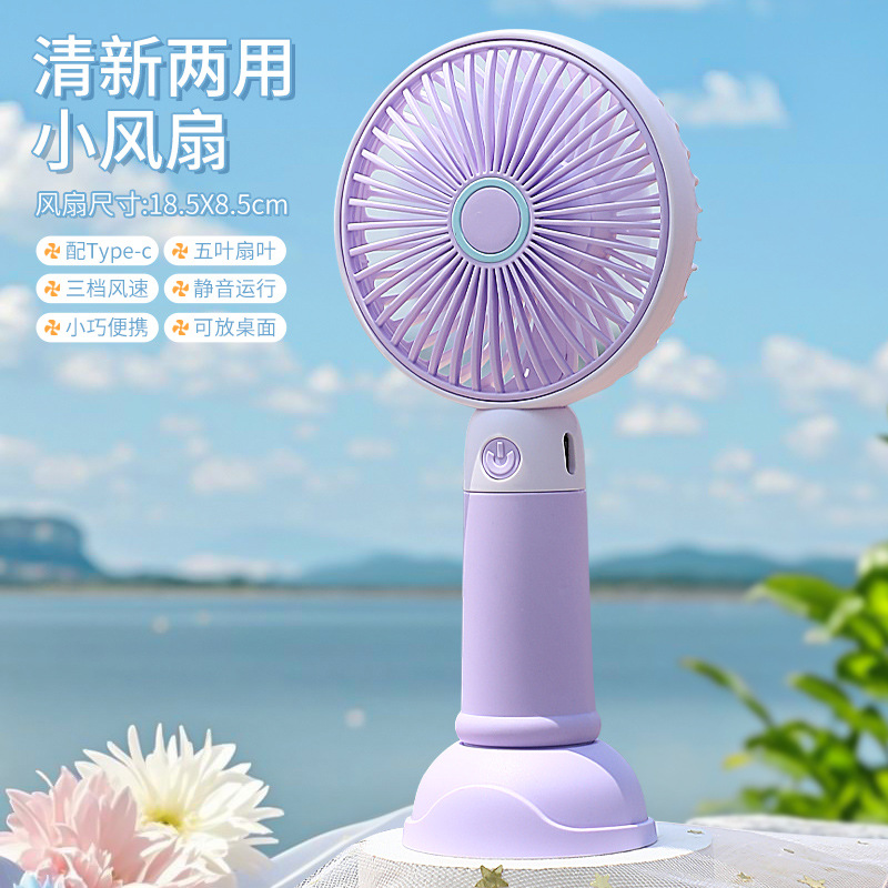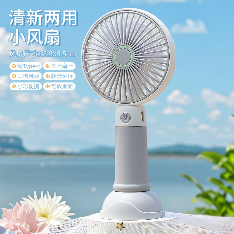 跨境小清新带底座桌面小风扇礼品usb充电户外便携式迷你手持风扇