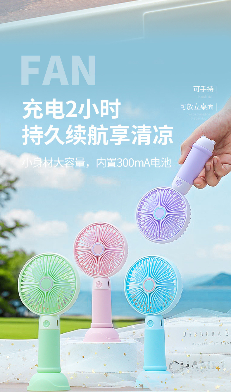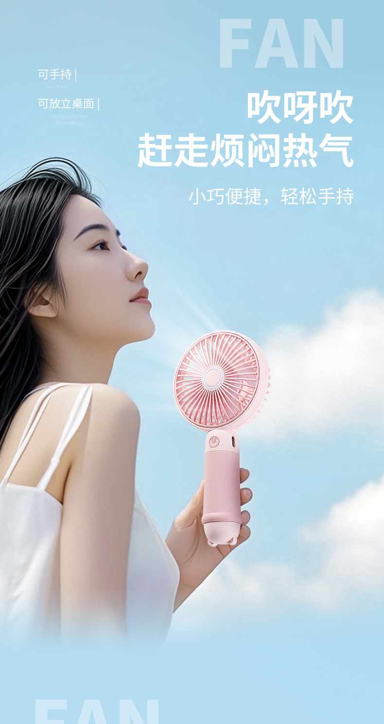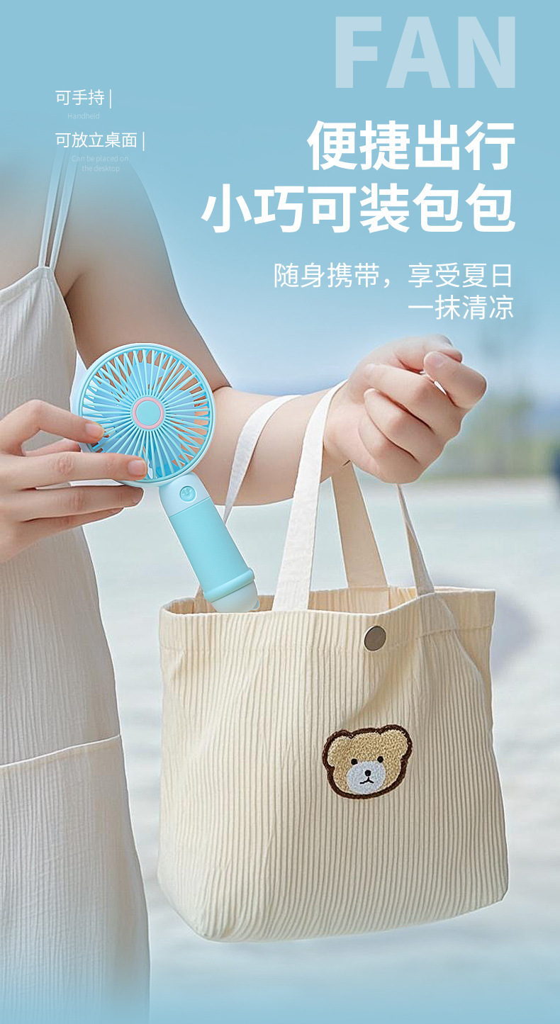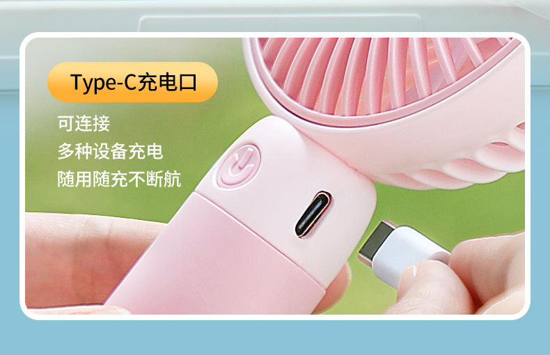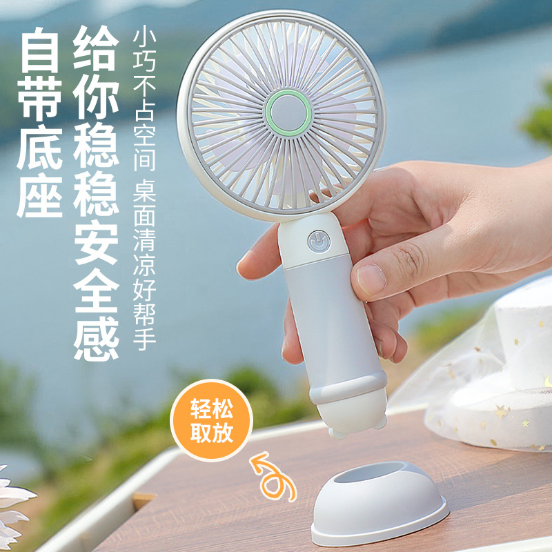 跨境小清新带底座桌面小风扇礼品usb充电户外便携式迷你手持风扇