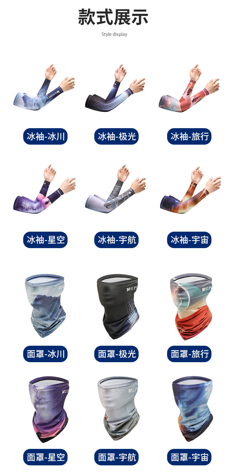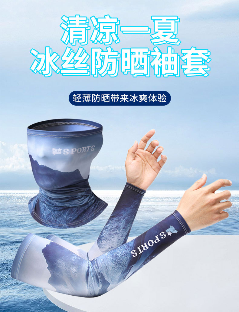 防晒袖套夏季新款冰袖套装男款透气冰丝面罩骑行袖套防紫外线批发