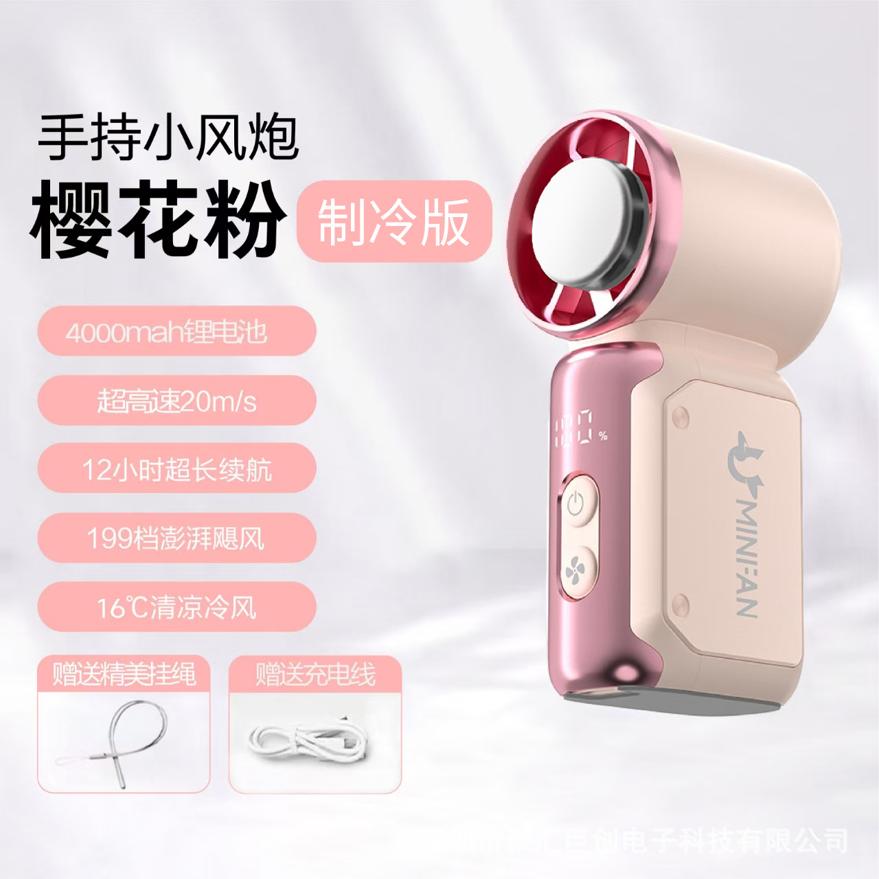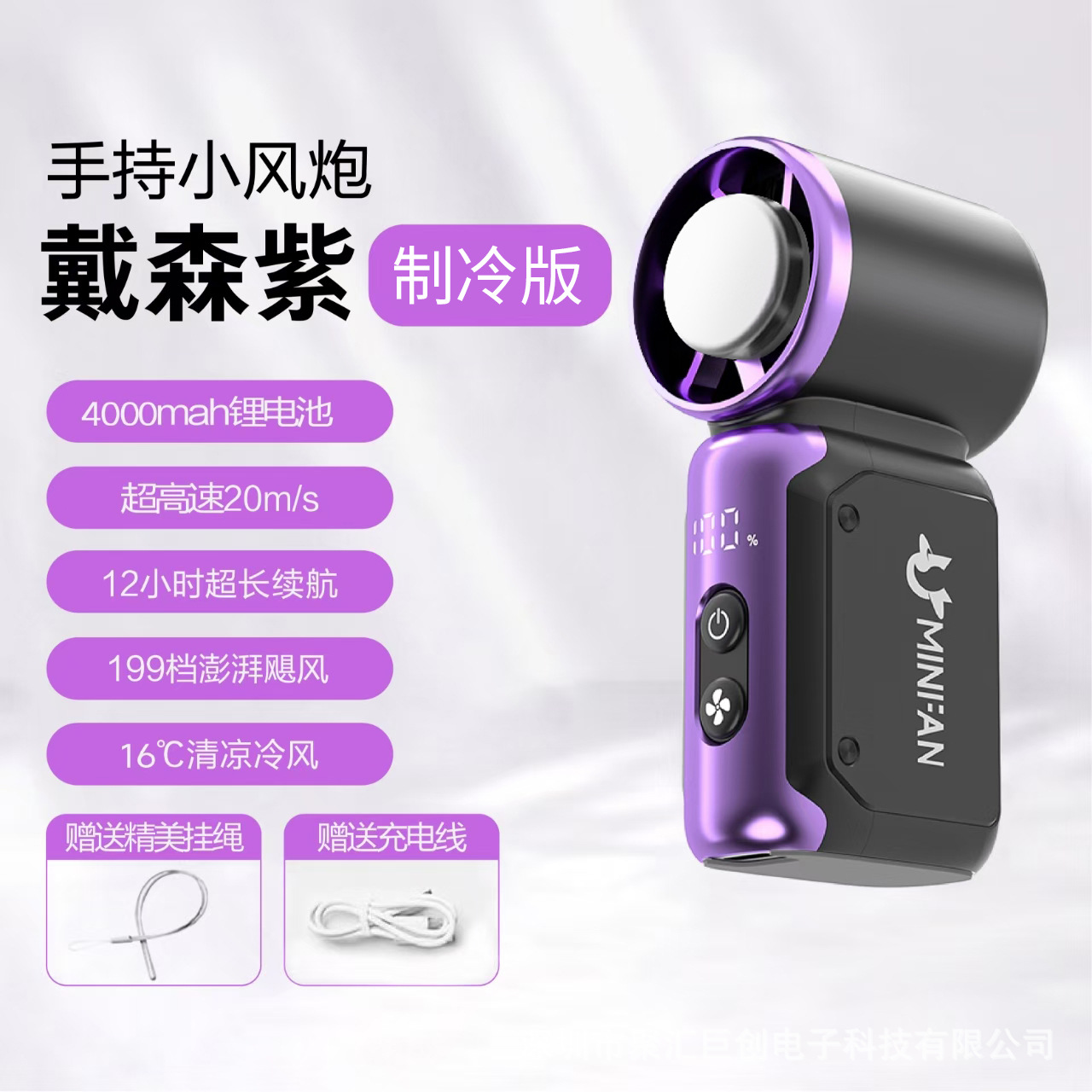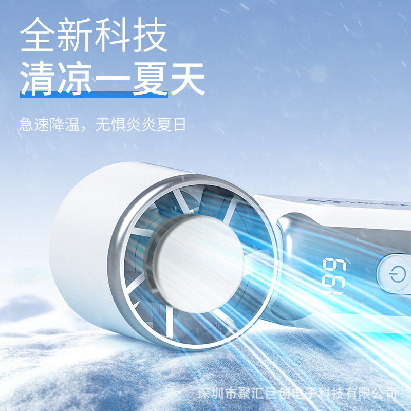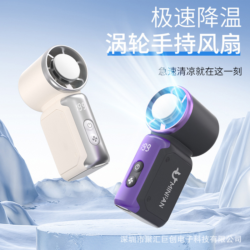 跨境新款冰敷手持风扇户外便携式usb数显制冷高速暴力涡轮小风扇