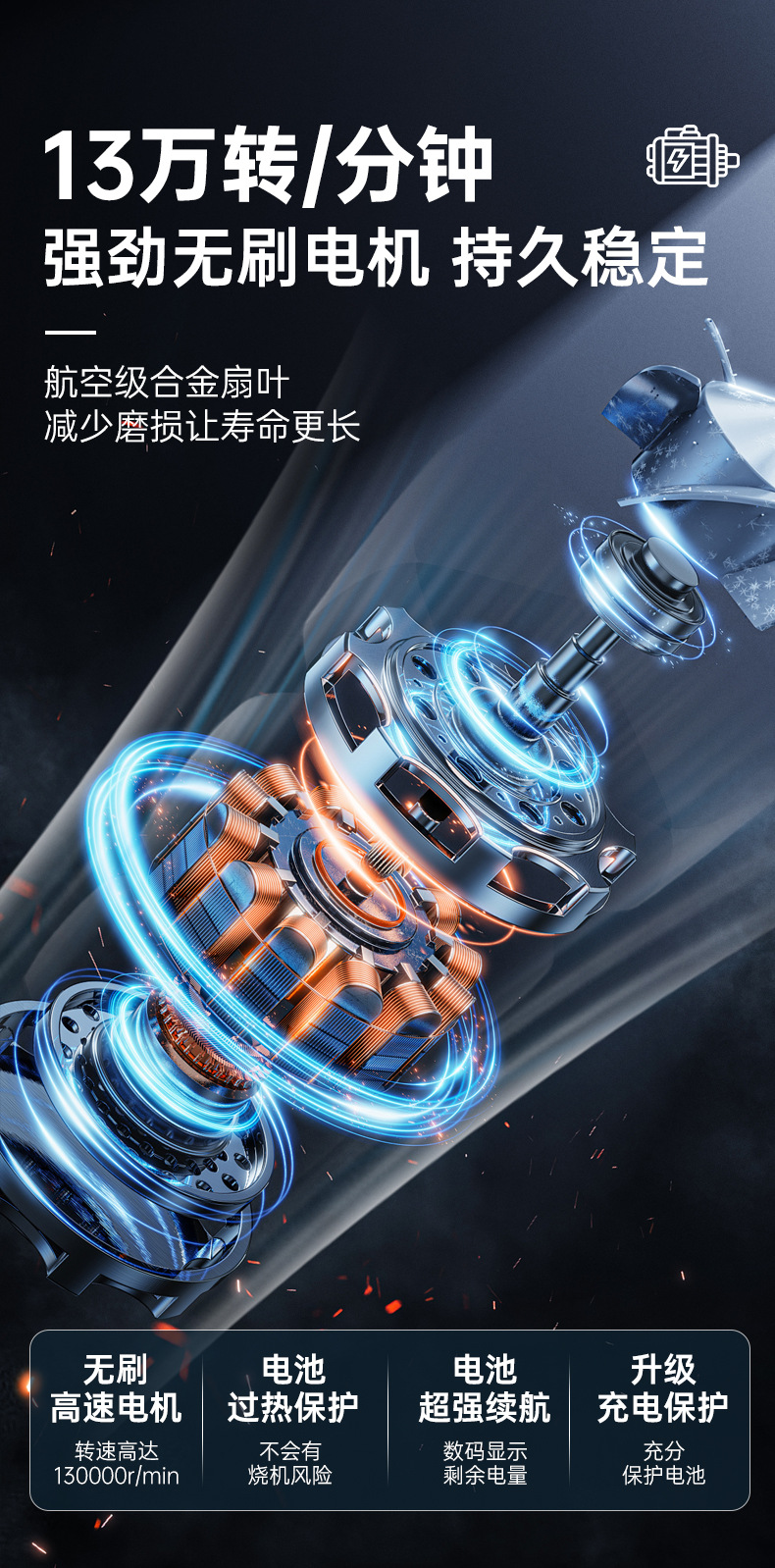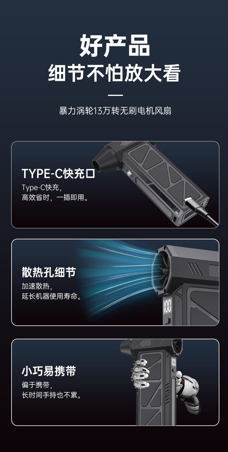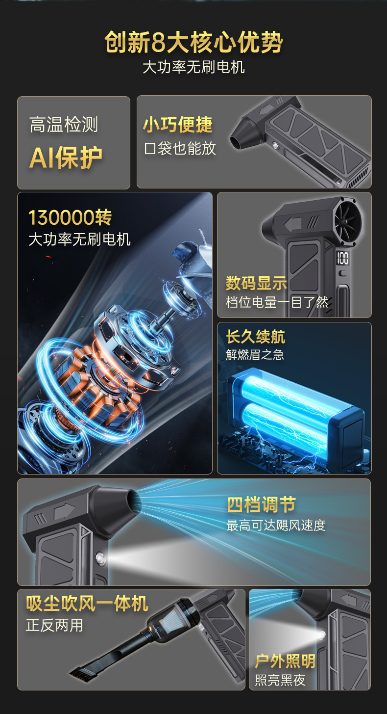 跨境无线暴力涡轮风扇户外高速14万便携迷你手持车载吸尘器吹雪机