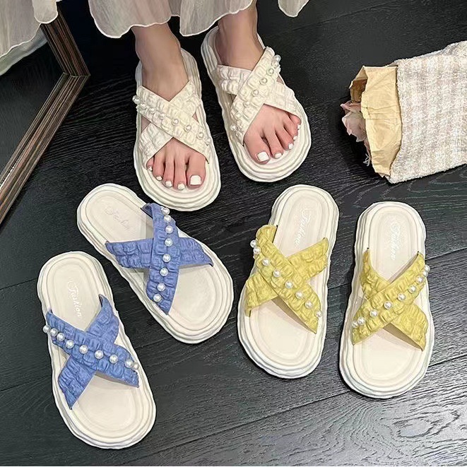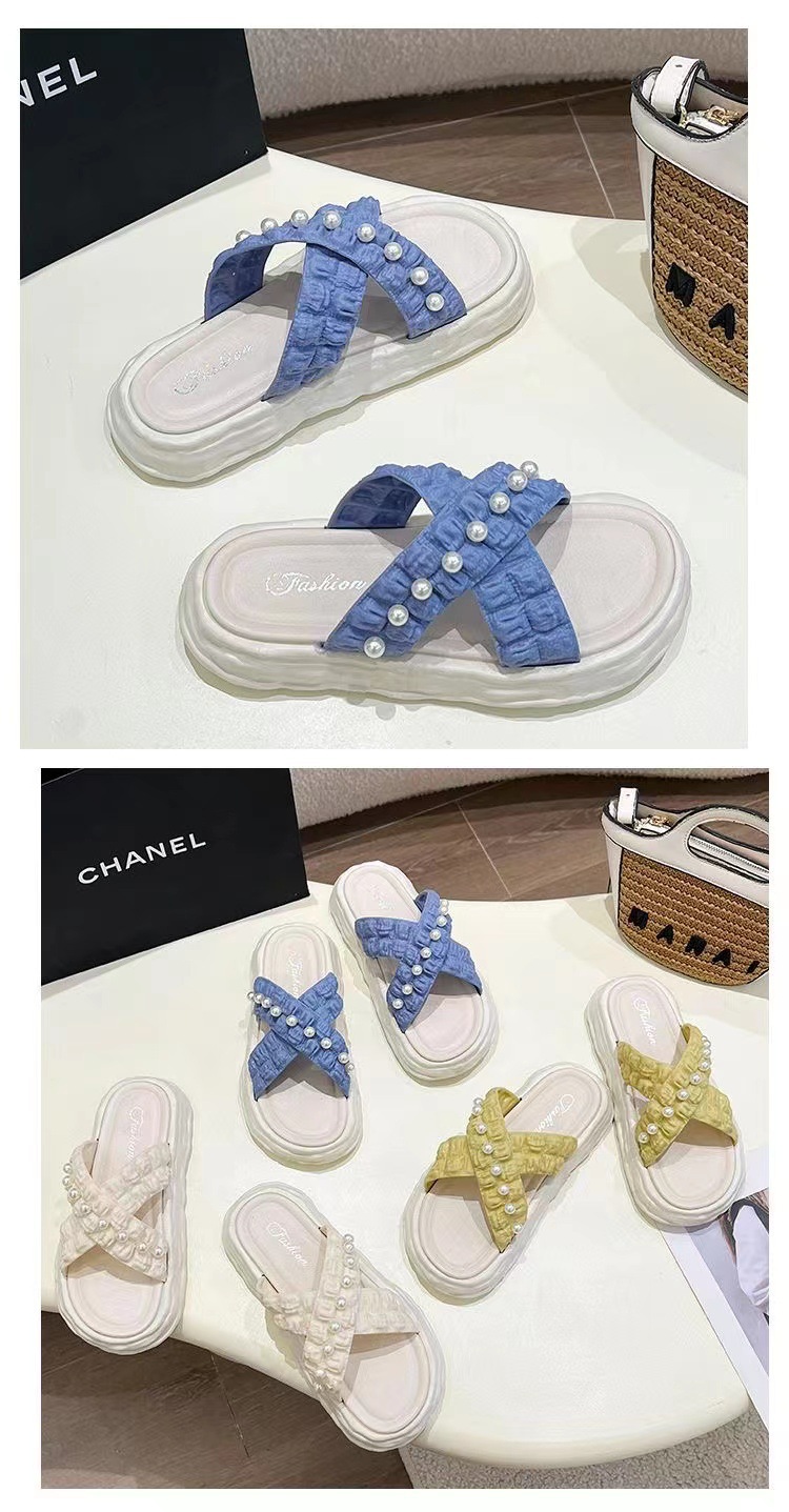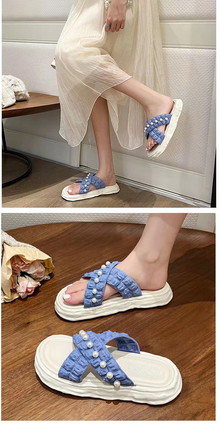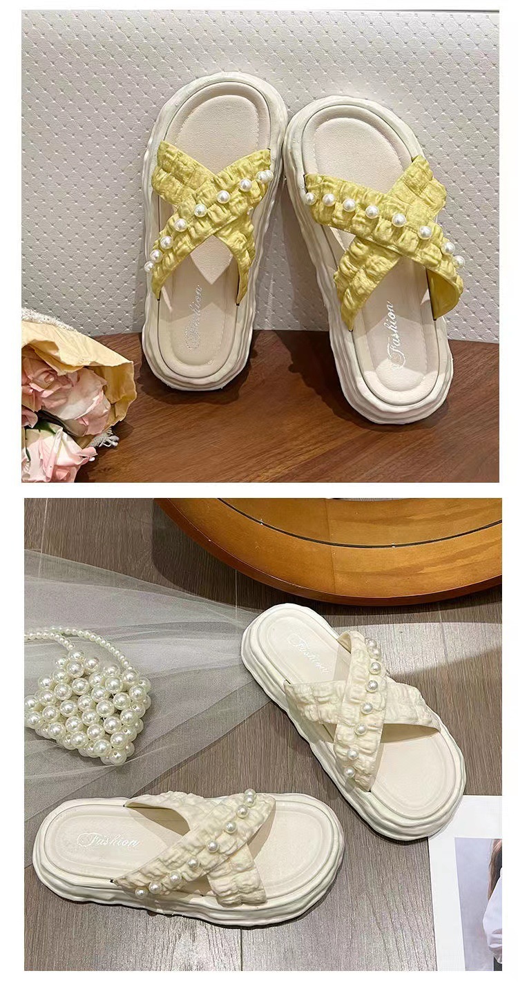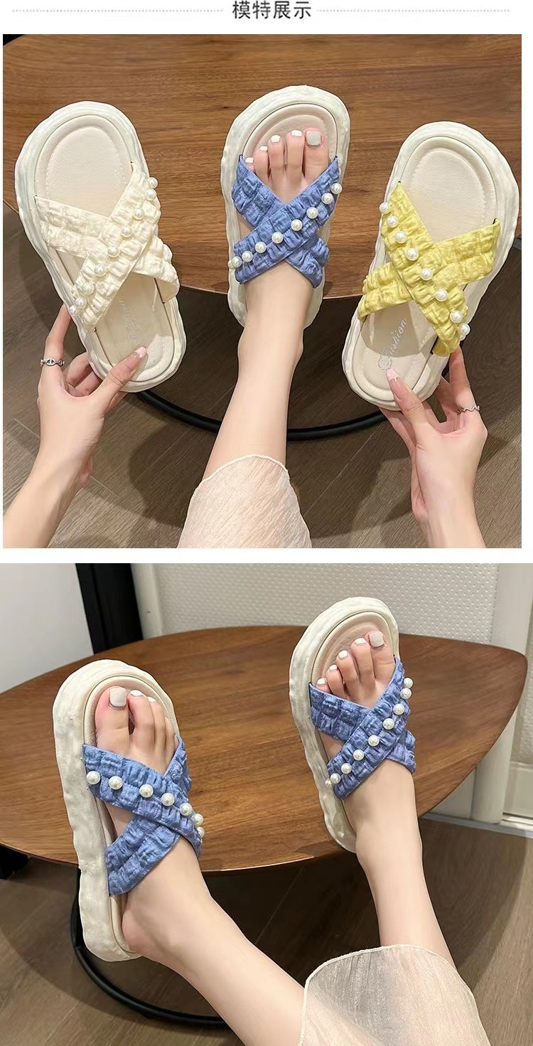 仙女风珍珠凉拖鞋女外穿2023新款松糕厚底溶解鞋海边沙滩拖鞋ins