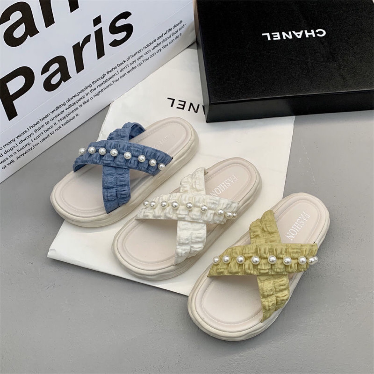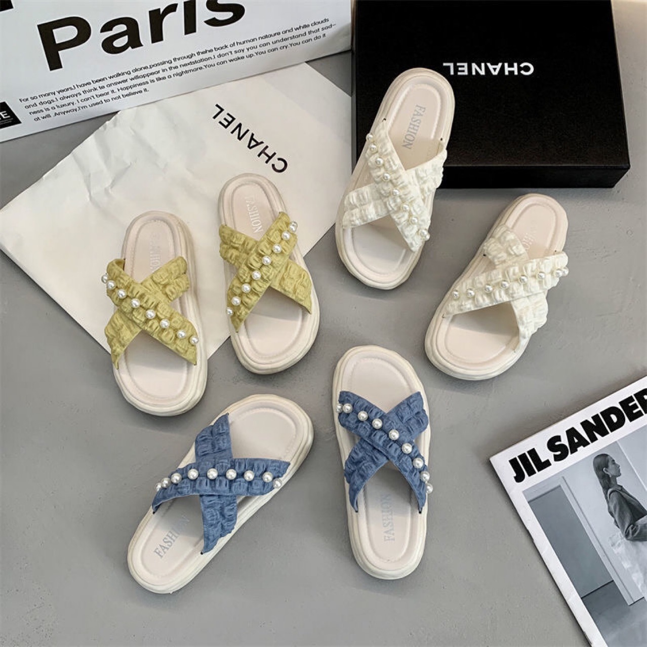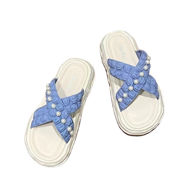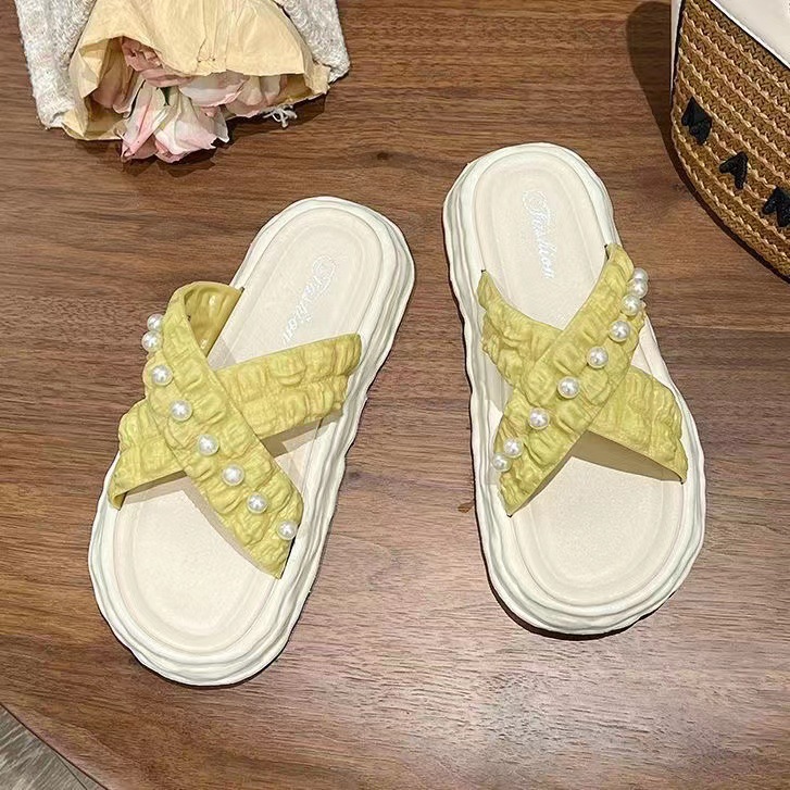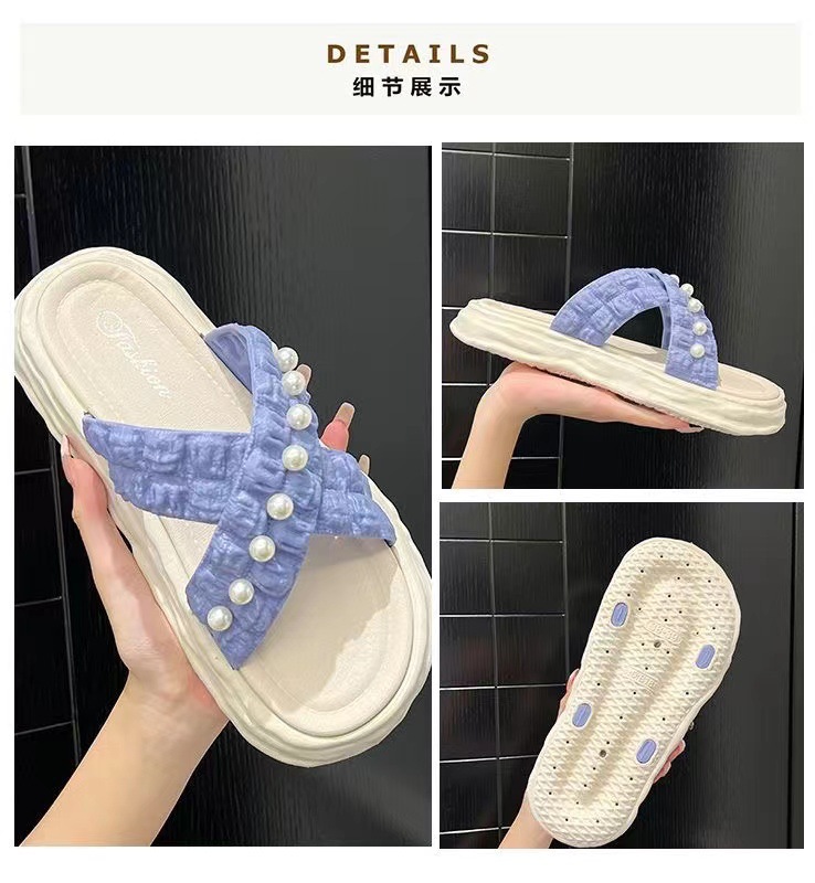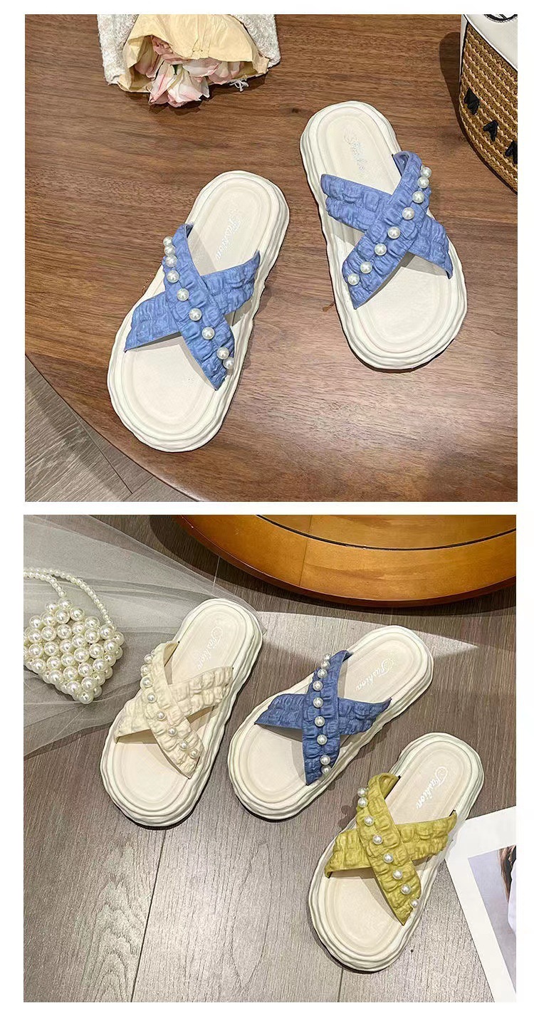 仙女风珍珠凉拖鞋女外穿2023新款松糕厚底溶解鞋海边沙滩拖鞋ins