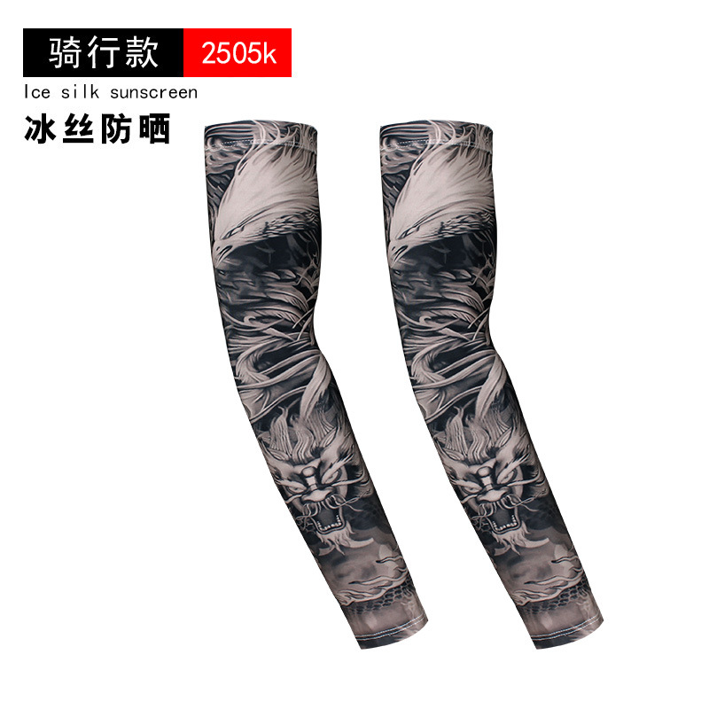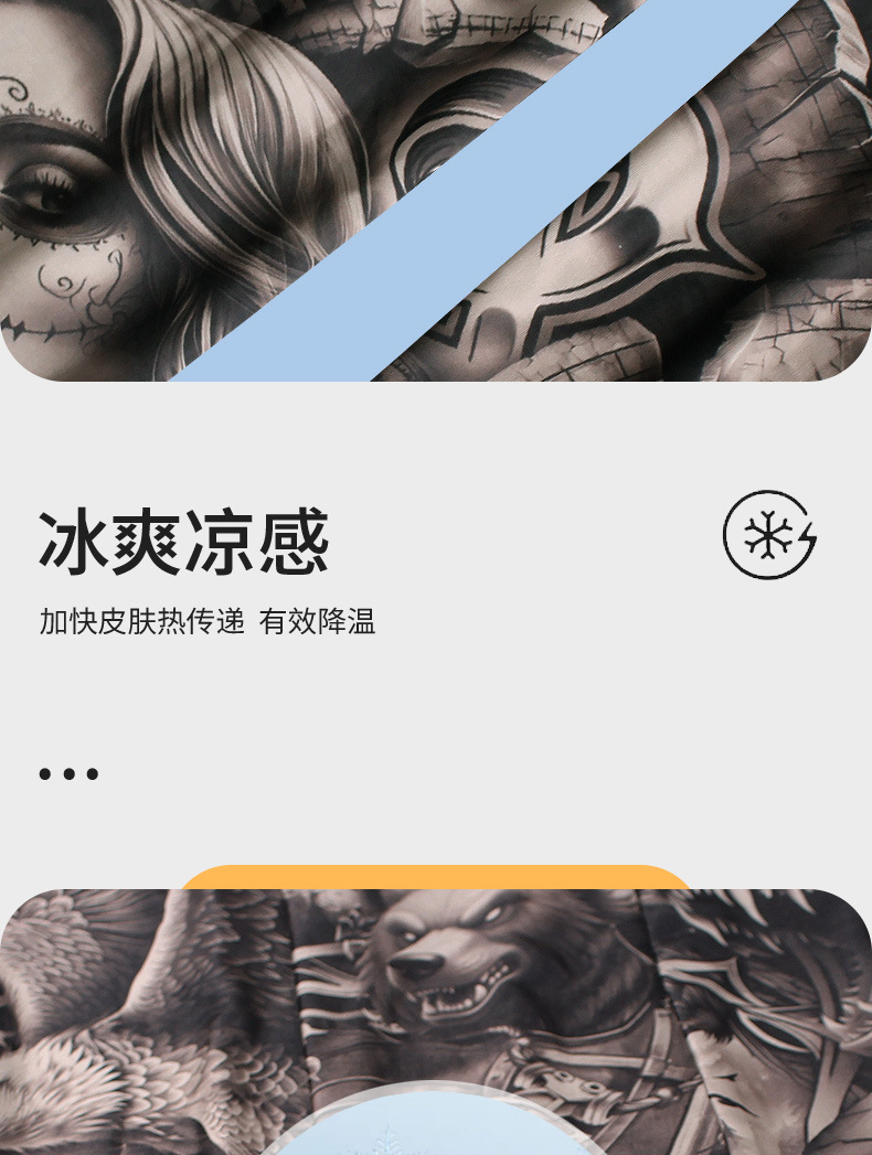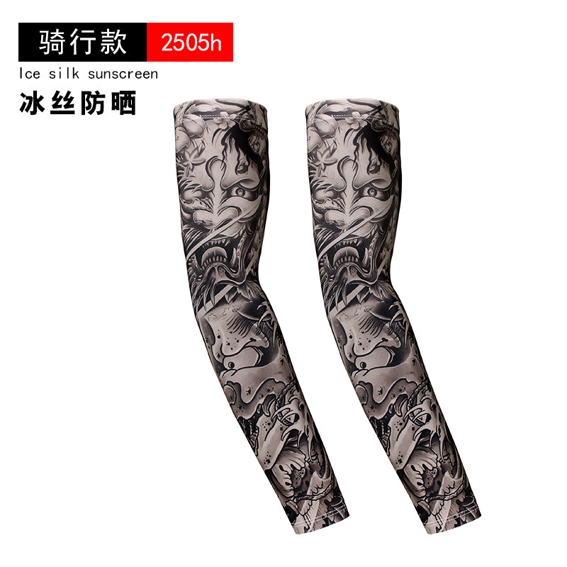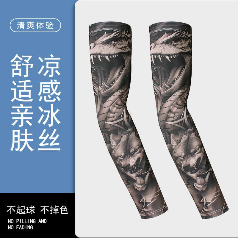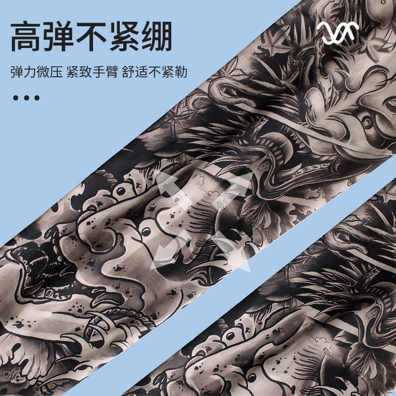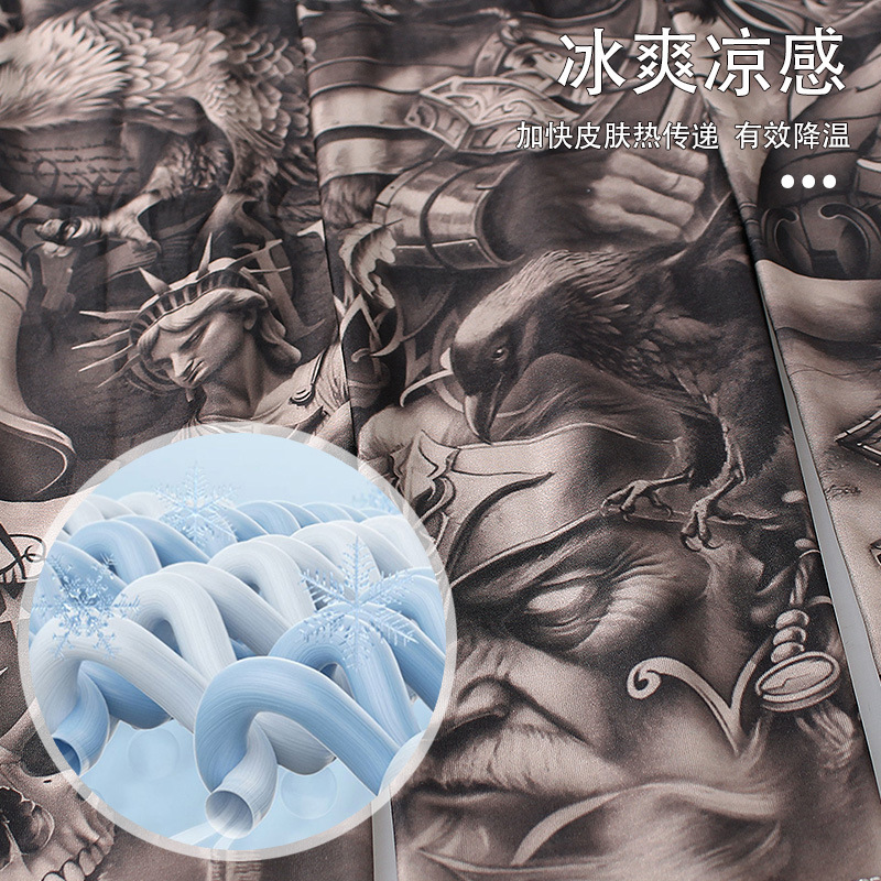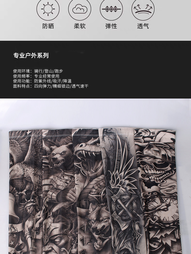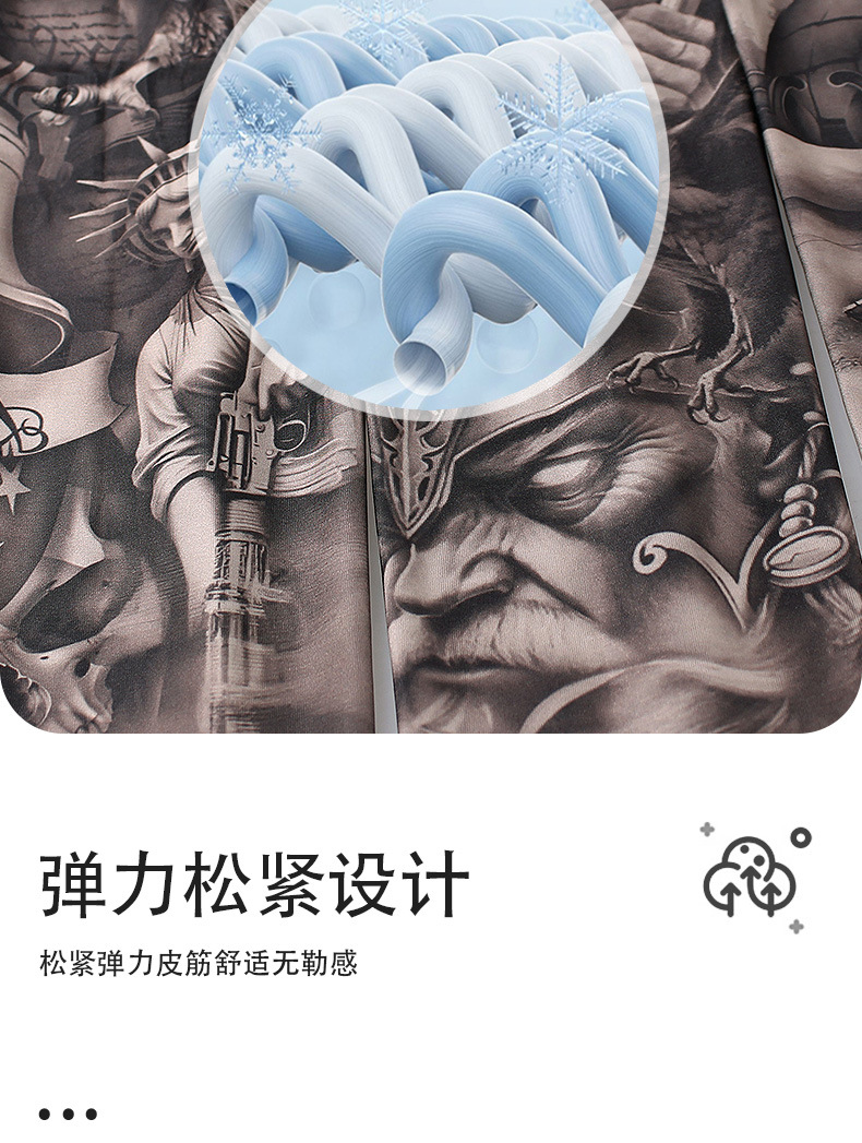 跨境男款夏季户外运动骑行机车花臂冰丝防晒袖套冰袖护臂纹身护袖