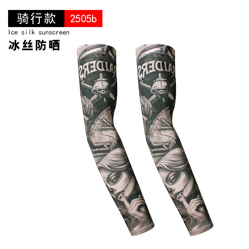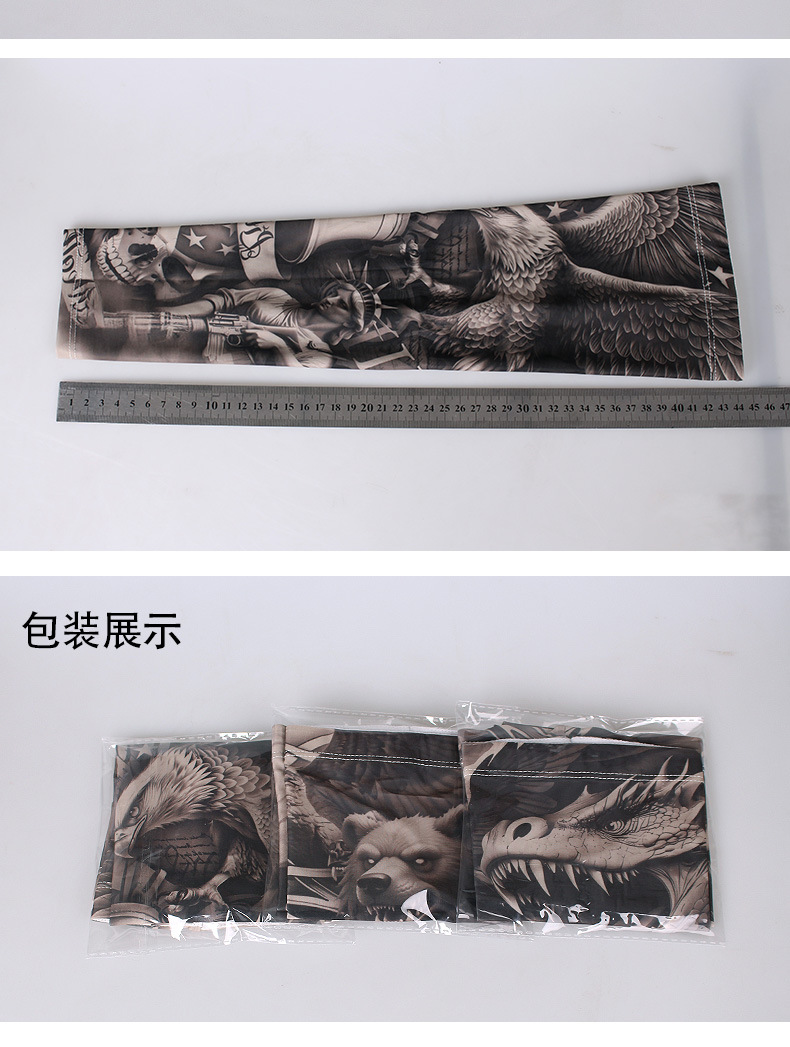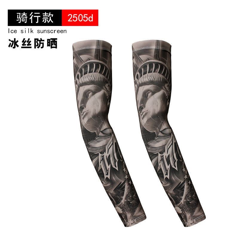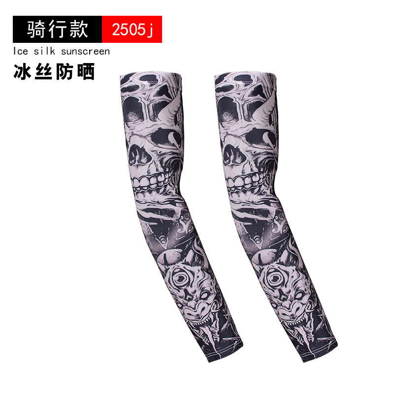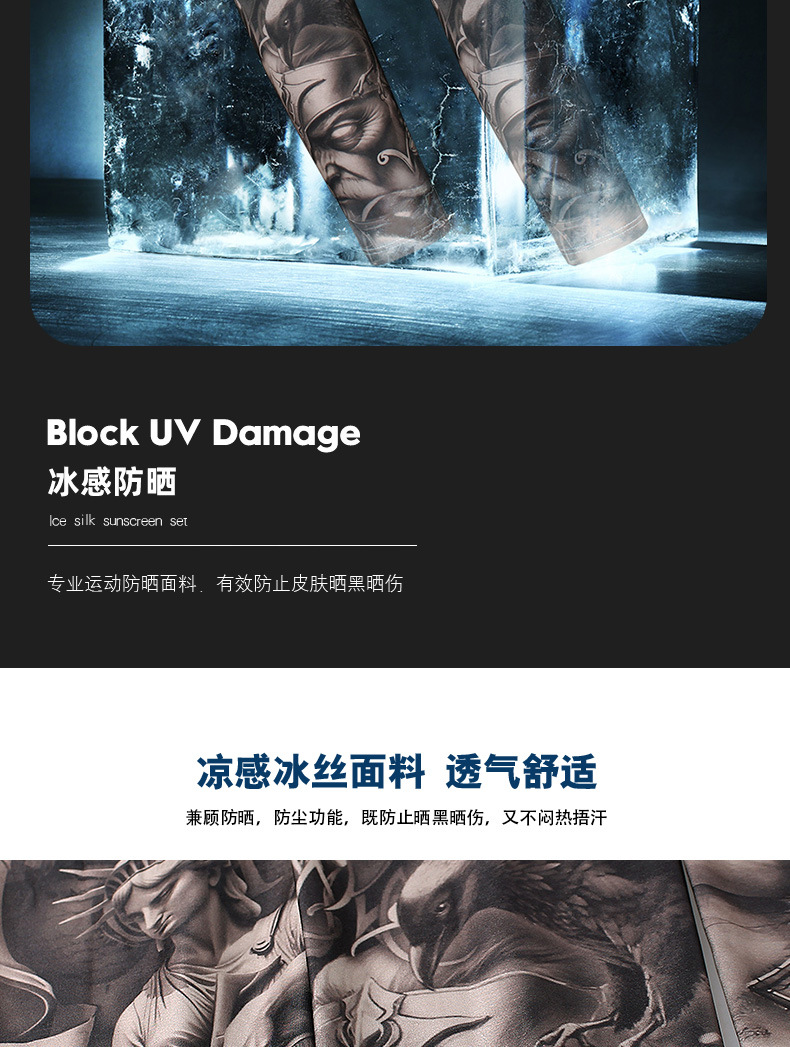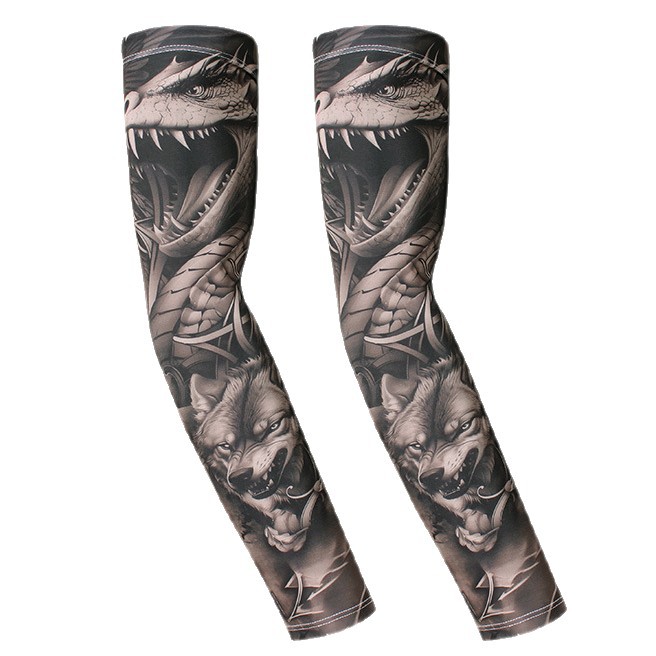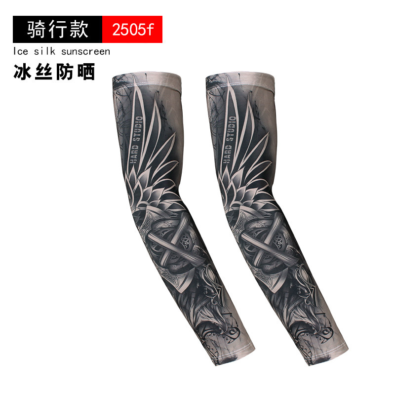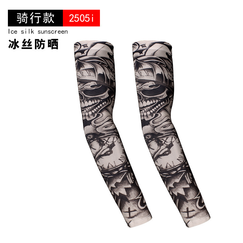 跨境男款夏季户外运动骑行机车花臂冰丝防晒袖套冰袖护臂纹身护袖
