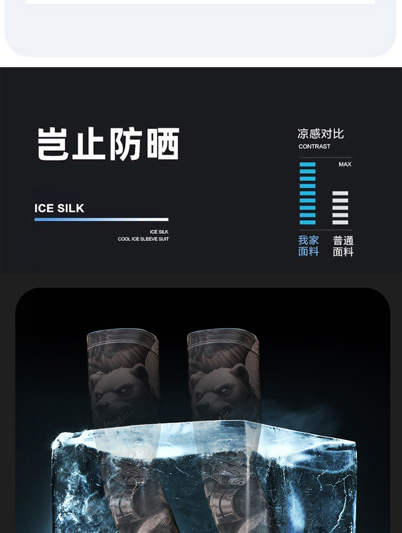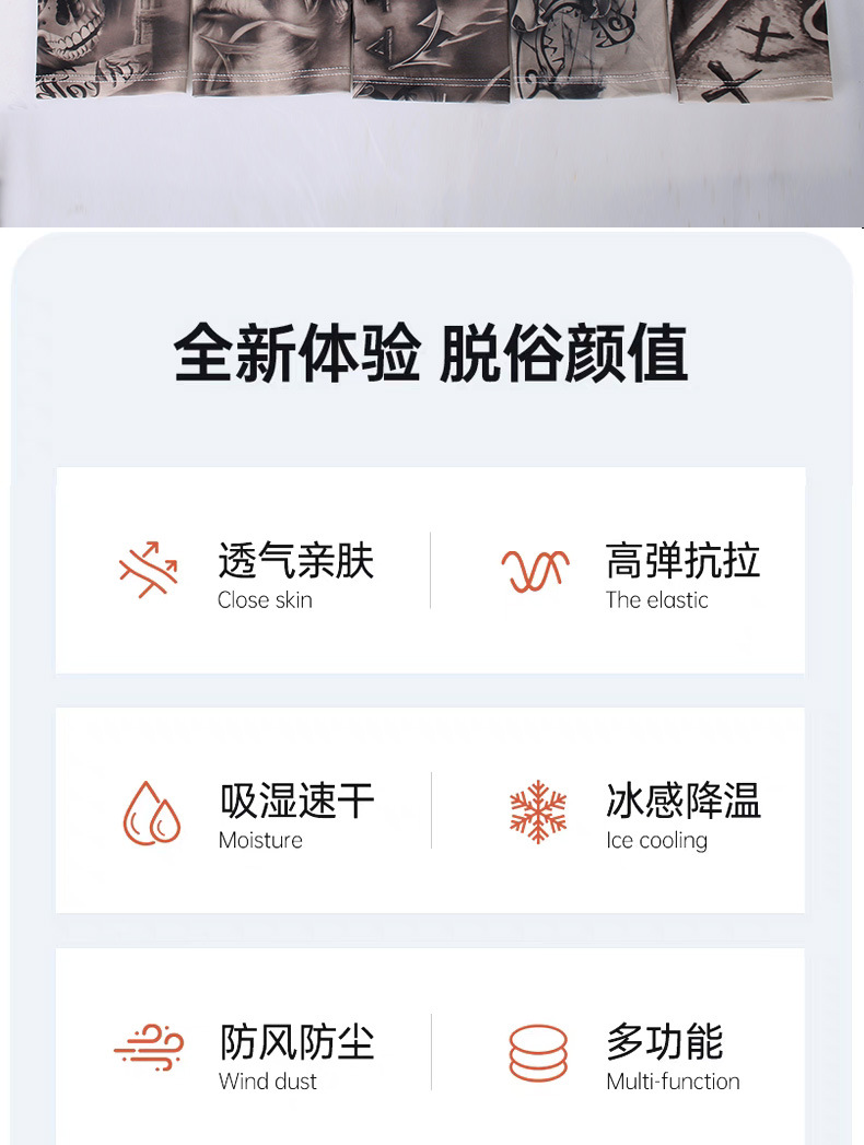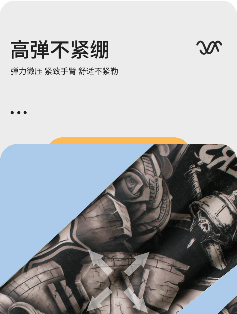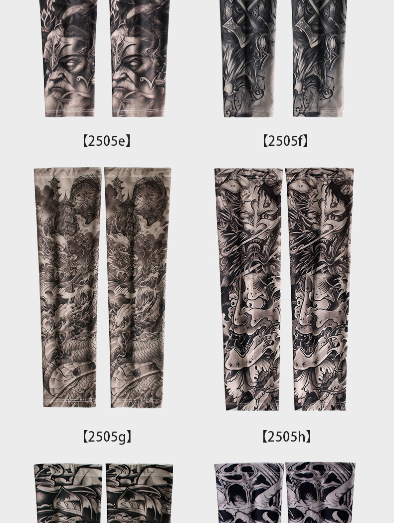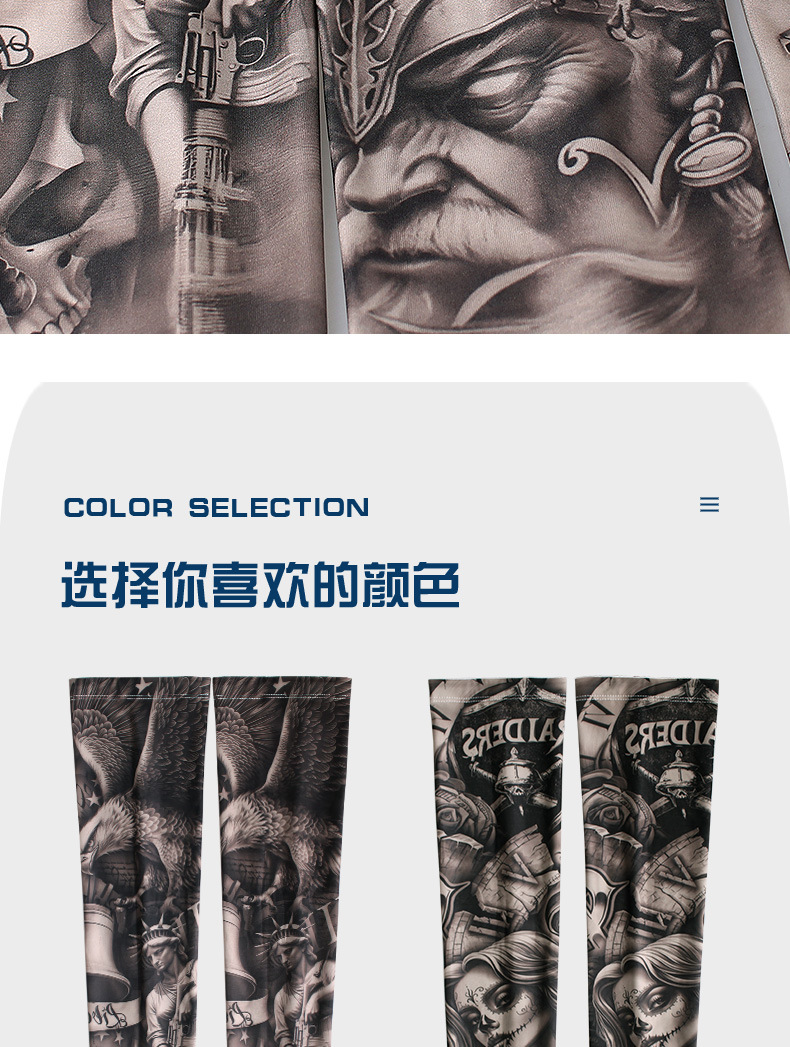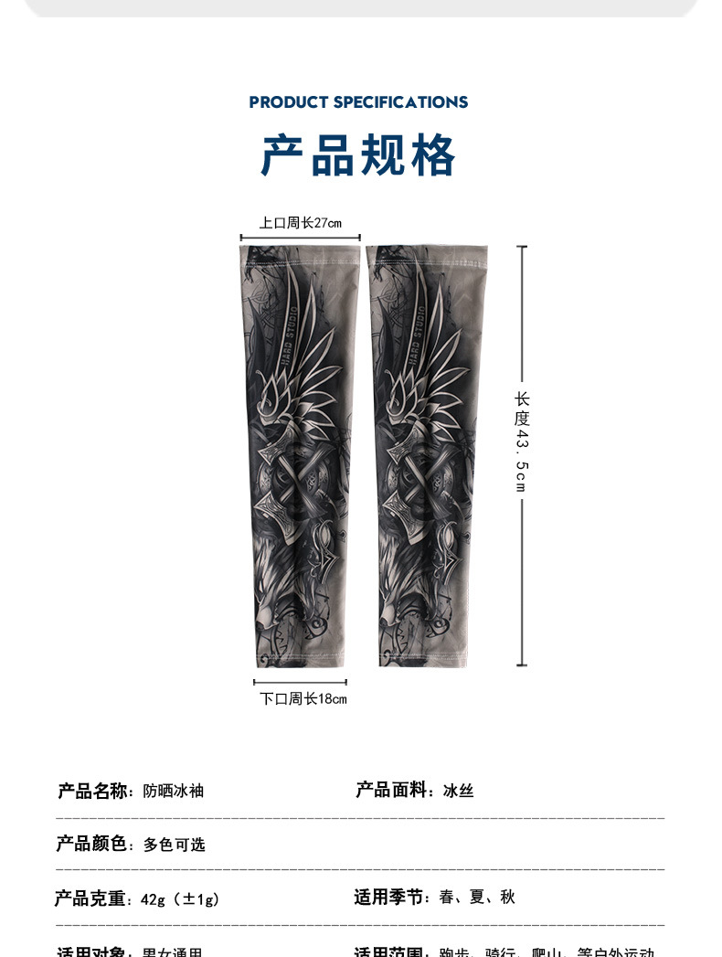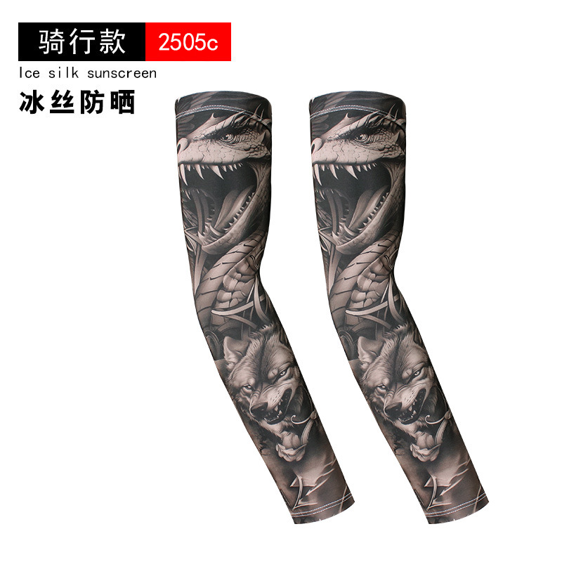 跨境男款夏季户外运动骑行机车花臂冰丝防晒袖套冰袖护臂纹身护袖