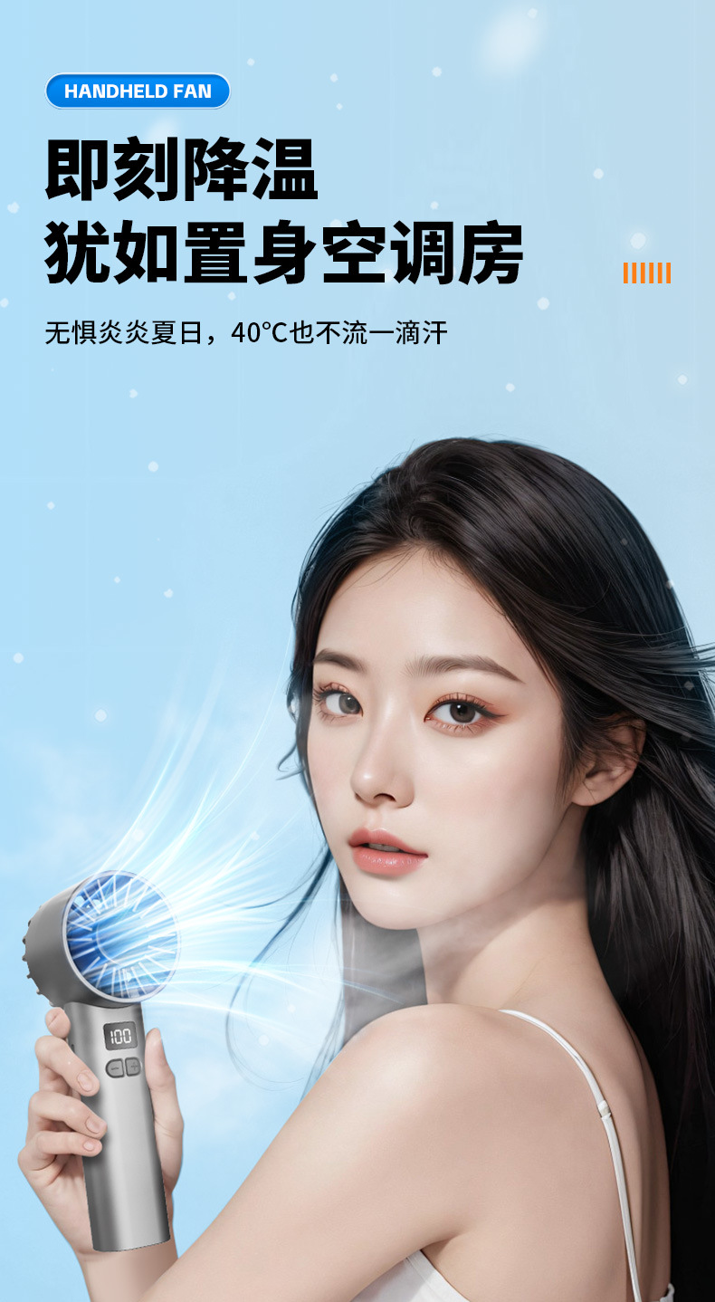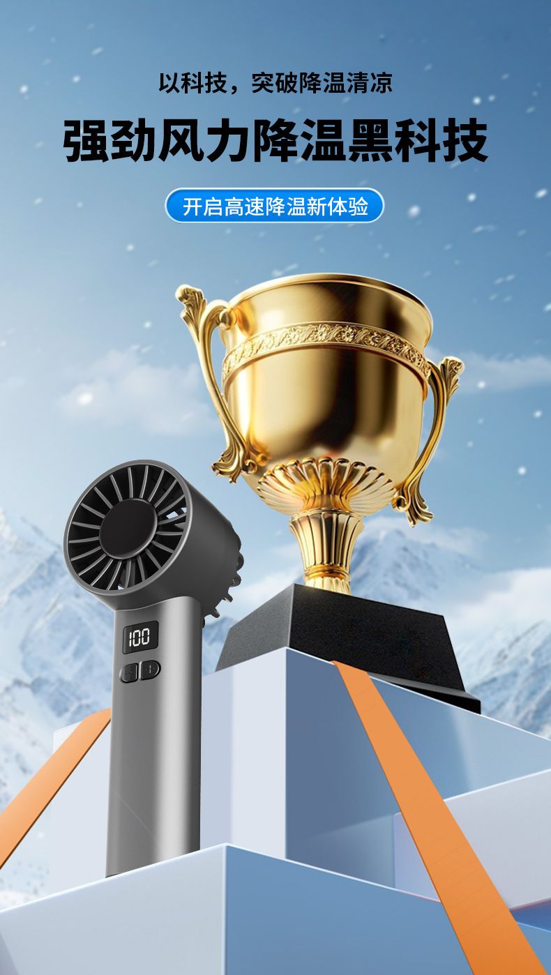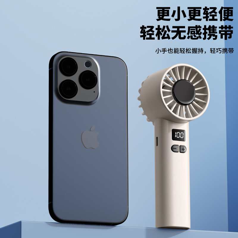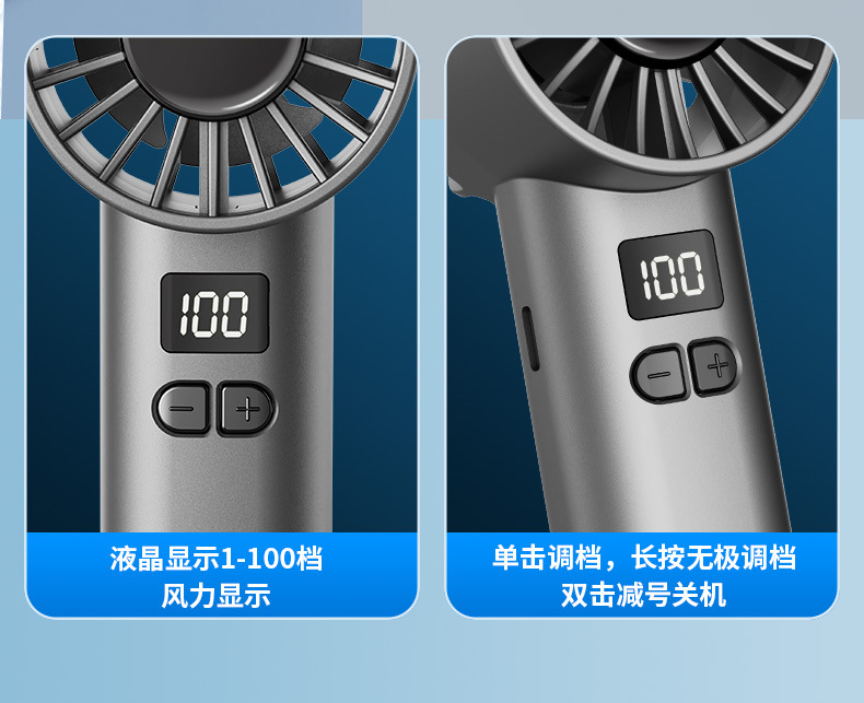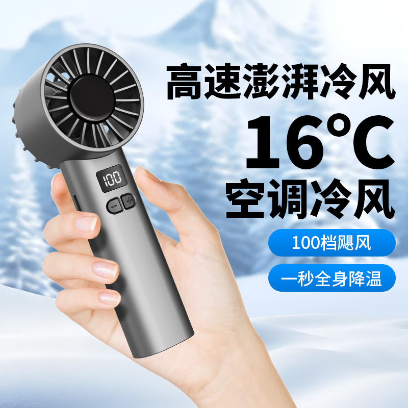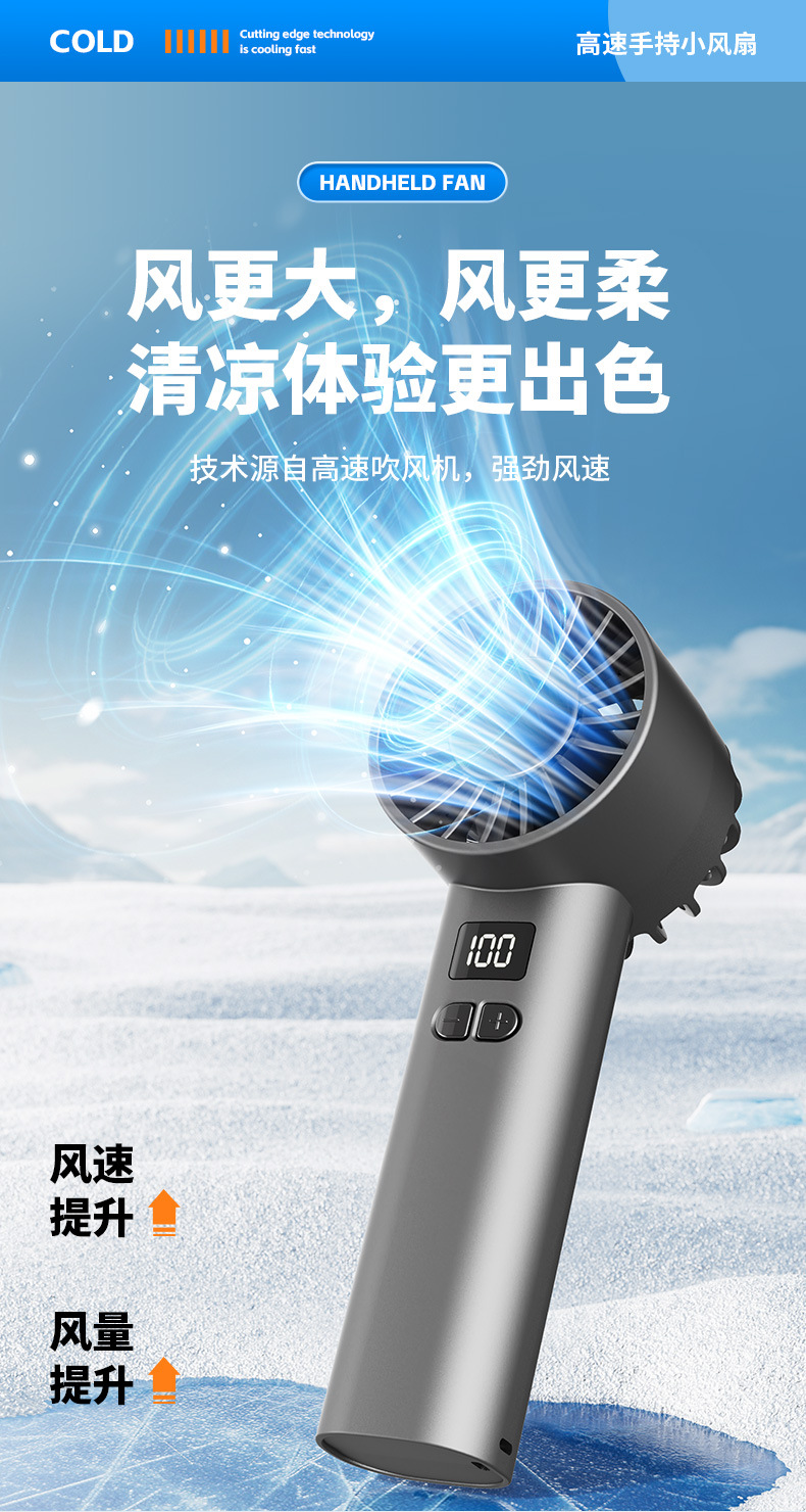 跨境新款手持风扇冷风100档高速风扇便携式USB迷你户外数显涡轮