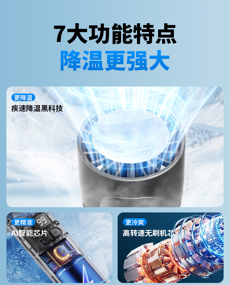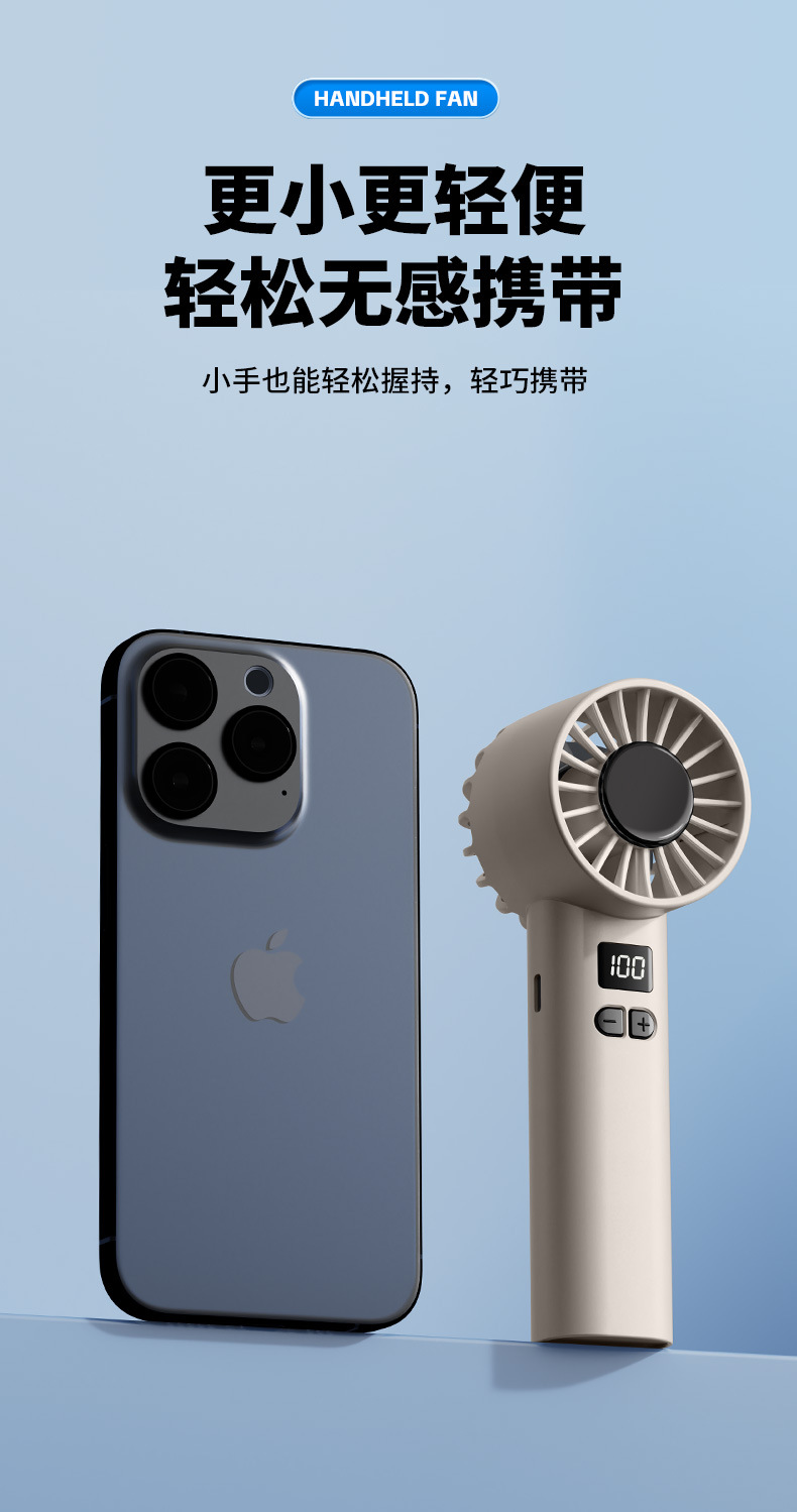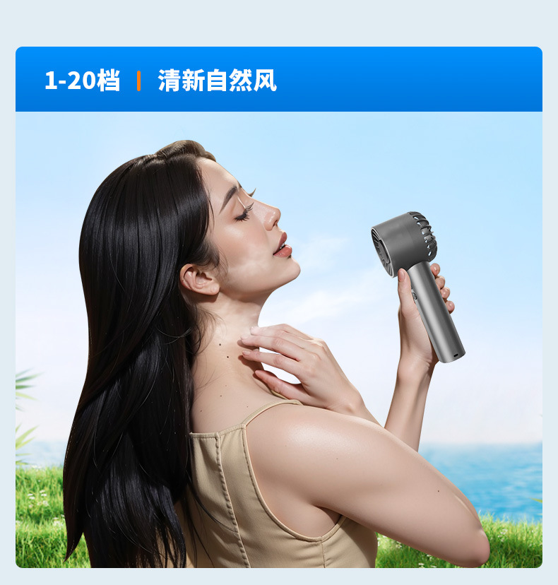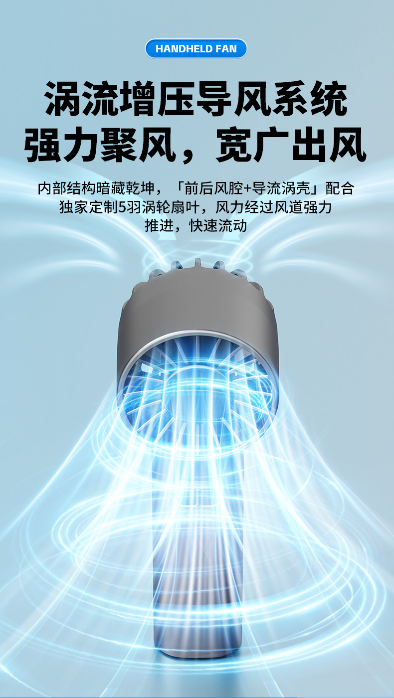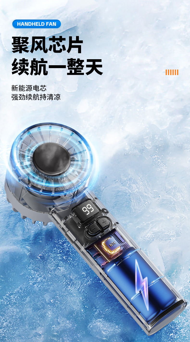 跨境新款手持风扇冷风100档高速风扇便携式USB迷你户外数显涡轮