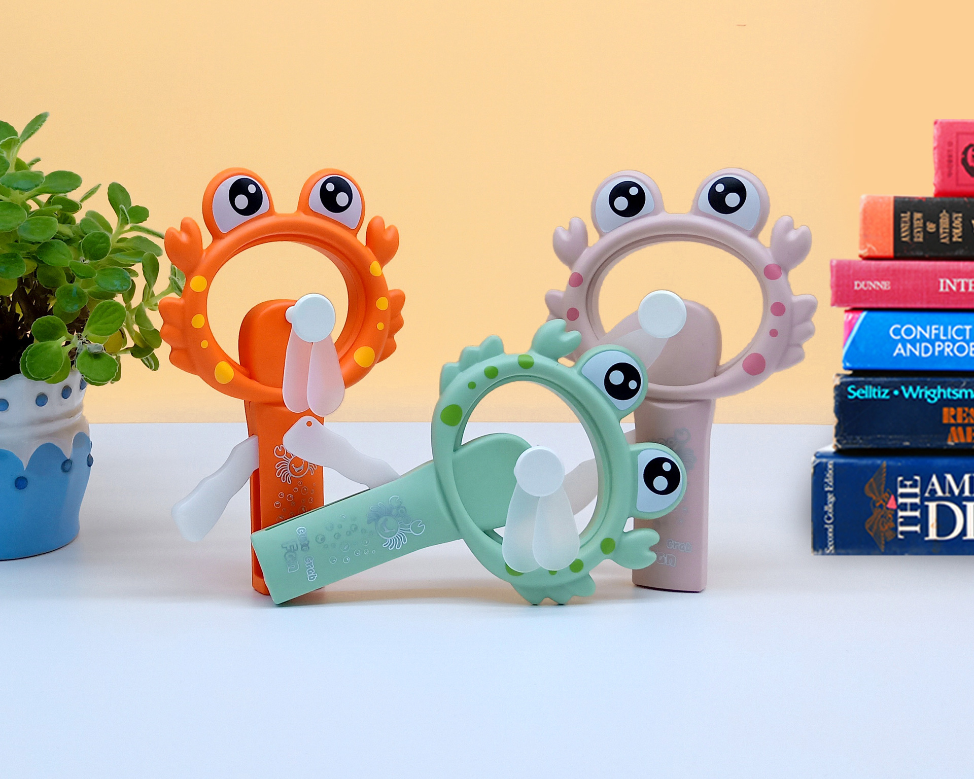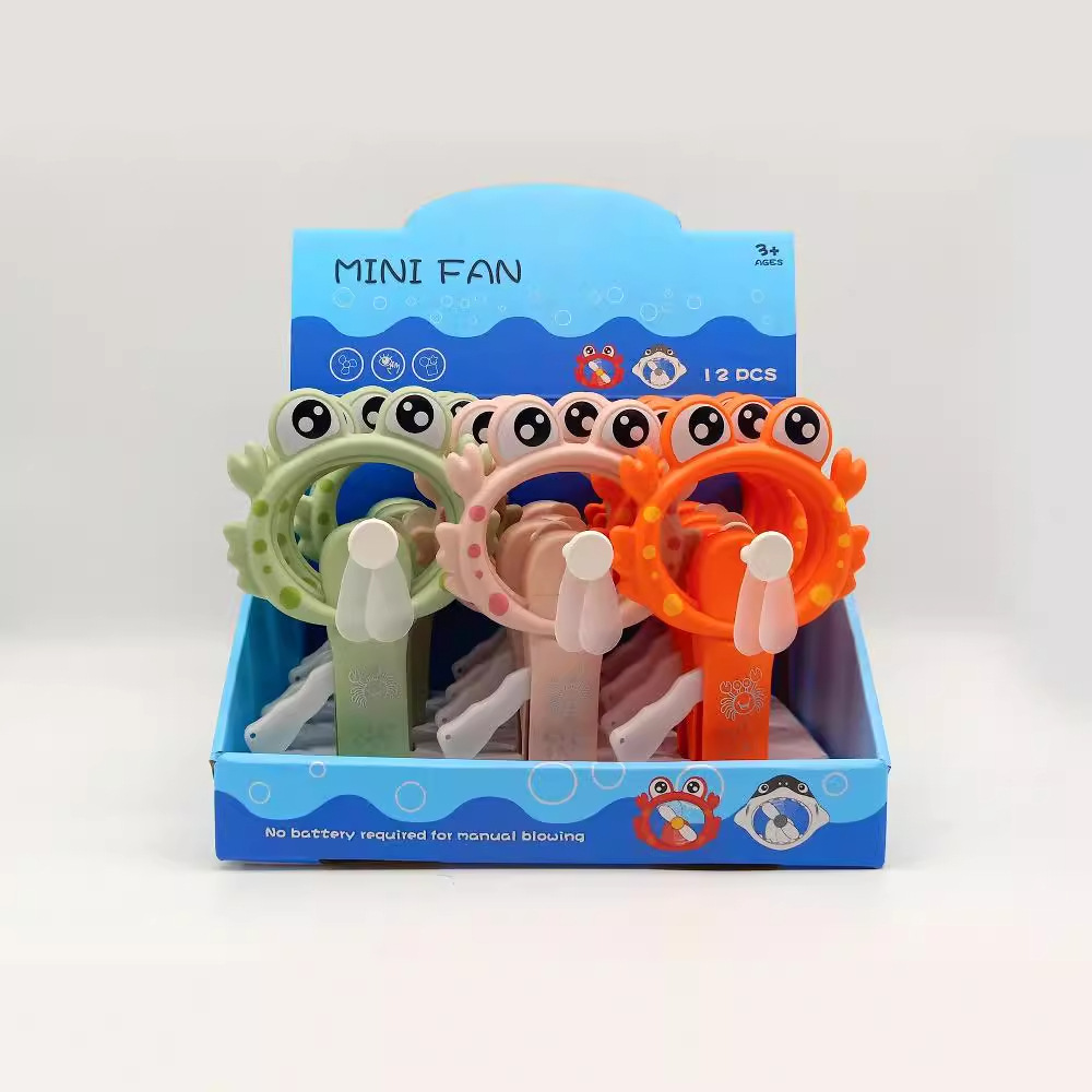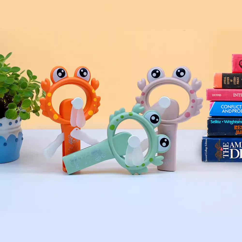 跨境萌趣卡通手摇风扇螃蟹手压迷你便携式夏季清凉手拿手持厂家