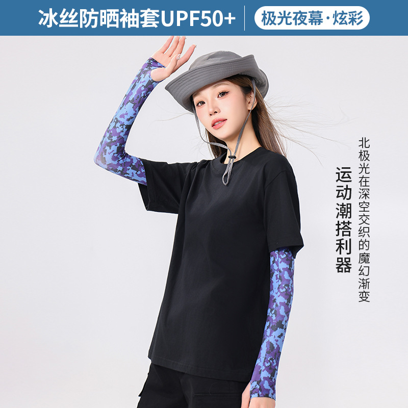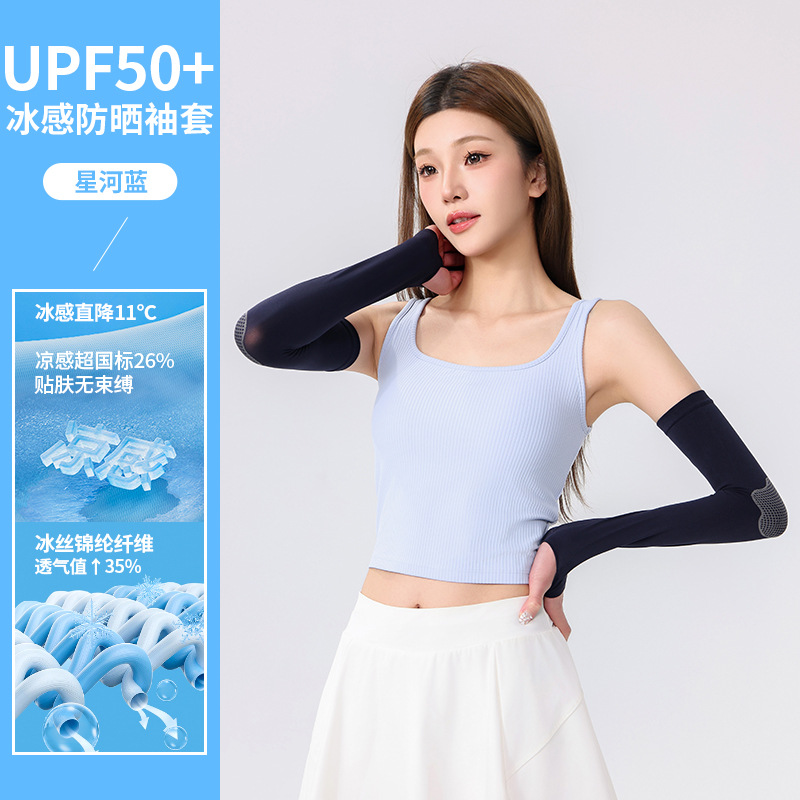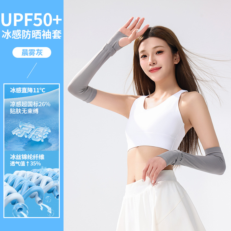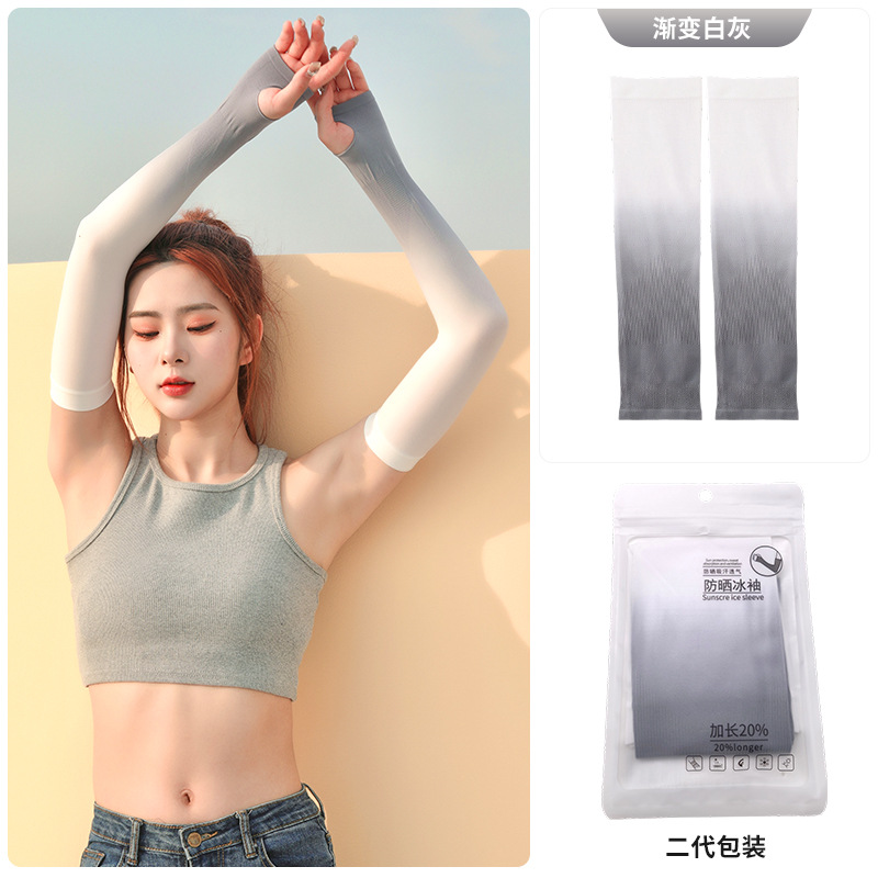 冰丝防晒袖套冰袖女纯色渐变厂家批发UPF50+遮阳防紫外线冰爽