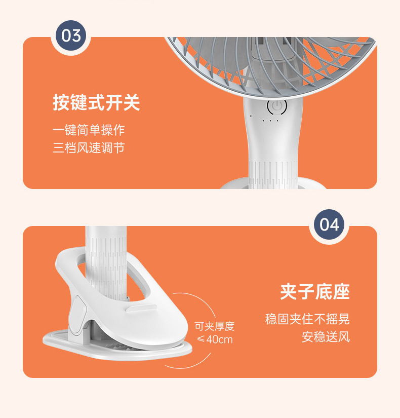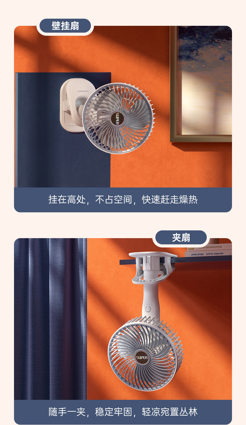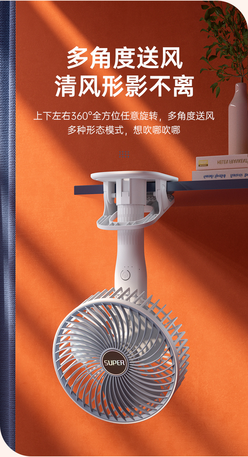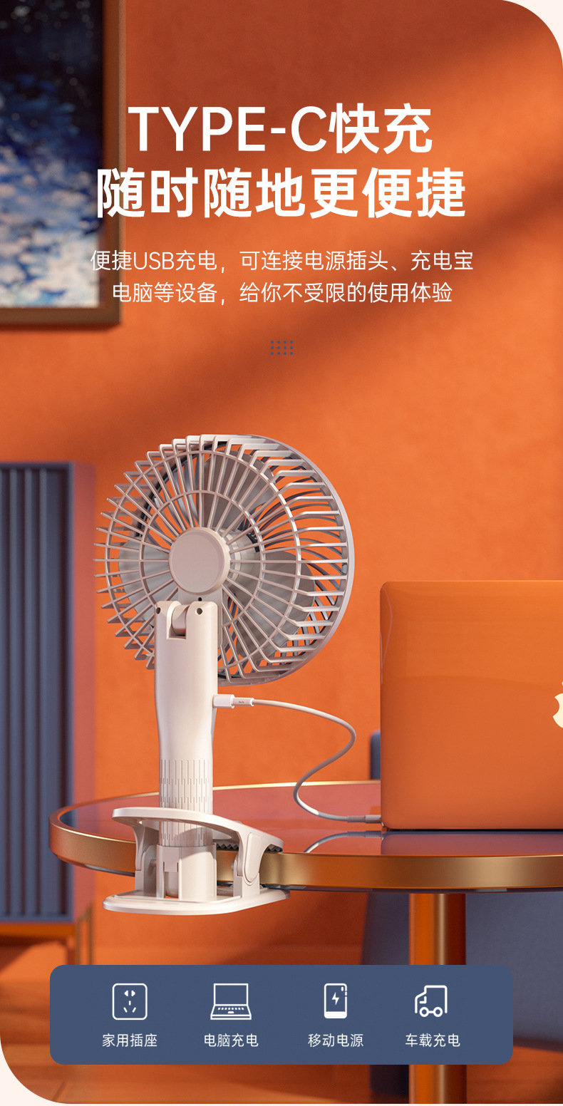 usb充电夹子手持挂壁台式迷你小风扇户外露营居家办公便携小风扇
