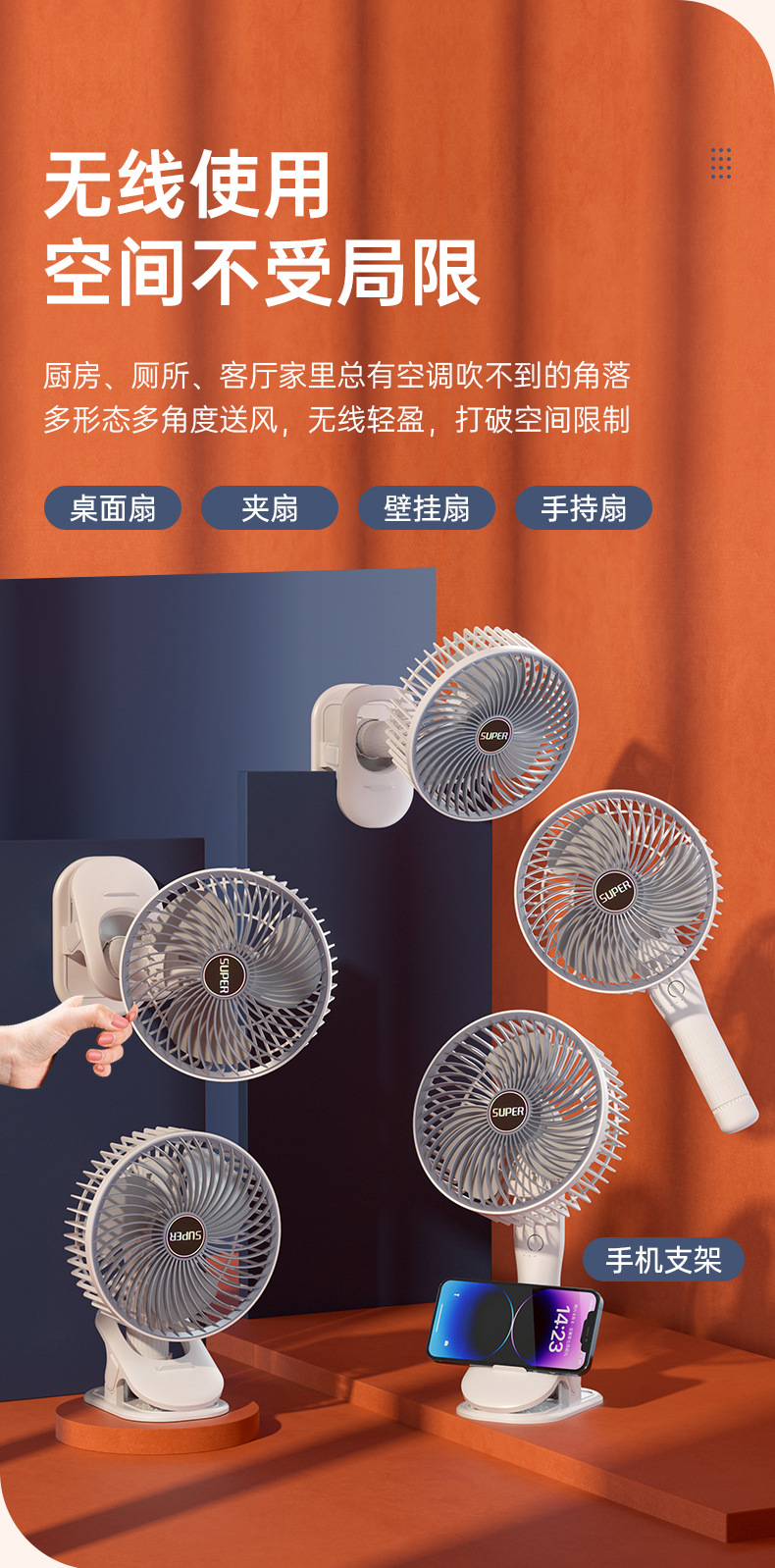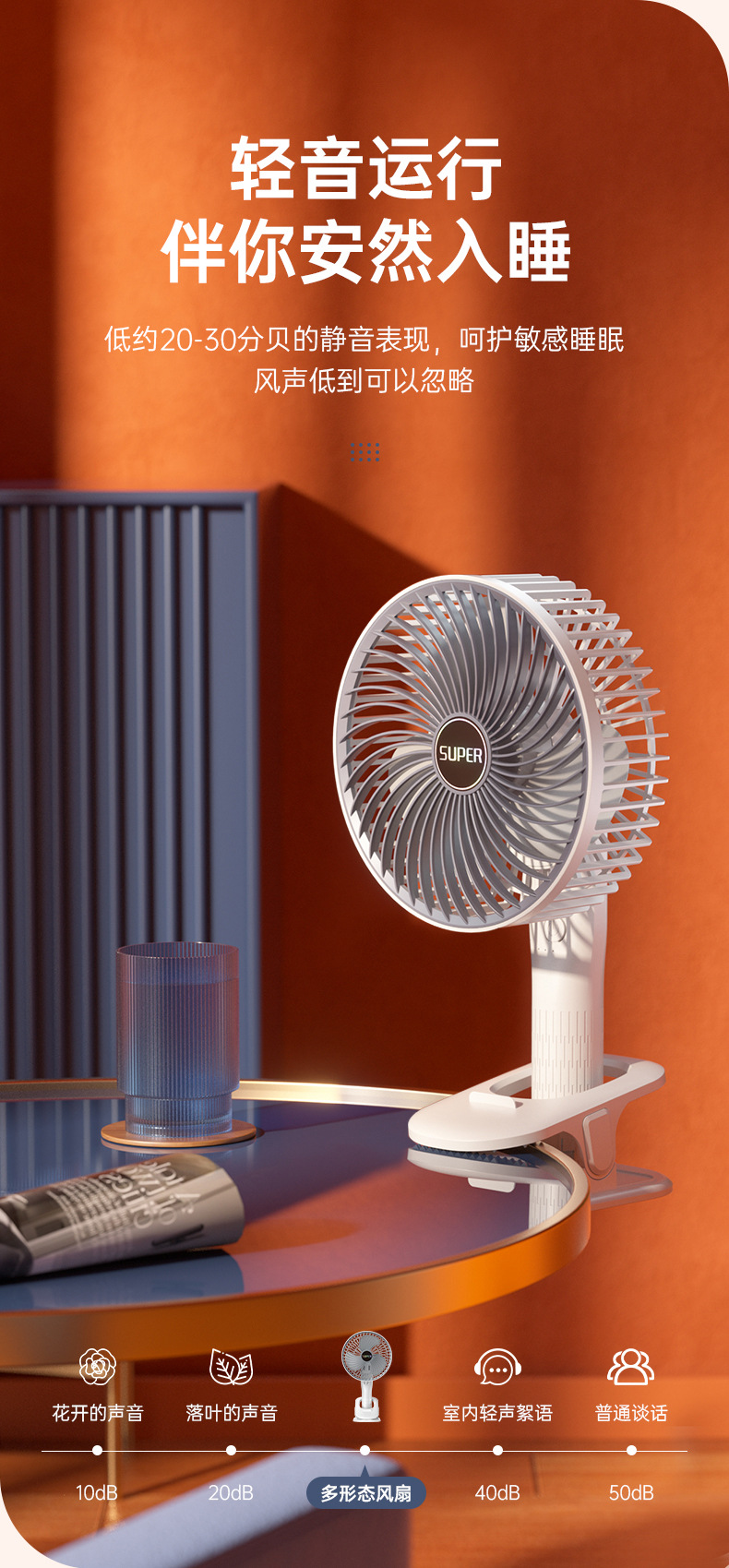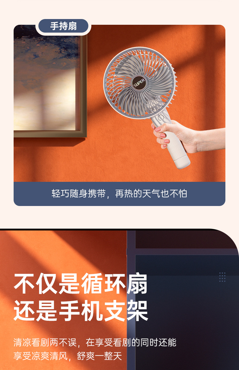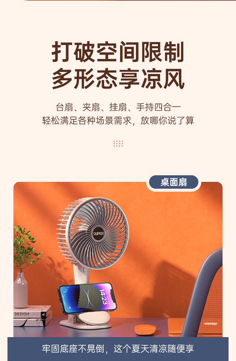 usb充电夹子手持挂壁台式迷你小风扇户外露营居家办公便携小风扇