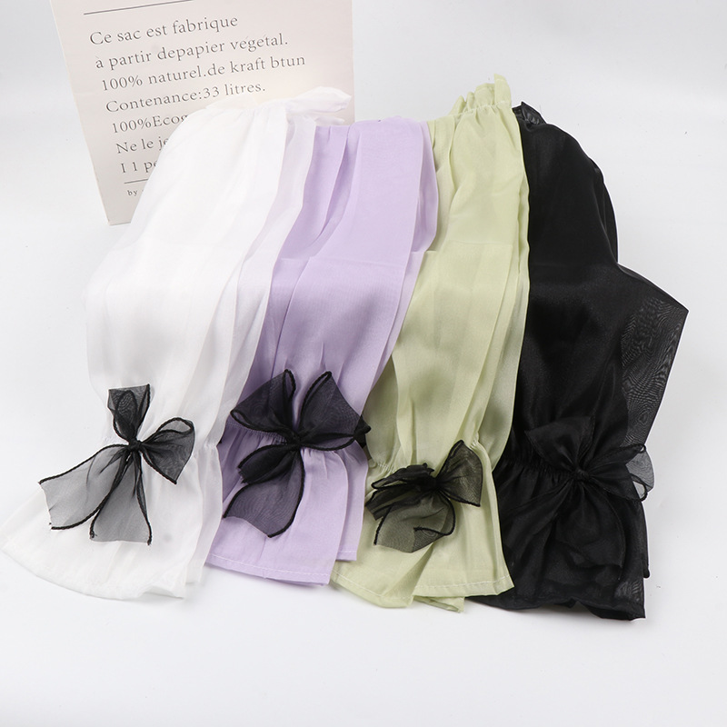 夏季时尚仙气泡泡袖黑纱蝴蝶节防晒袖套细闪优雅高颜值手袖雪纺