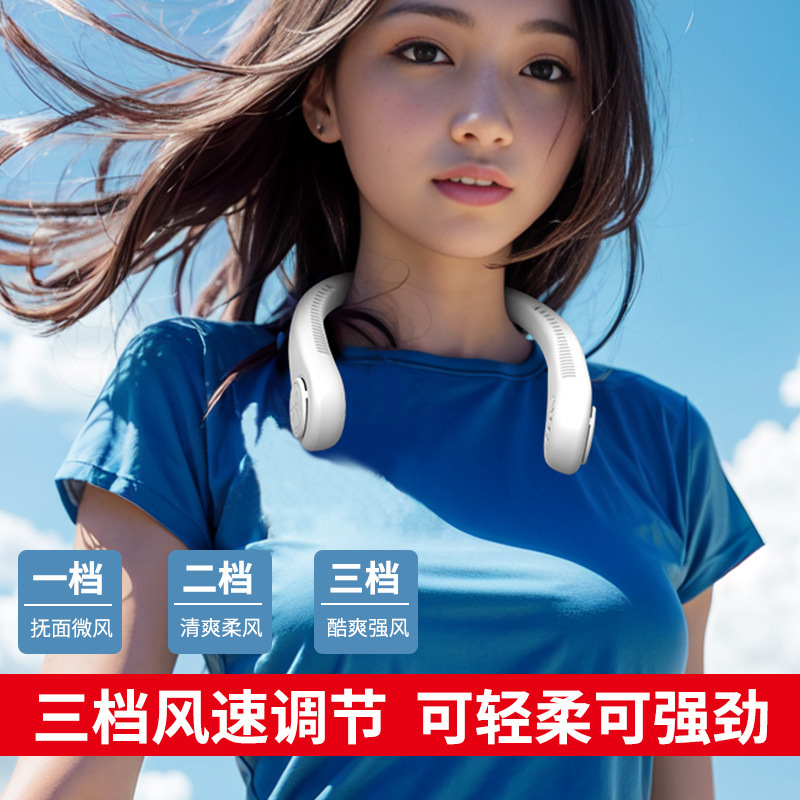 新款挂脖风扇USB充电懒人户外便携小风扇无叶静音涡轮挂颈扇跨境