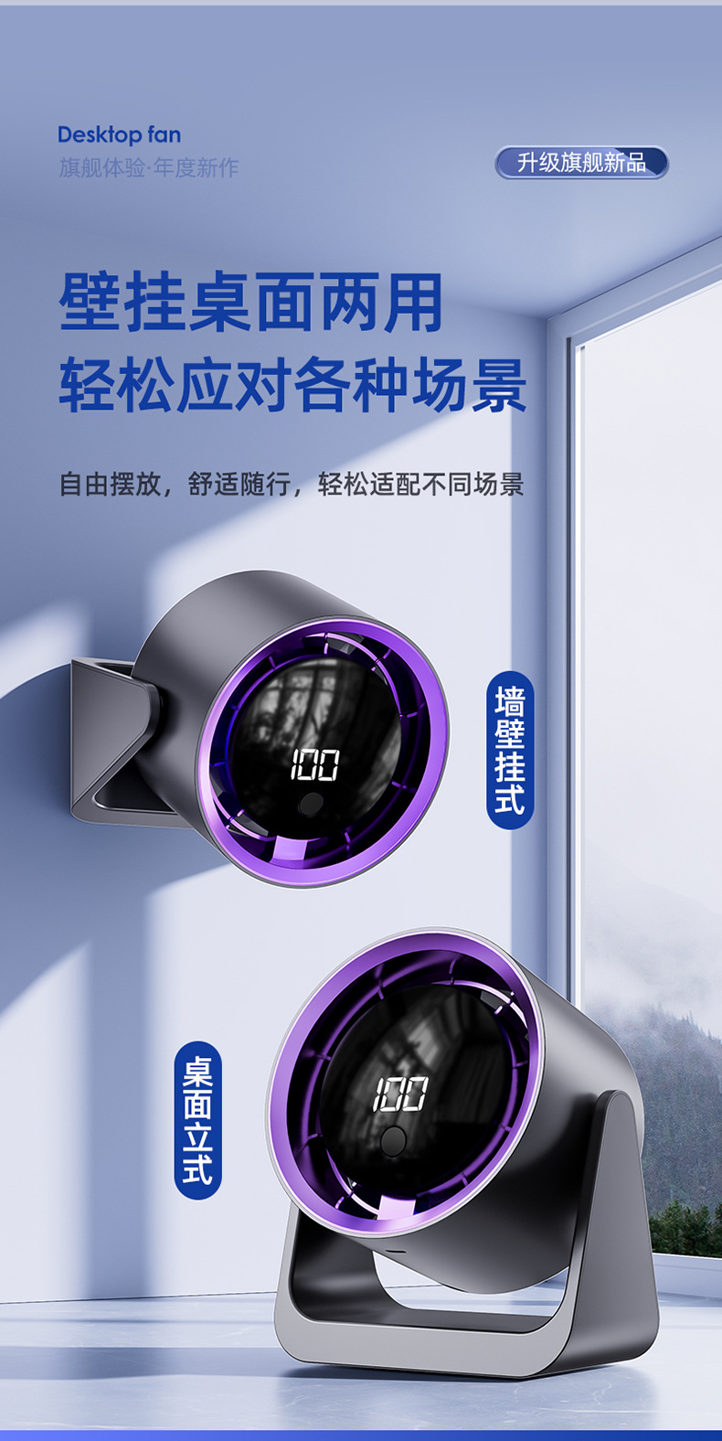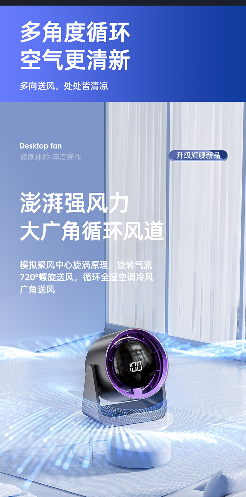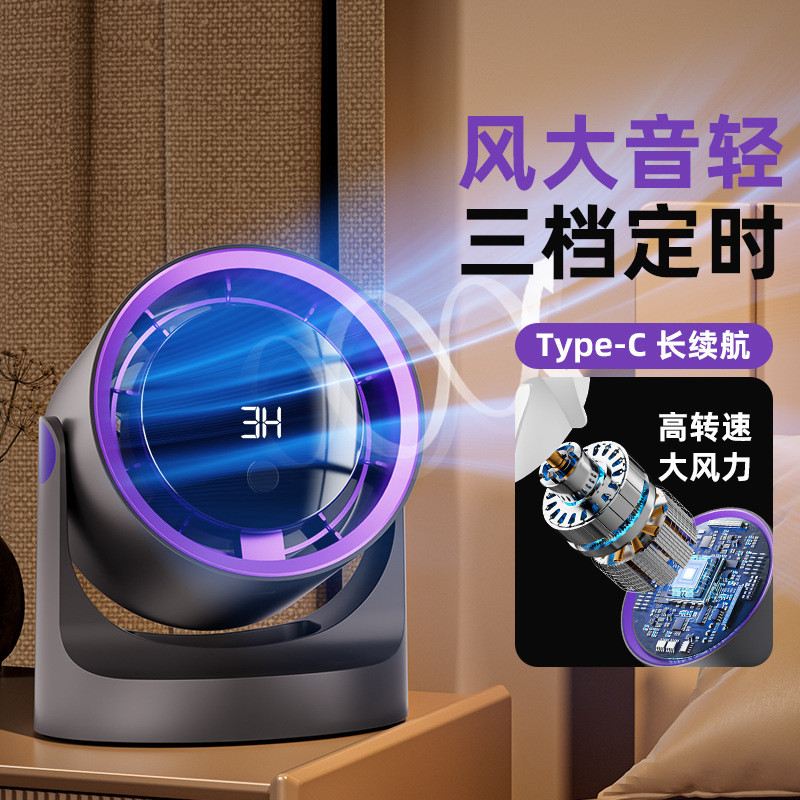 桌面小风扇家用台式充电空气循环扇学生宿舍迷你电风扇定时便携式