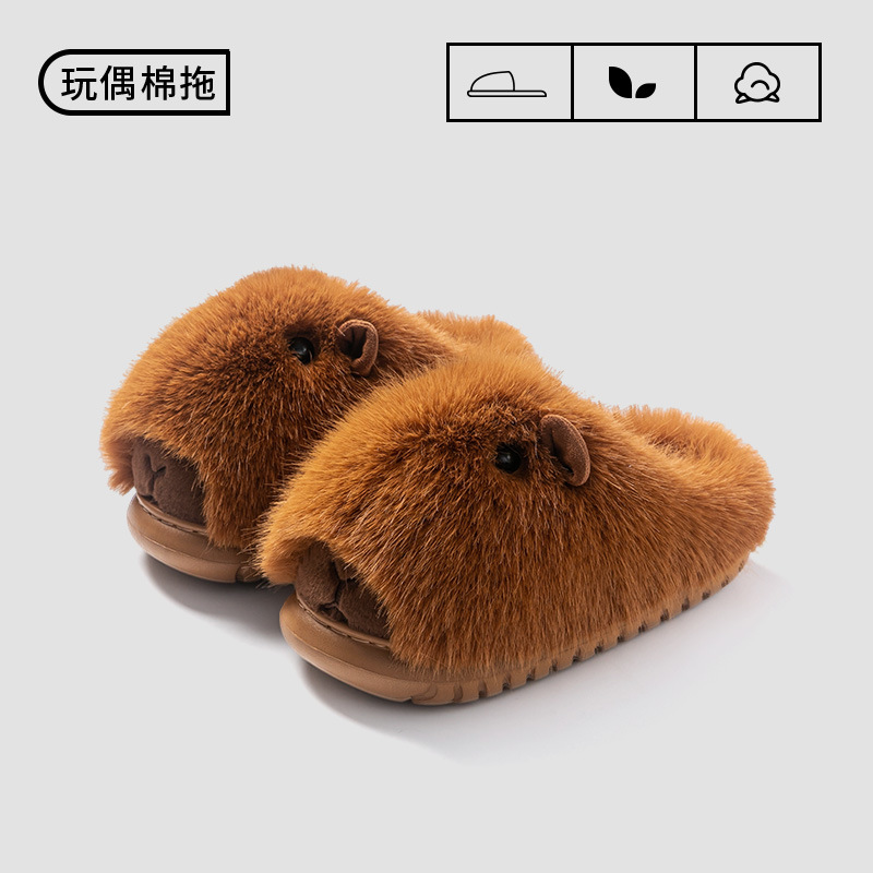 秋冬新品时尚可爱萌宠卡比巴拉卡通毛绒居家外穿棉拖鞋女保暖批发