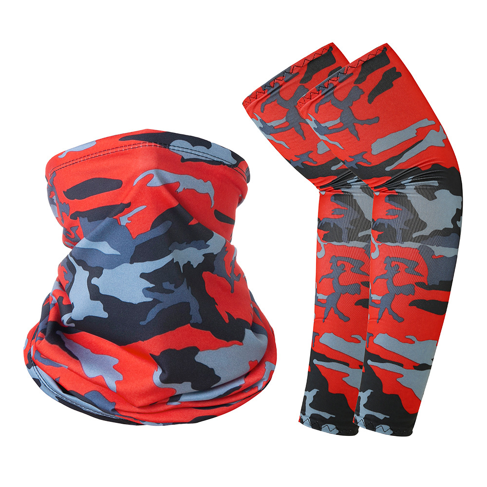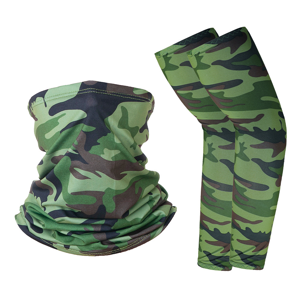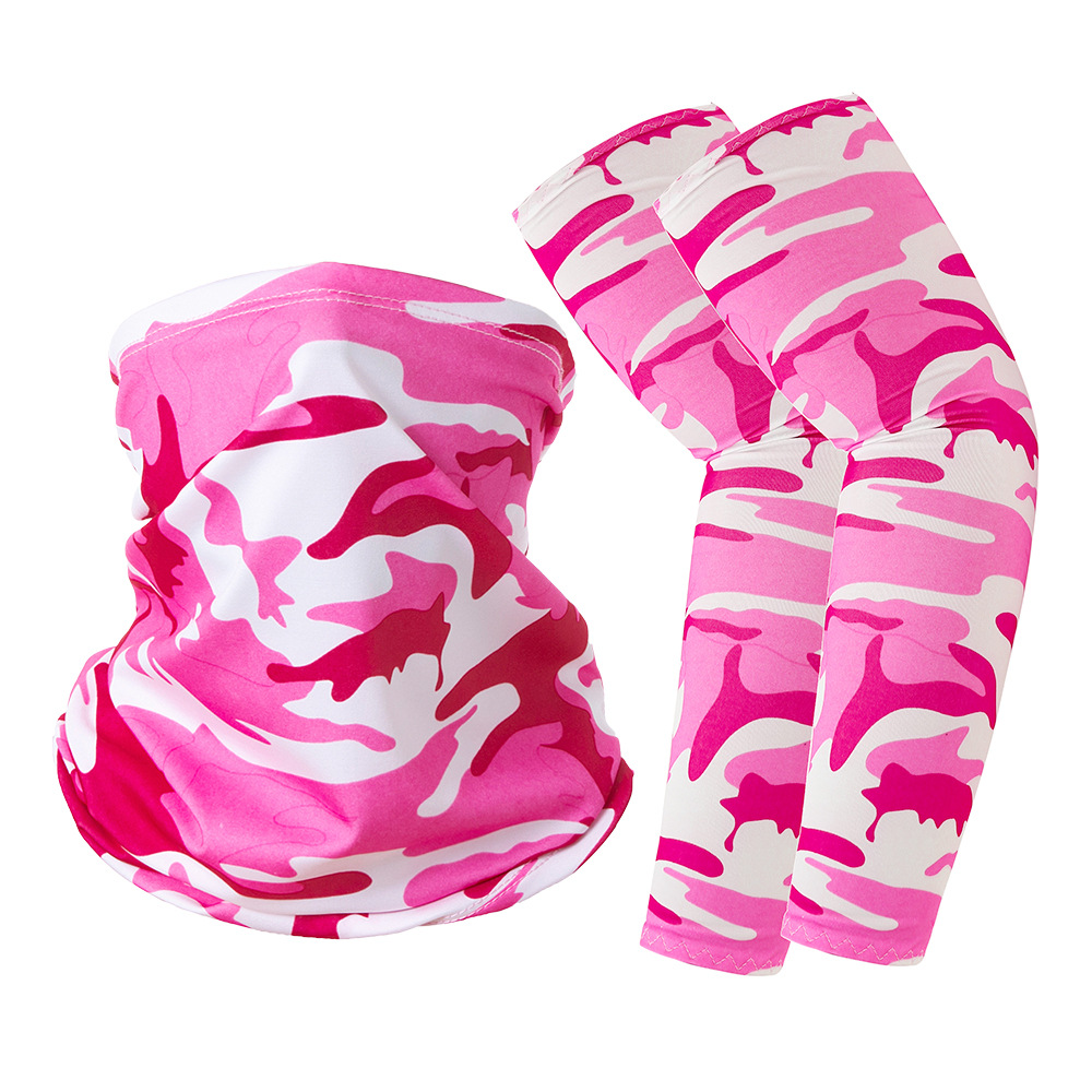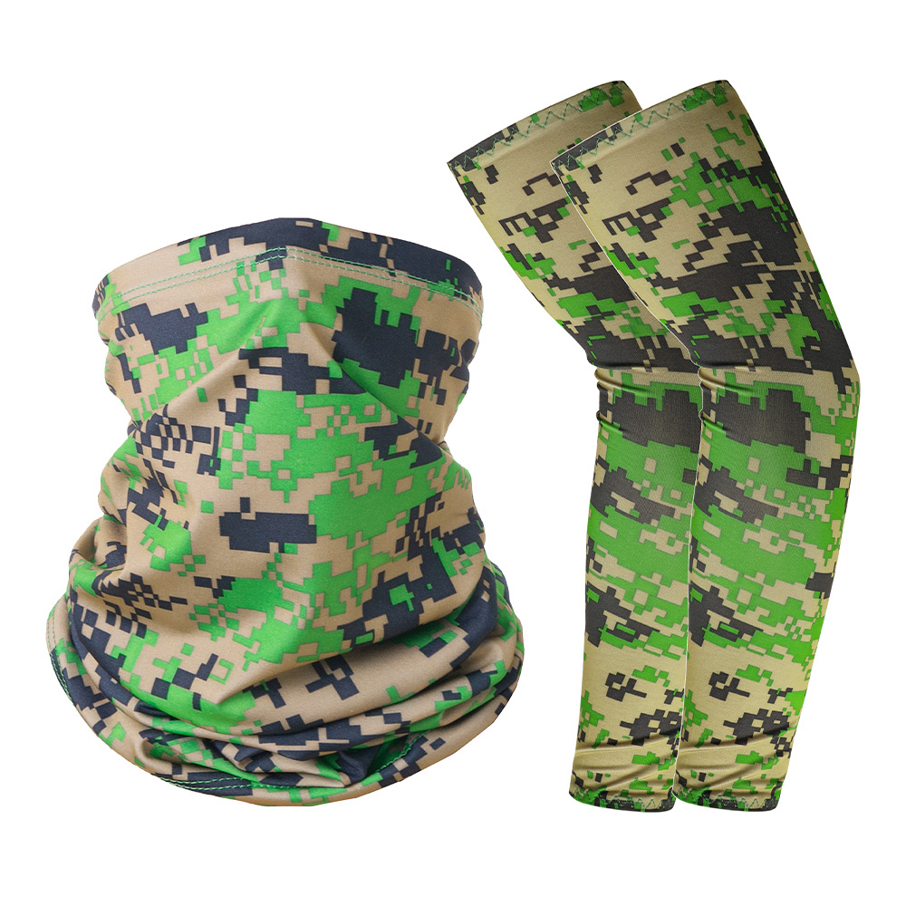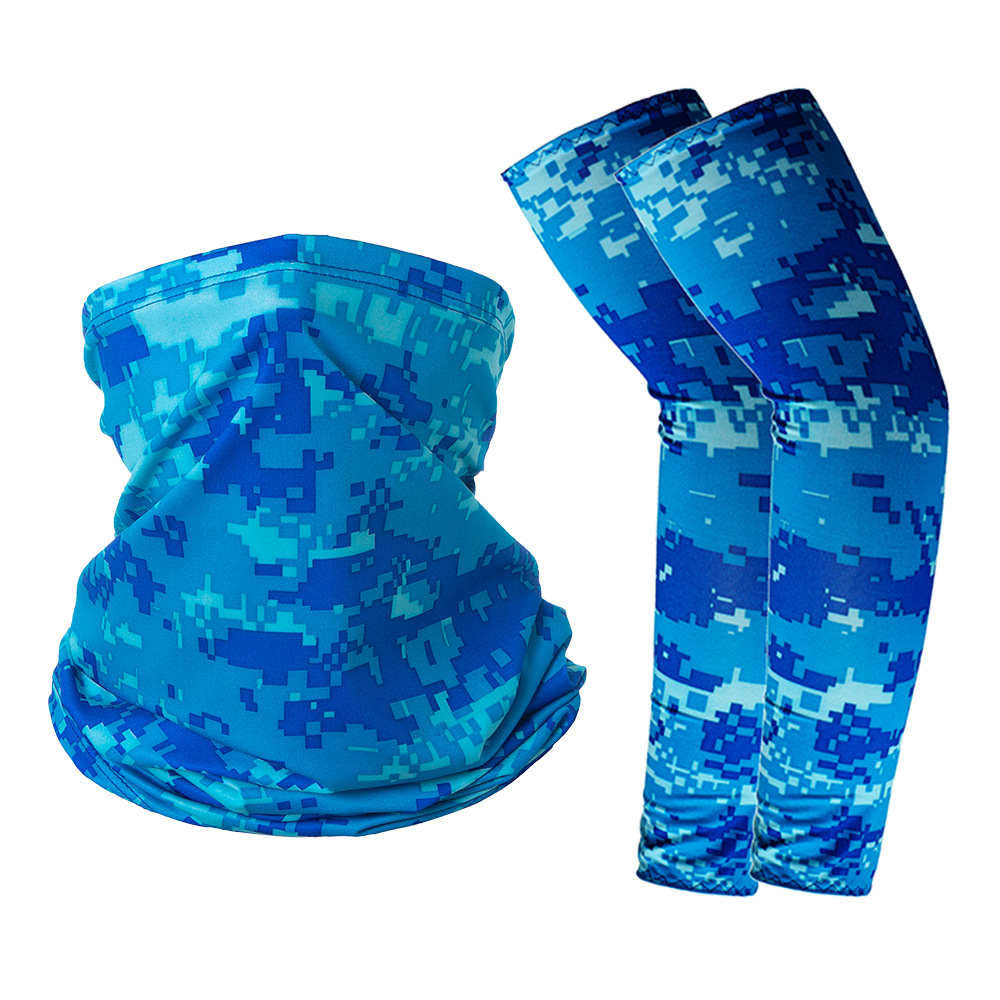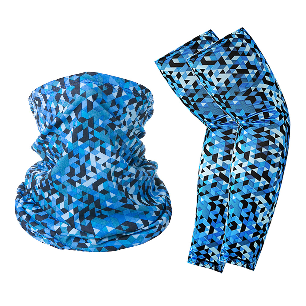 跨境户外防晒袖套冰丝头巾组合套装夏骑行牛奶丝护臂围脖运动男女
