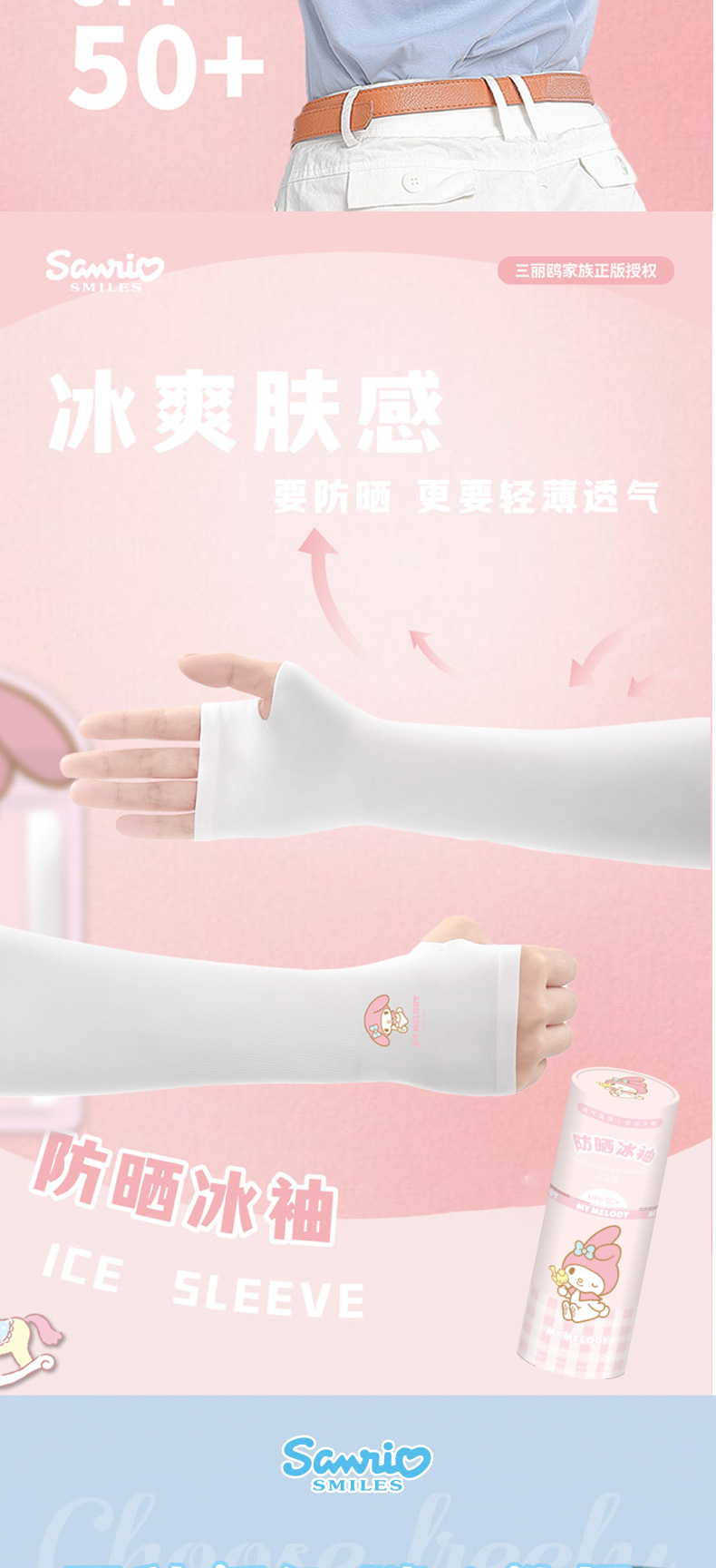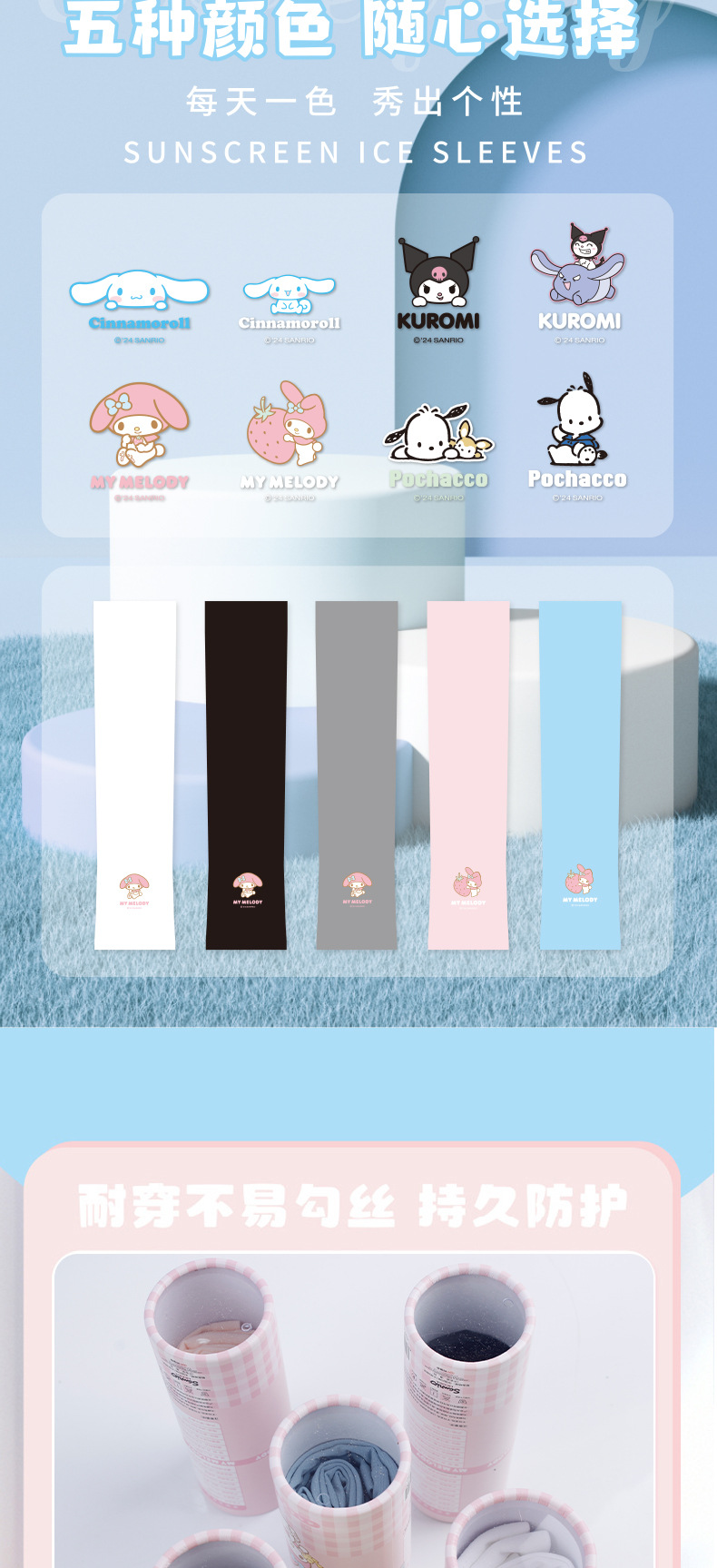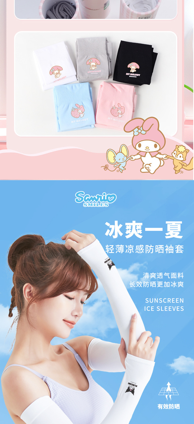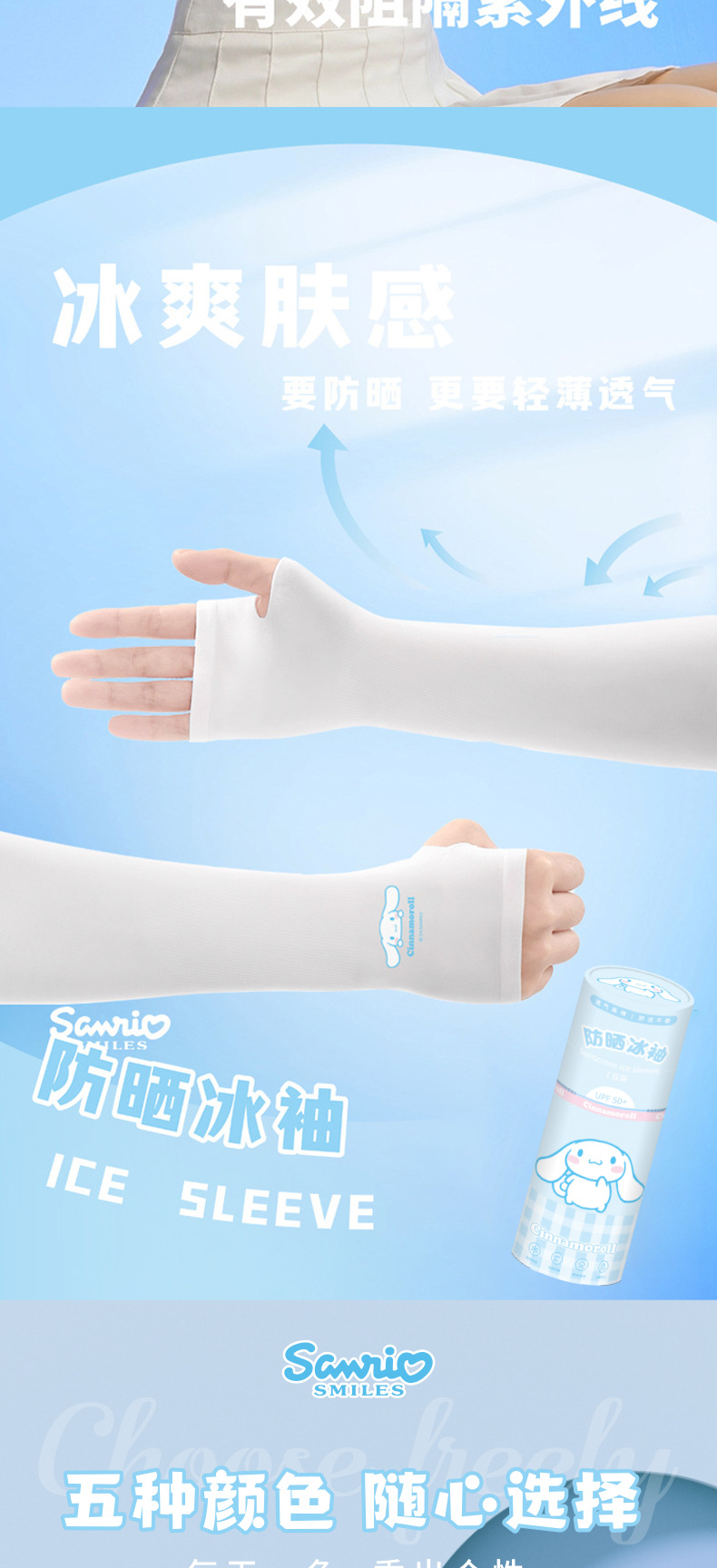 三丽鸥薄款冰丝冰袖防紫外线护手臂防晒袖套男女款运动户外遮阳