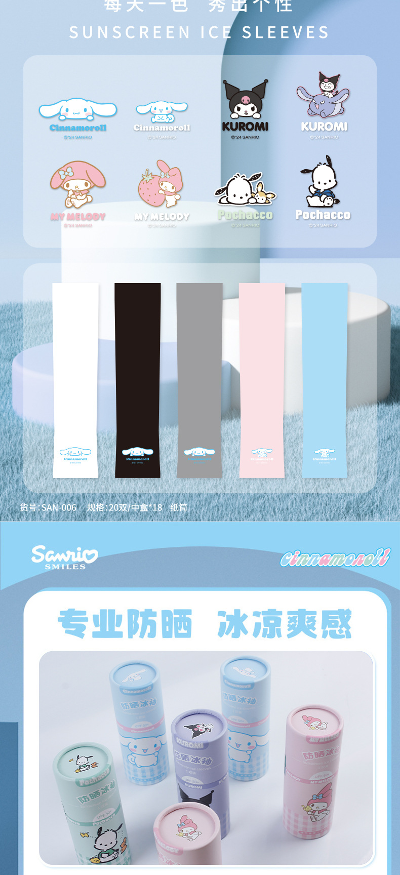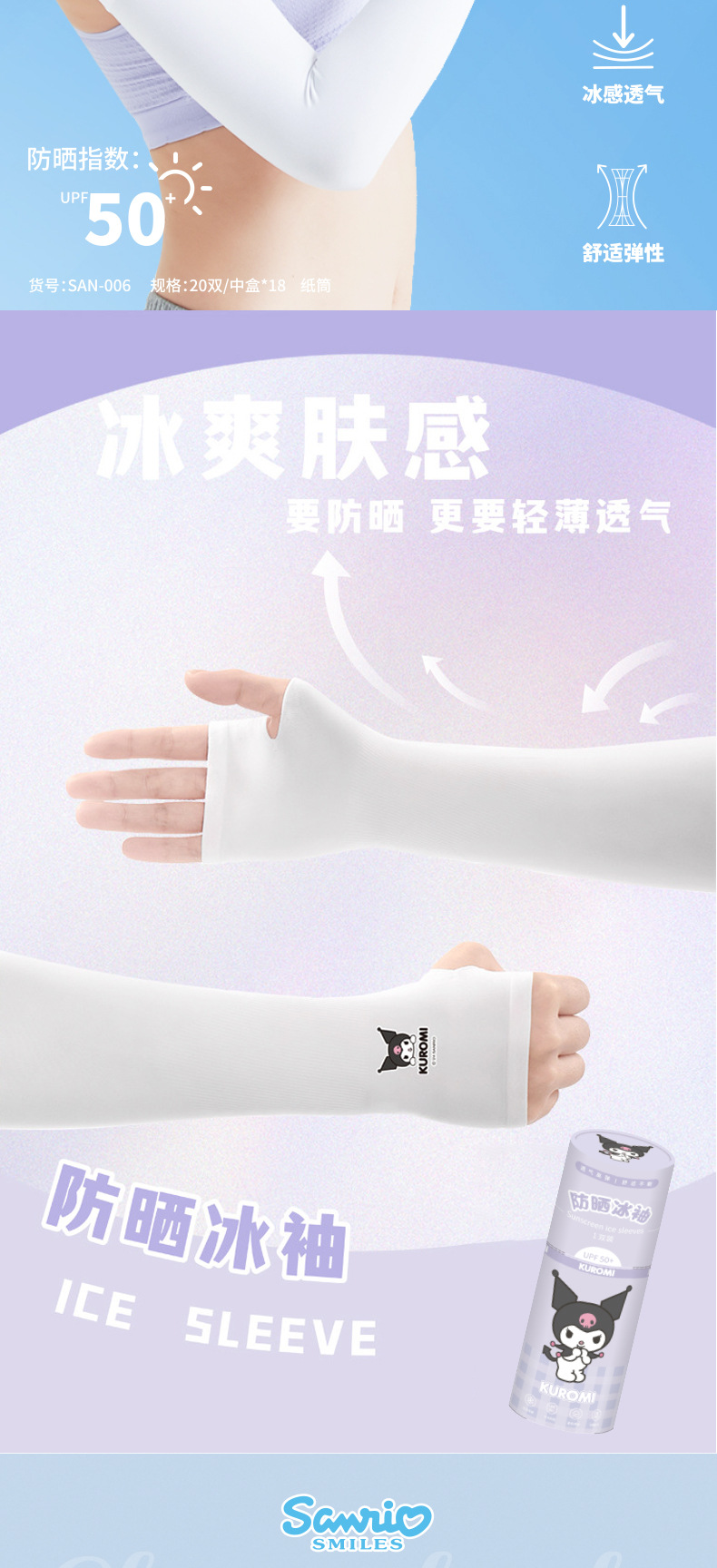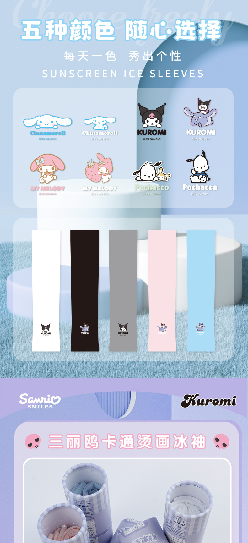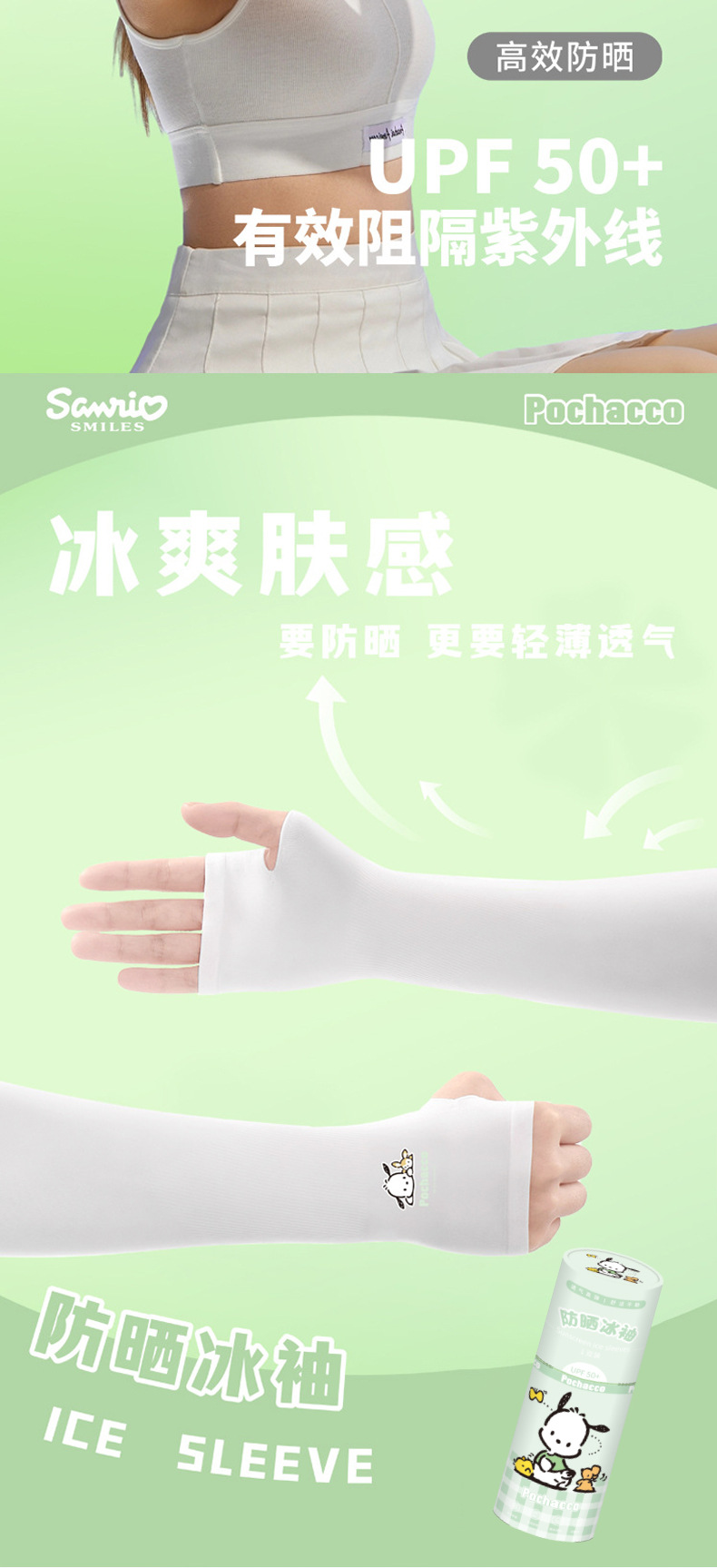 三丽鸥薄款冰丝冰袖防紫外线护手臂防晒袖套男女款运动户外遮阳