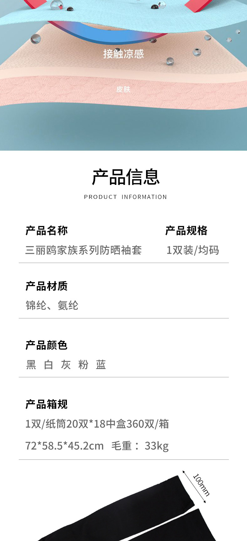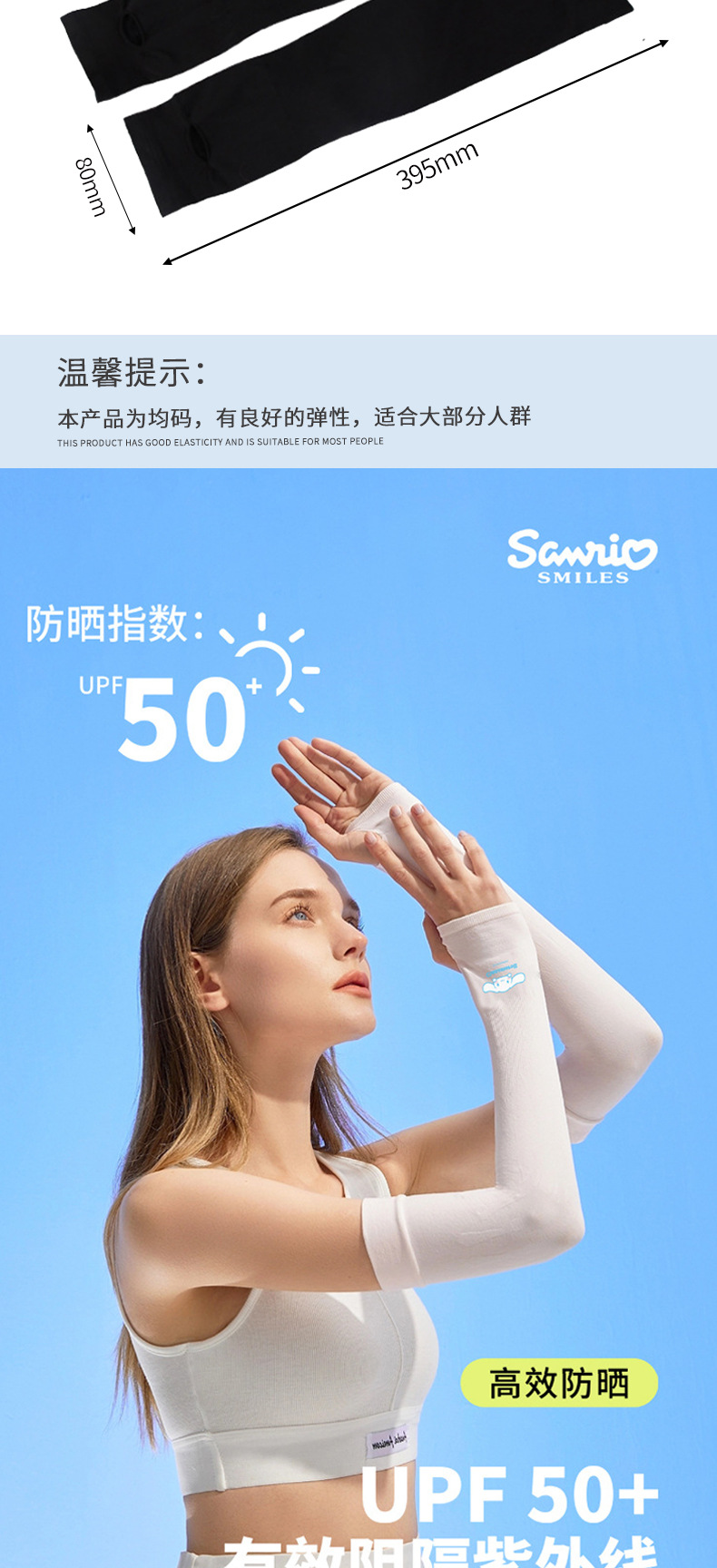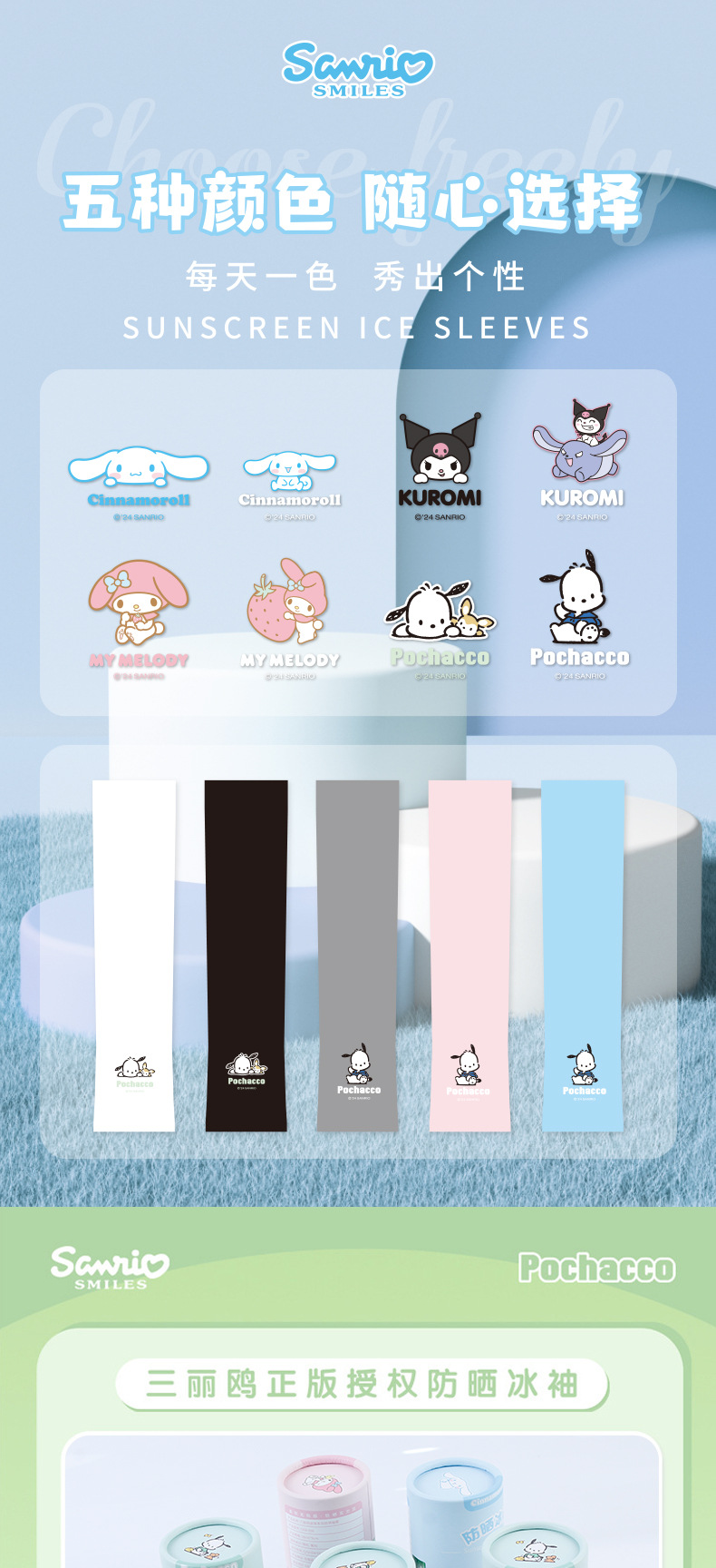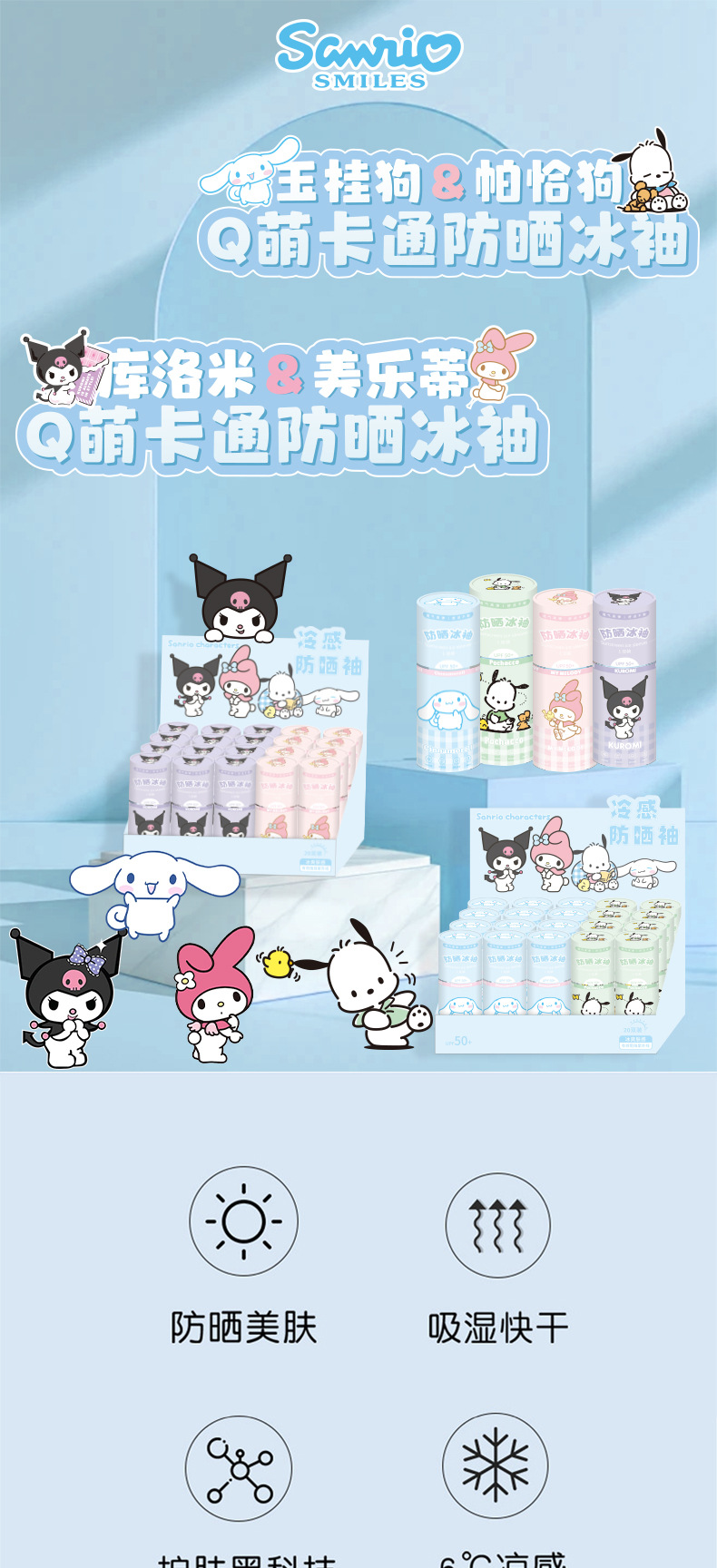 三丽鸥薄款冰丝冰袖防紫外线护手臂防晒袖套男女款运动户外遮阳