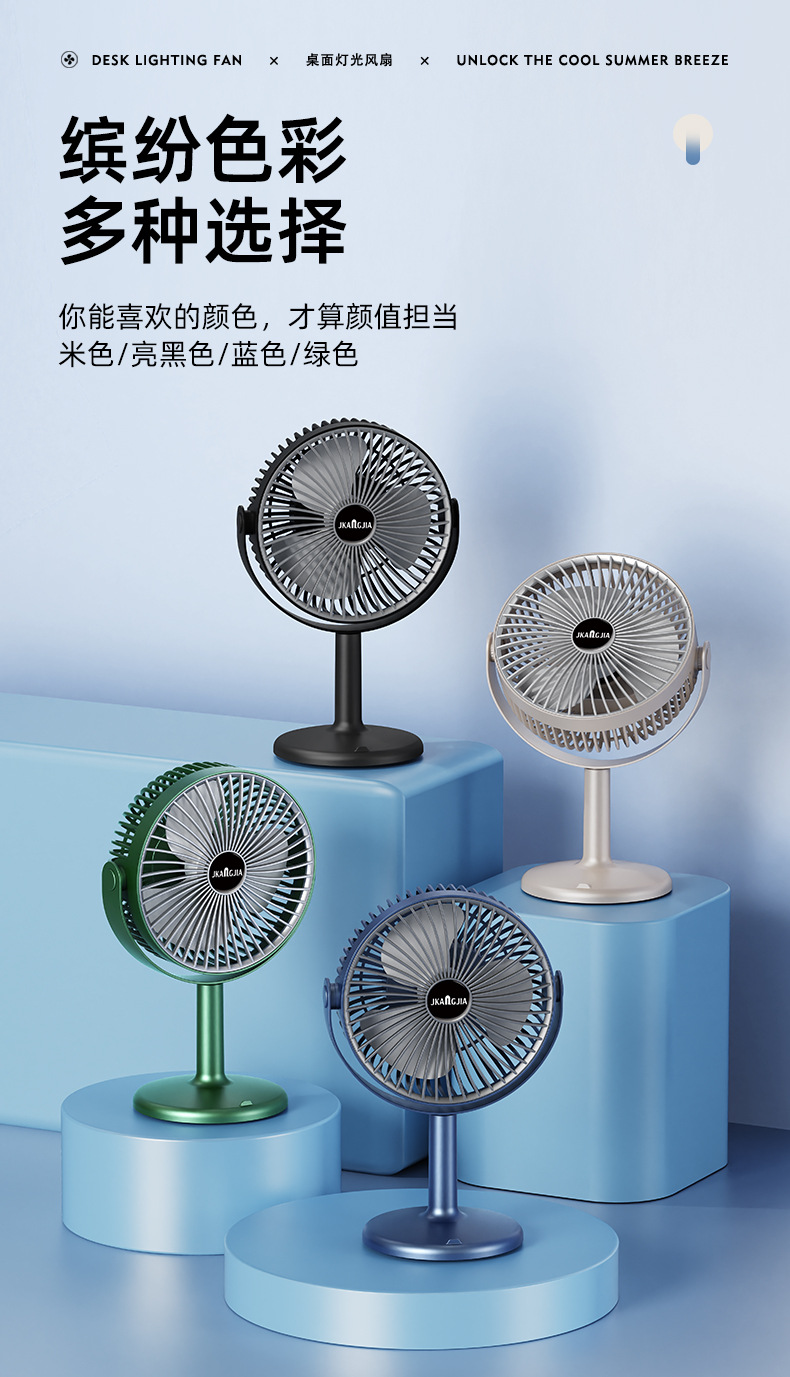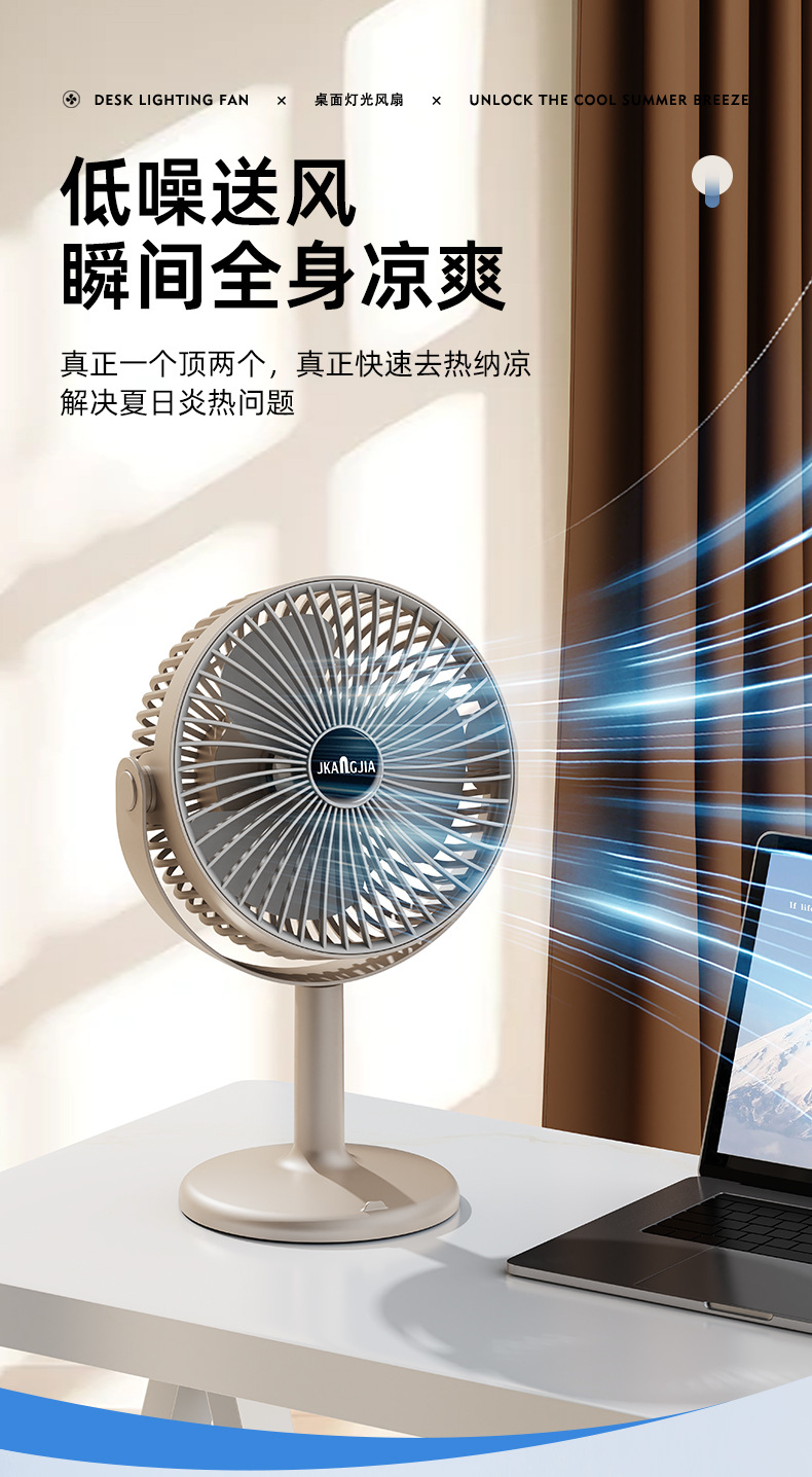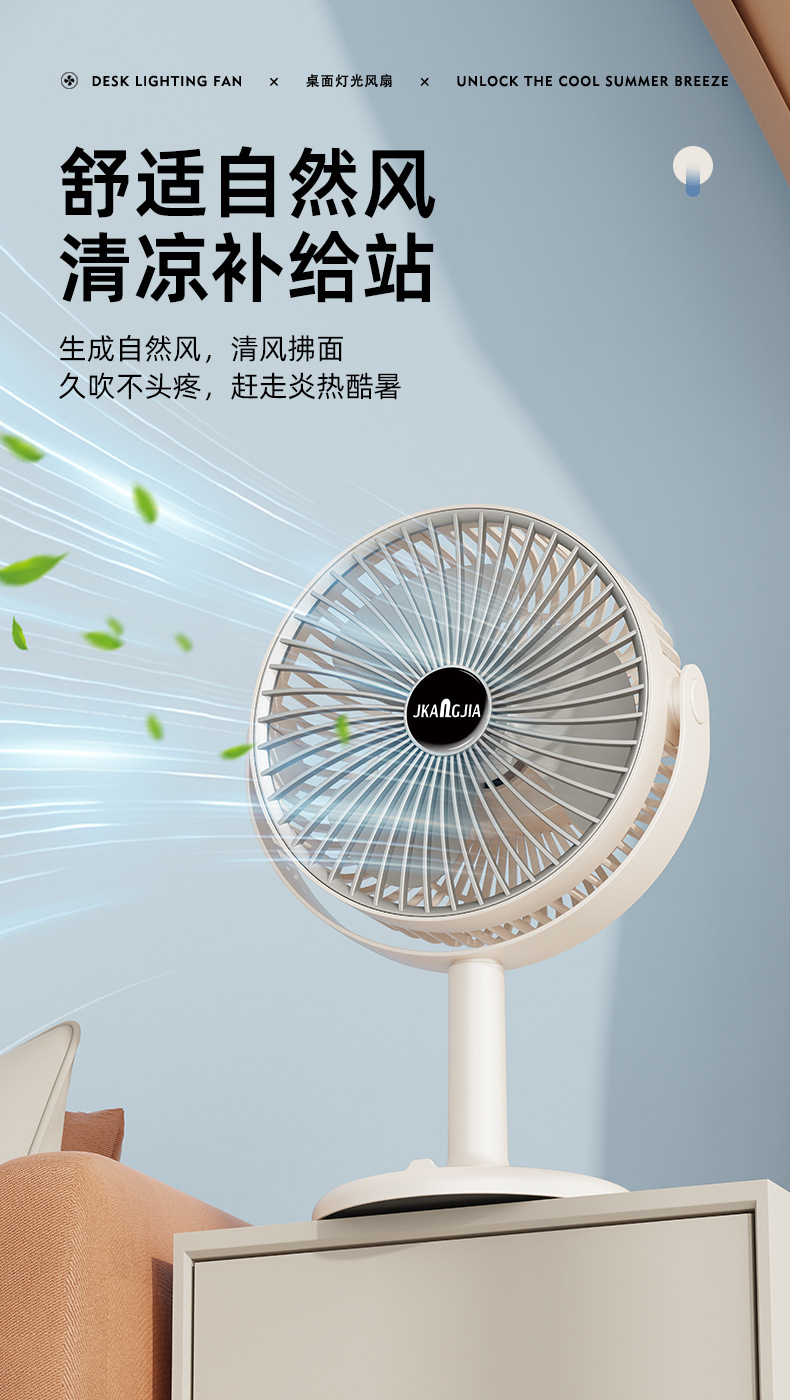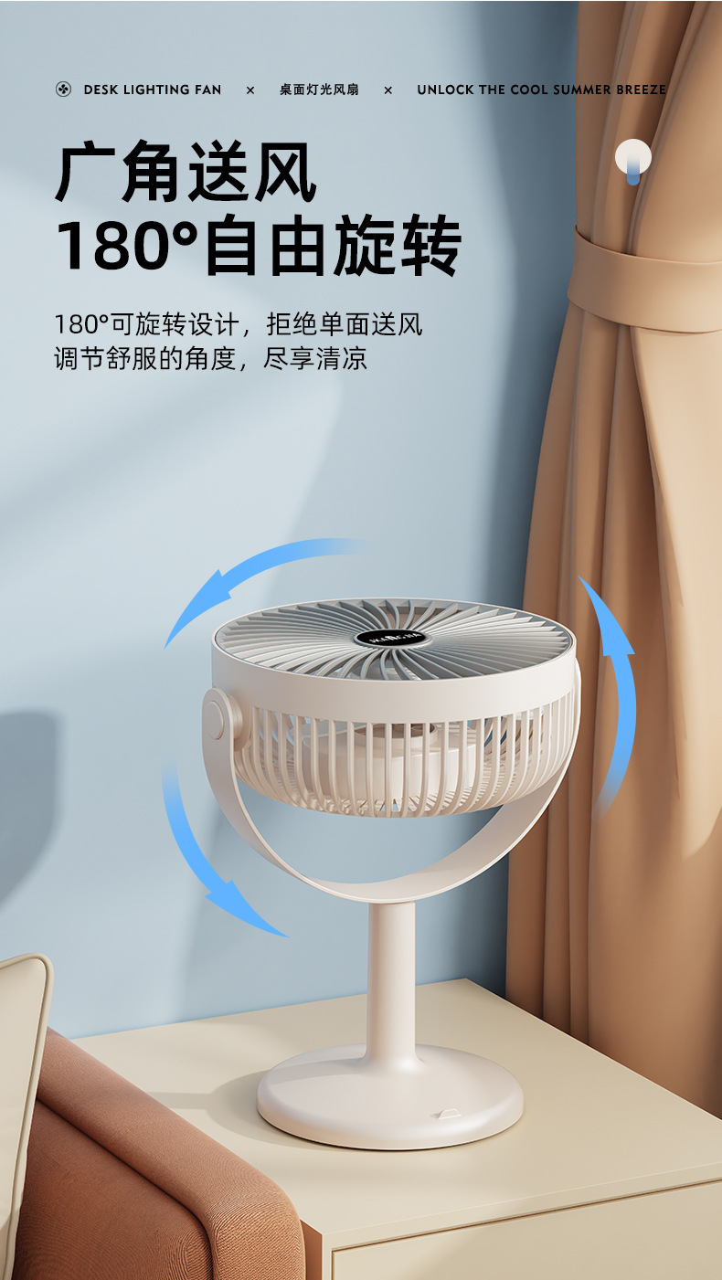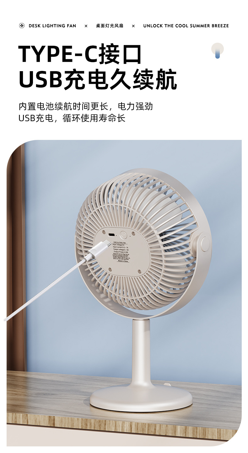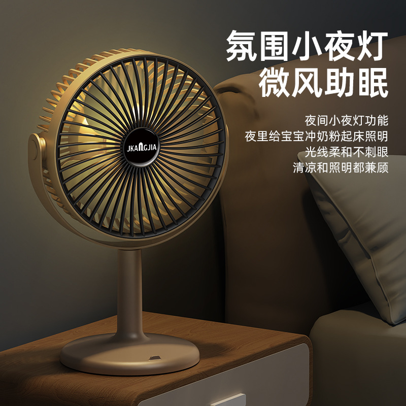 26年新款桌面风扇带氛围夜灯办公室家用便携式充电学生宿舍小风扇