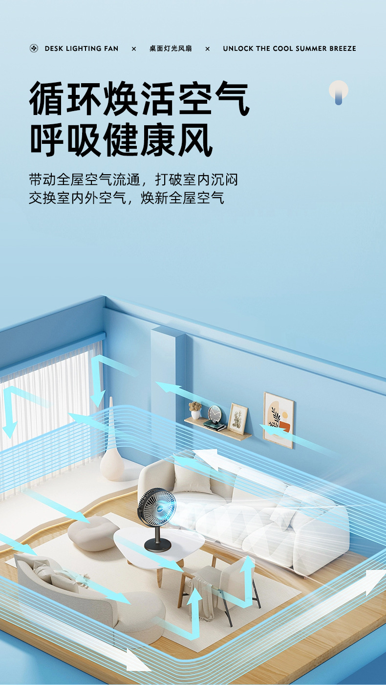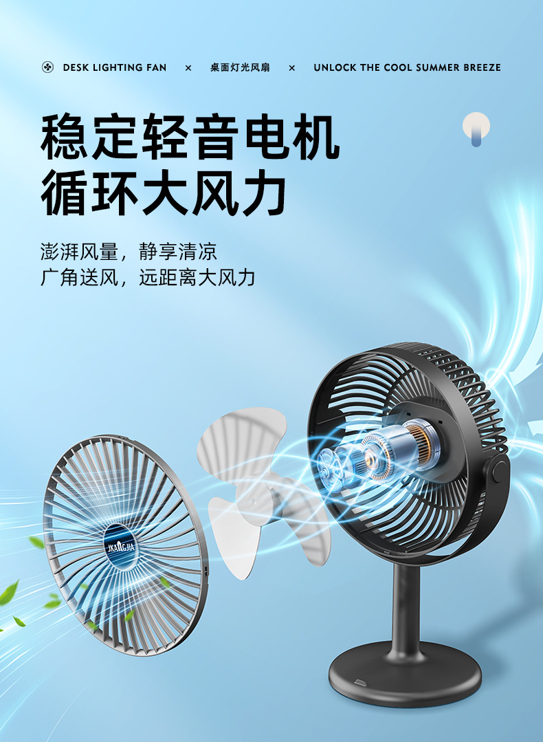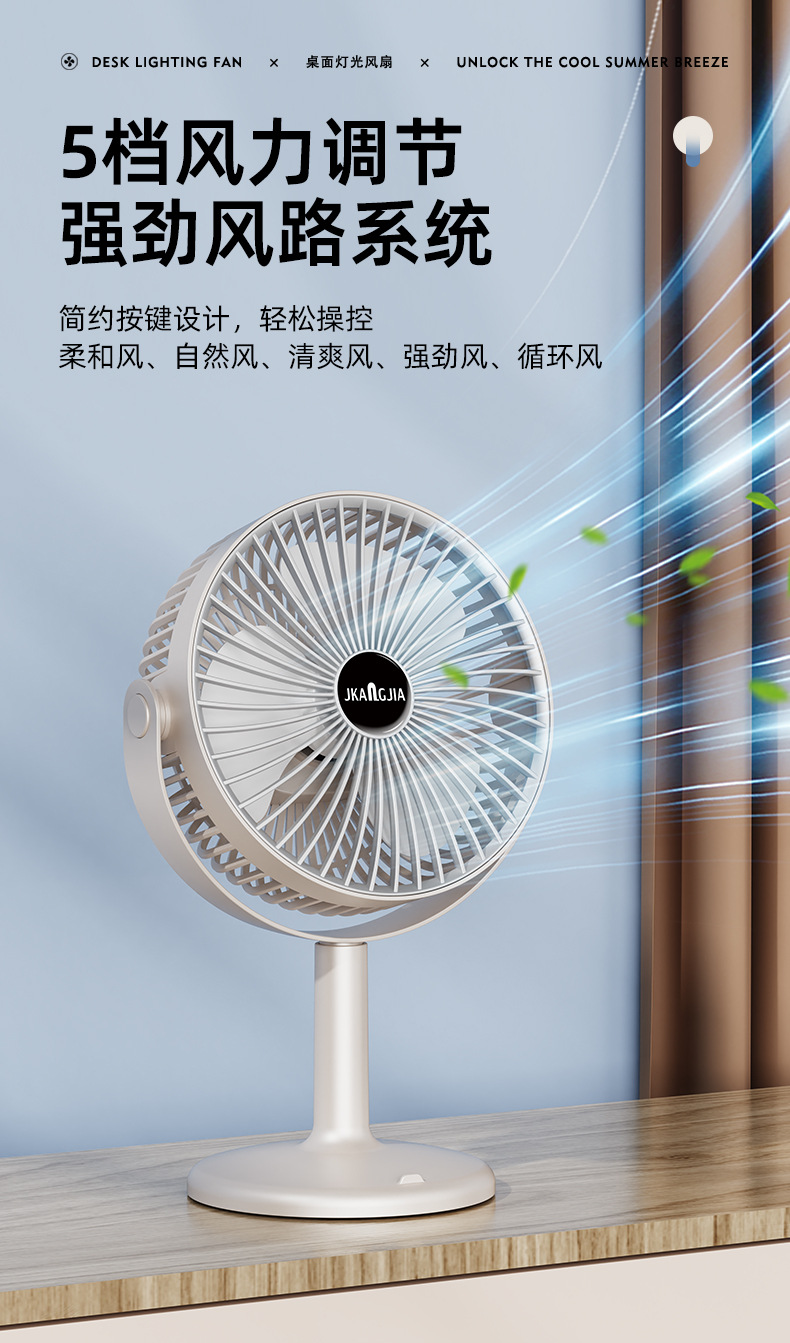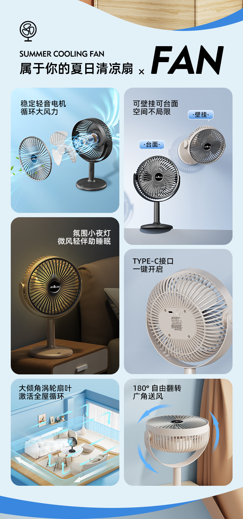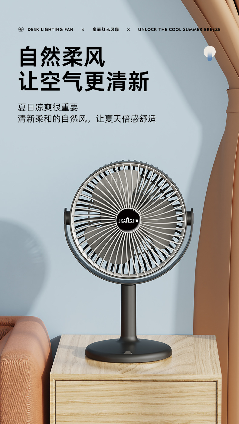 26年新款桌面风扇带氛围夜灯办公室家用便携式充电学生宿舍小风扇