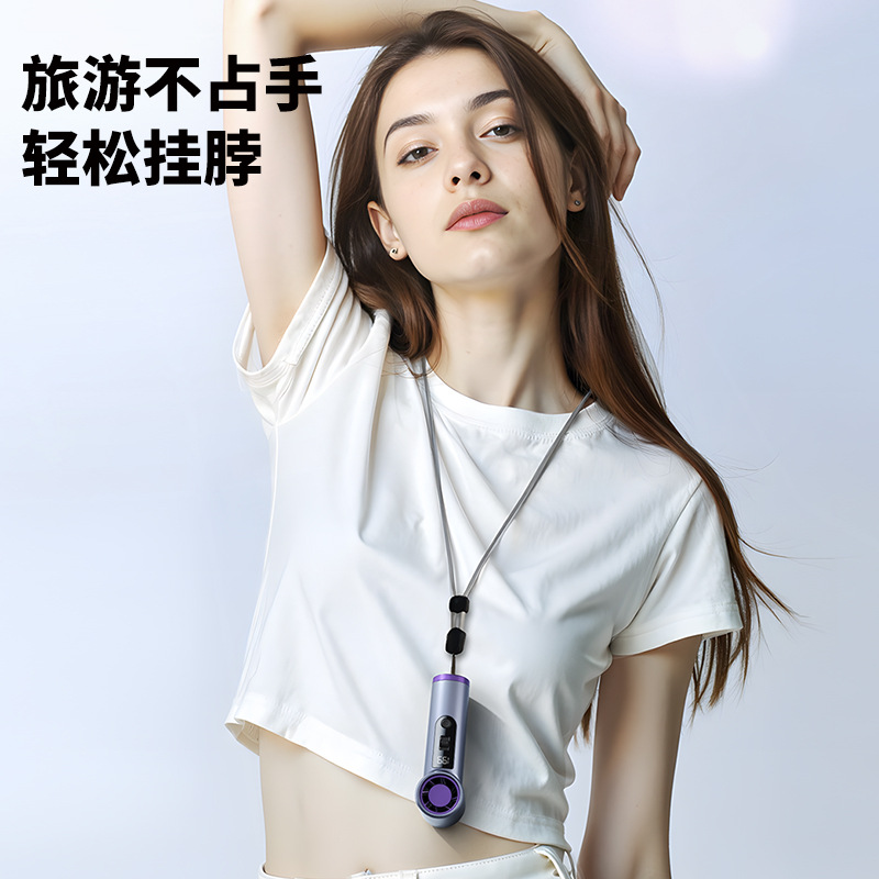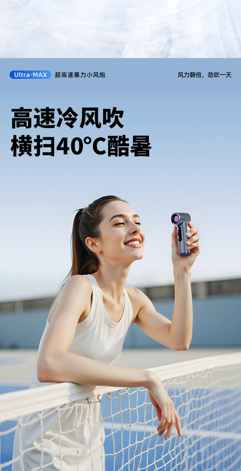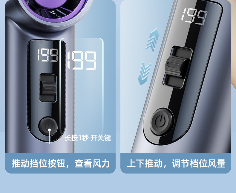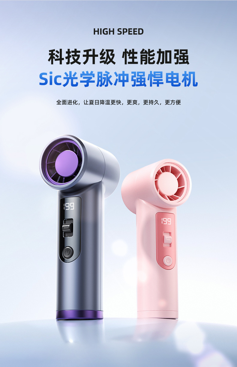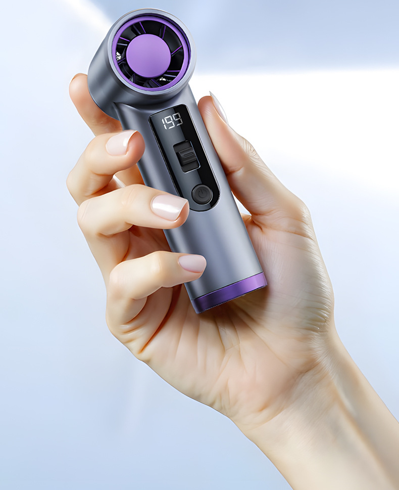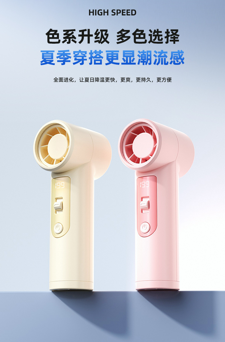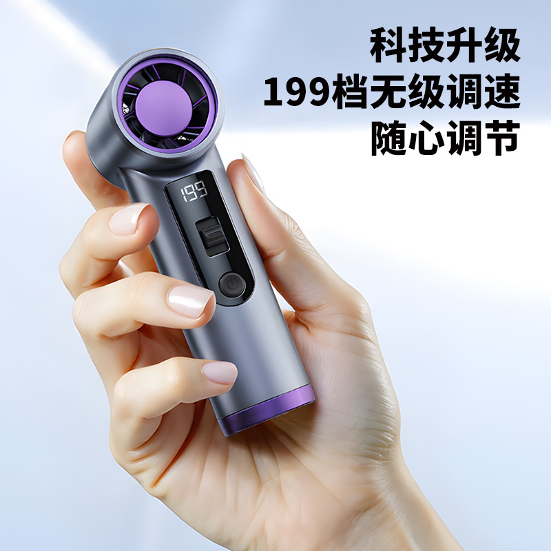 跨境高速手持风扇暴力挂脖迷你口袋小型风炮便携数显USB充电涡轮