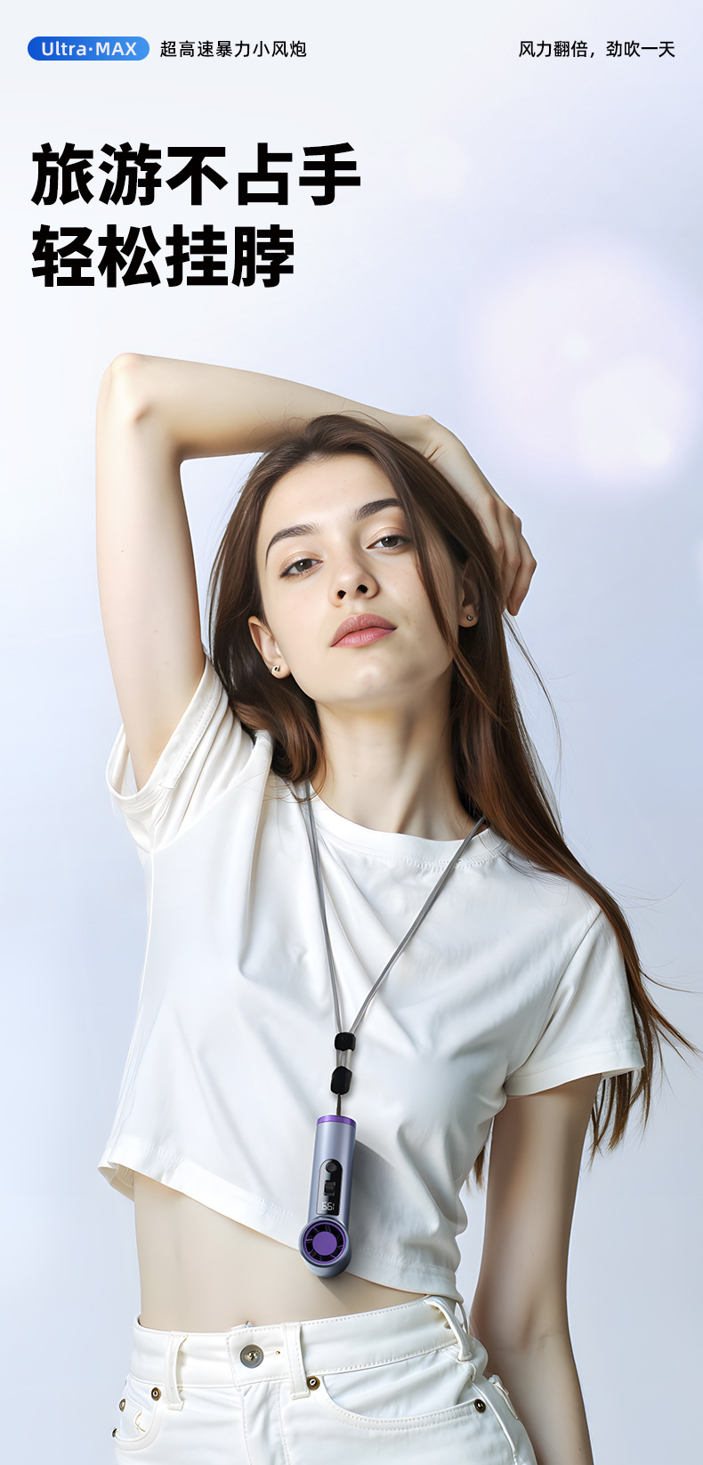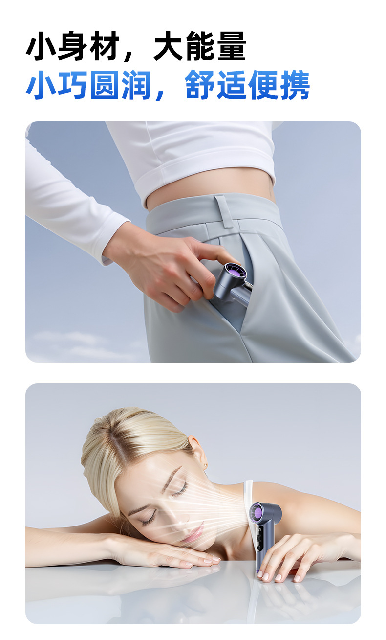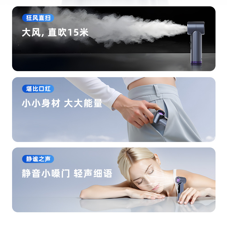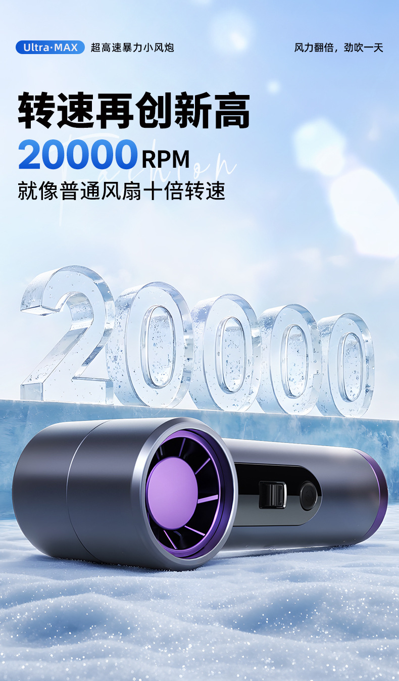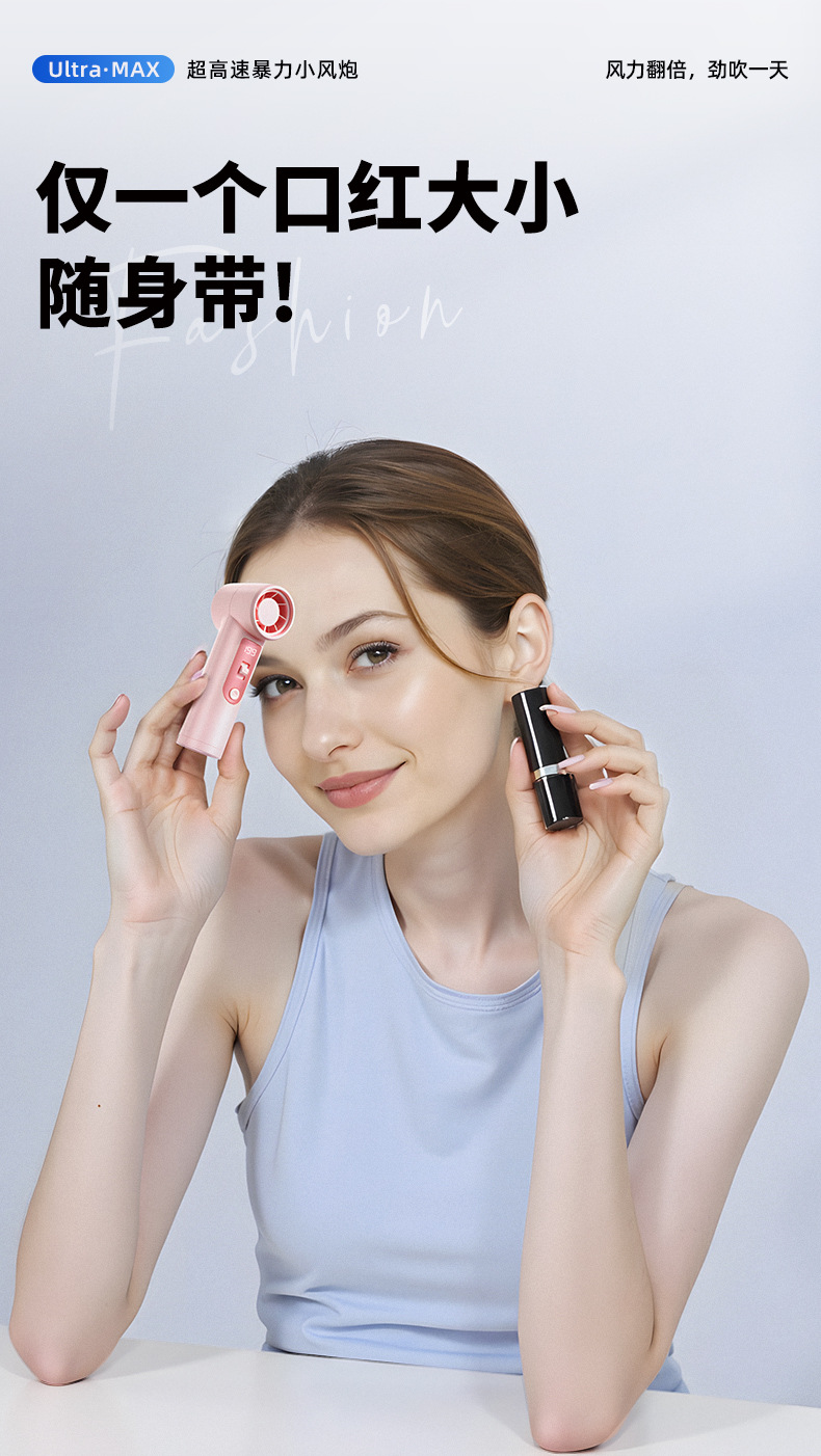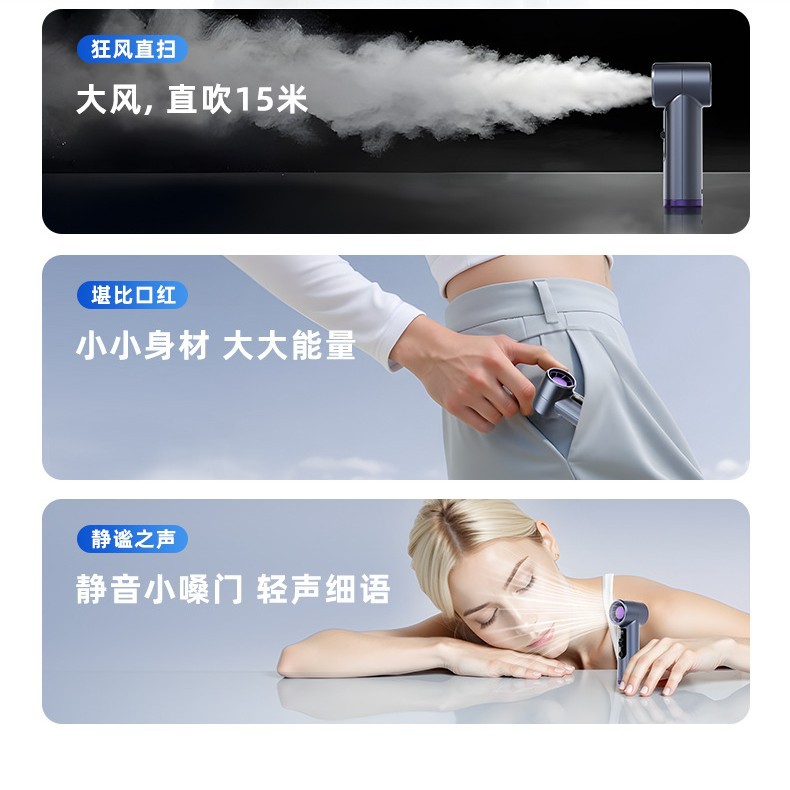 跨境高速手持风扇暴力挂脖迷你口袋小型风炮便携数显USB充电涡轮
