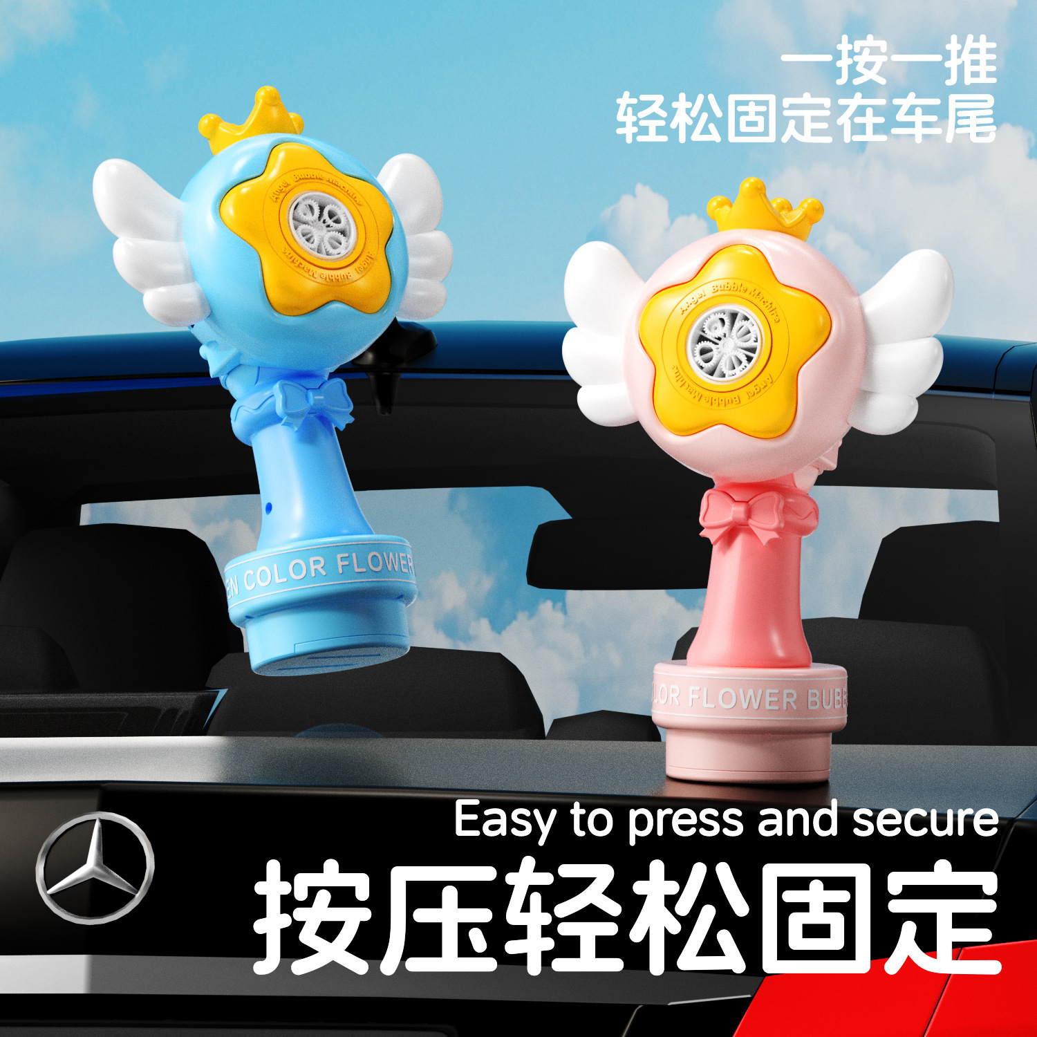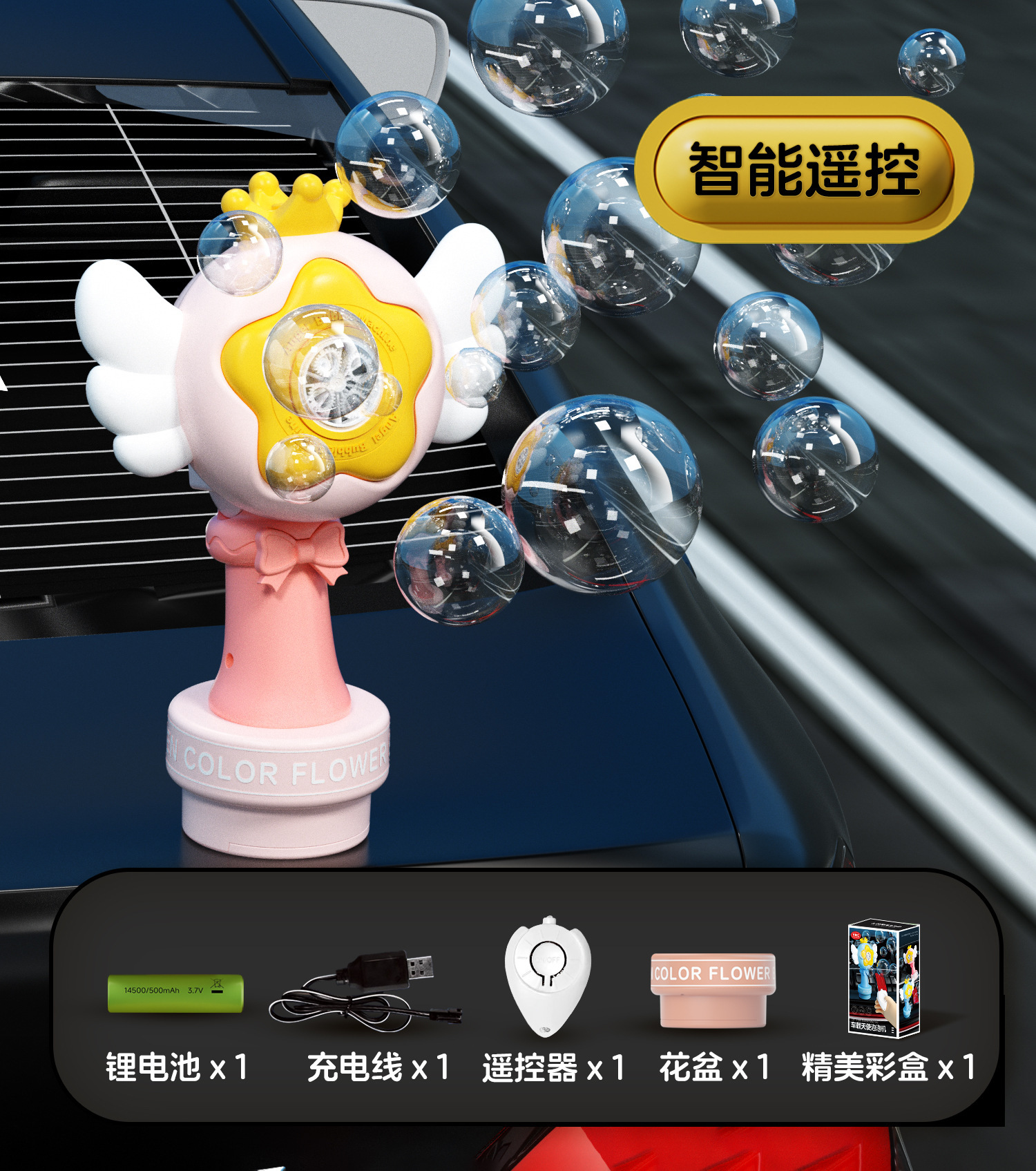 新款 车载遥控天使泡泡机婚庆USB充电款夜灯光泡泡枪车尾挂件汽车
