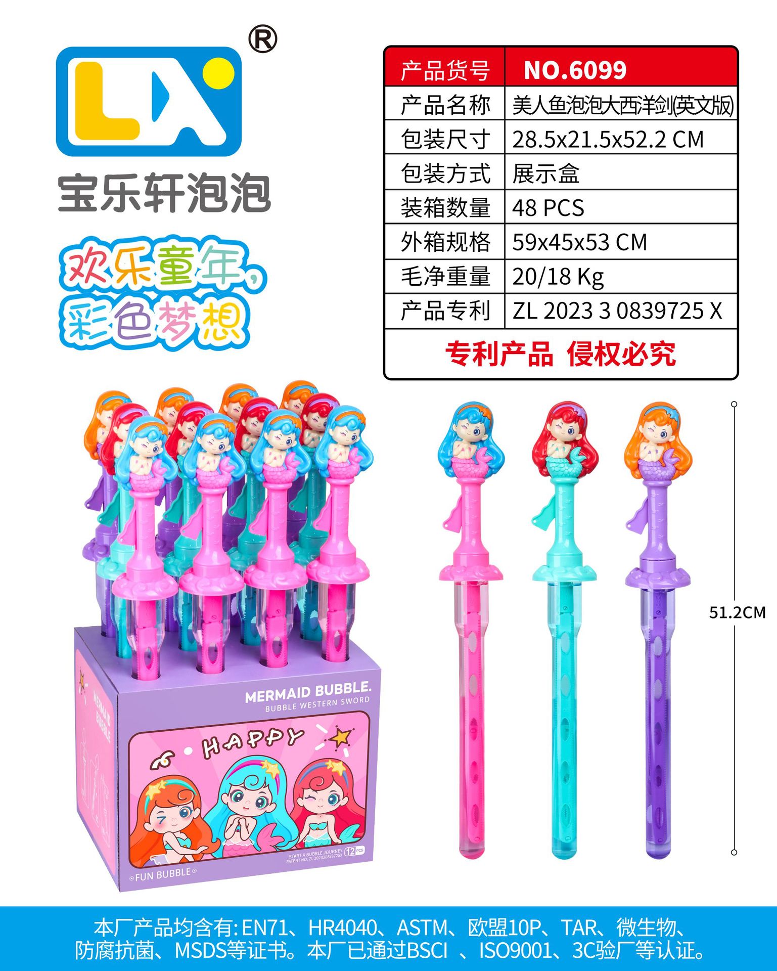 51cm卡通美人鱼泡泡棒网红大号泡泡机玩具儿童泡泡棒带水批发摆摊