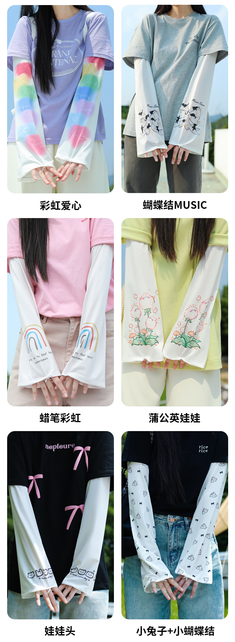 ins风夏季冰袖动漫可爱防晒透气袖套女 冰丝户外骑行钓鱼开车遮手
