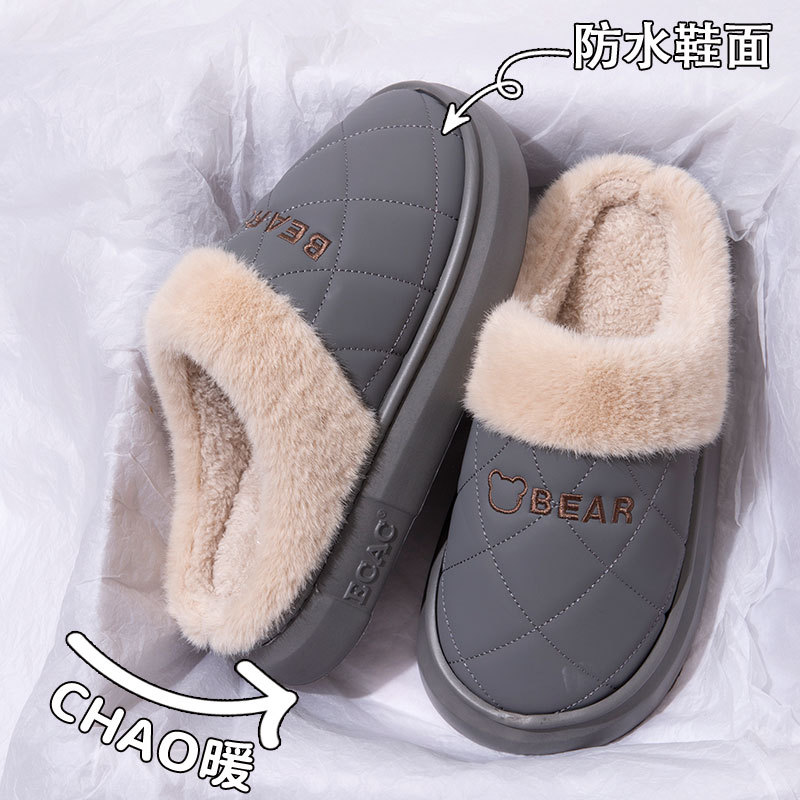 防水棉拖鞋女款秋冬季2025新款家居室内加绒保暖外穿厚底毛绒拖鞋