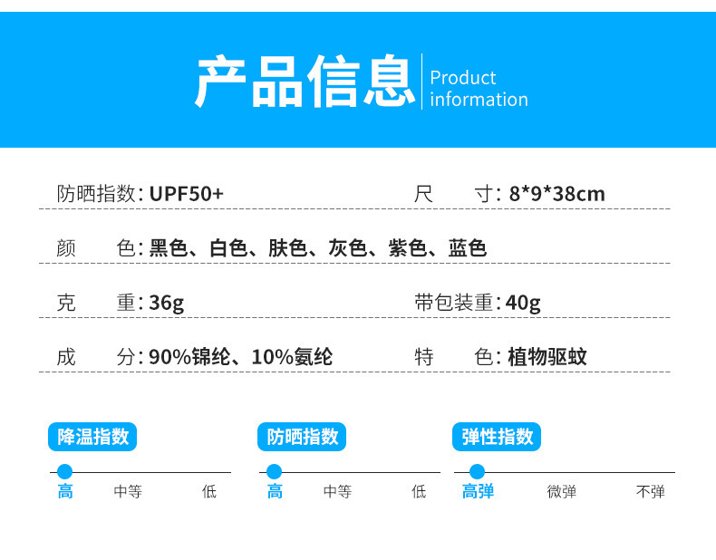 跨境英文包装袋防晒冰袖女凉感开车防紫外线户外钓鱼男冰丝护袖套