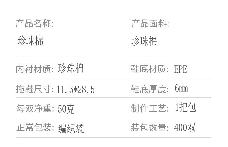 连锁全季同款居家待客加厚家用客人旅行民宿酒店一次性珍珠棉拖鞋