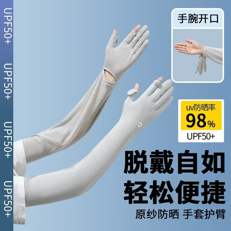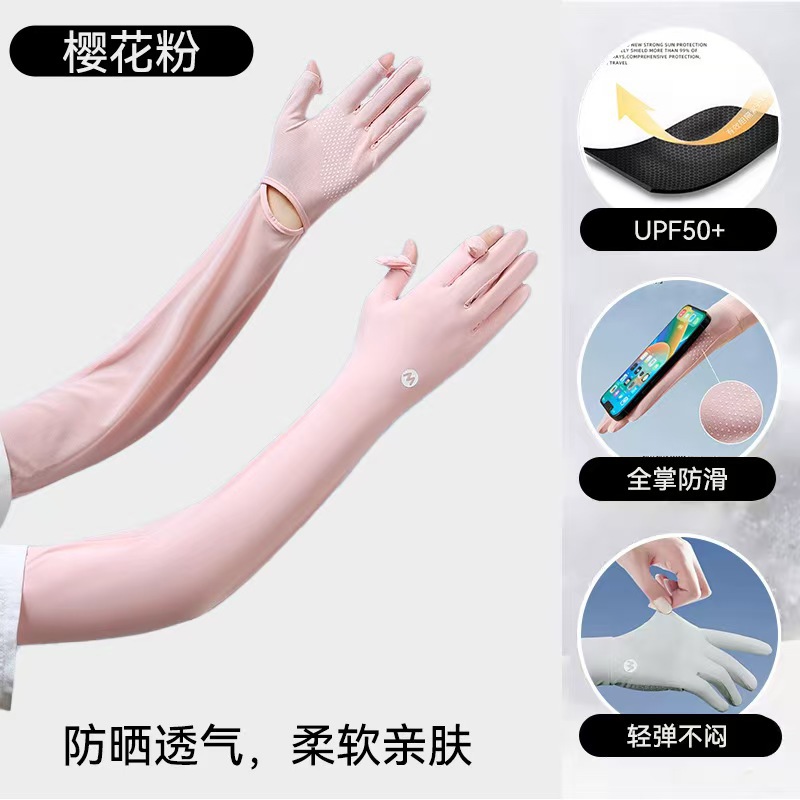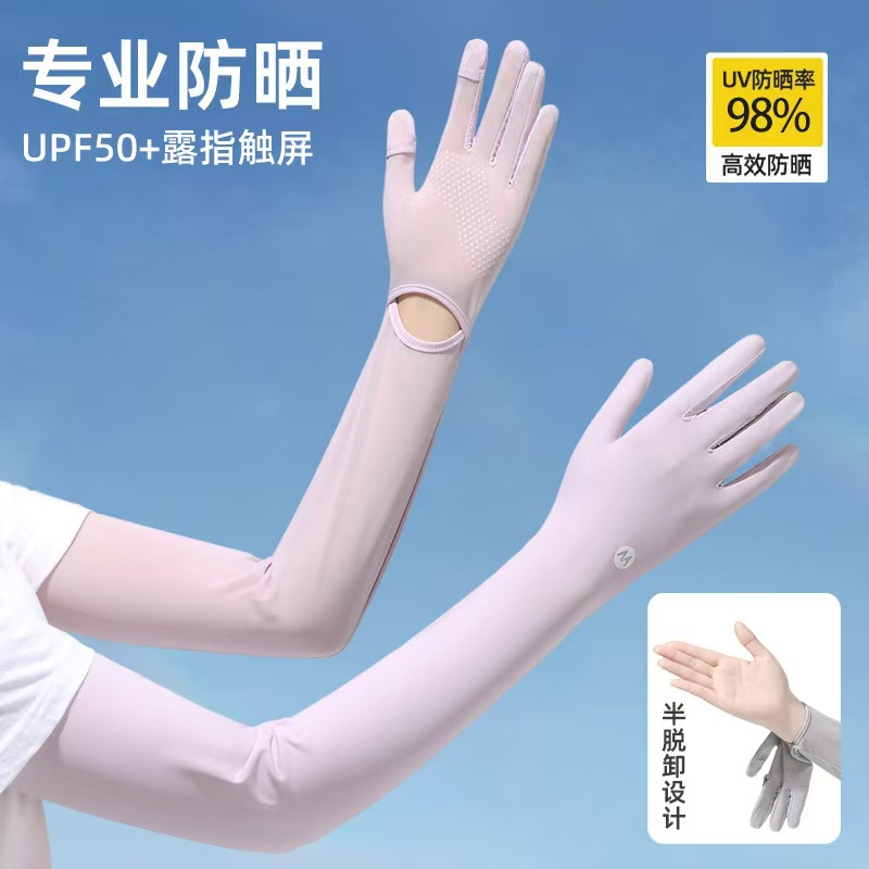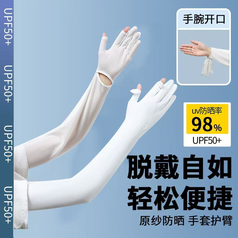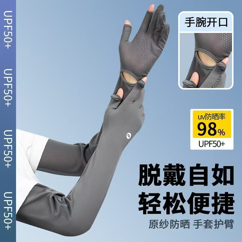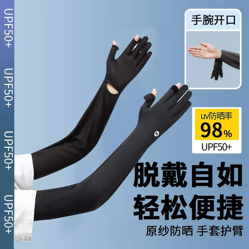 锦纶防晒冰袖女可调节防晒冰袖防紫外线户外开车护臂防滑触屏袖套