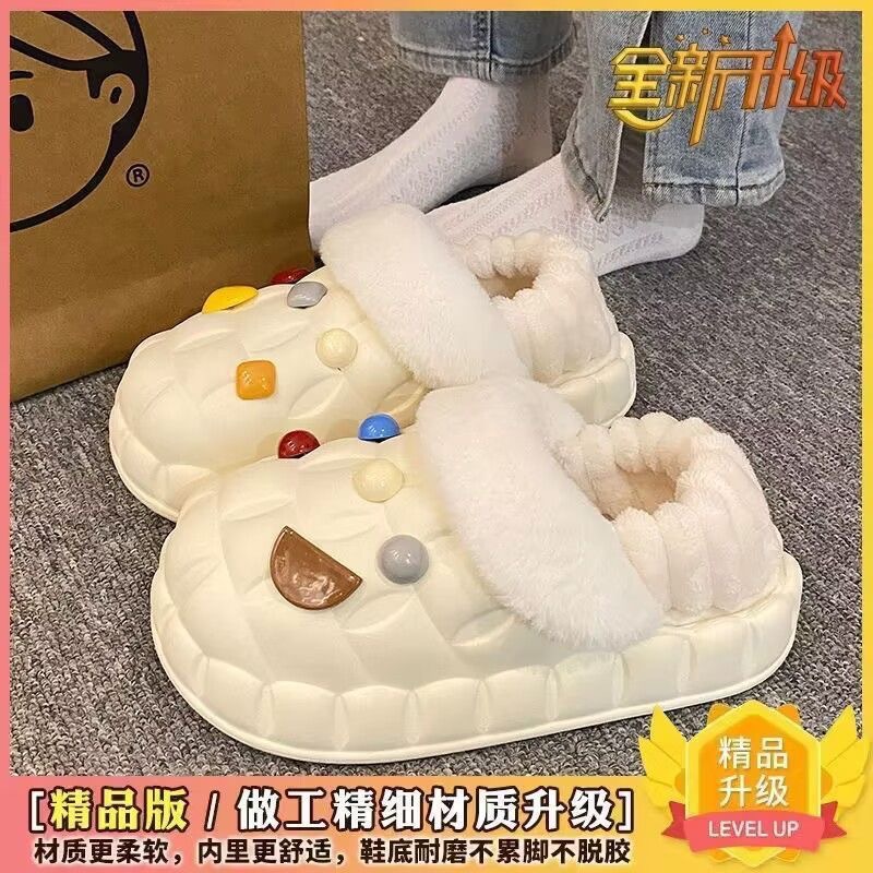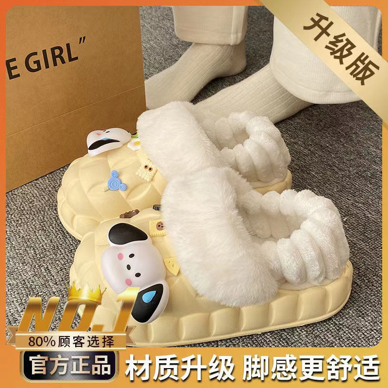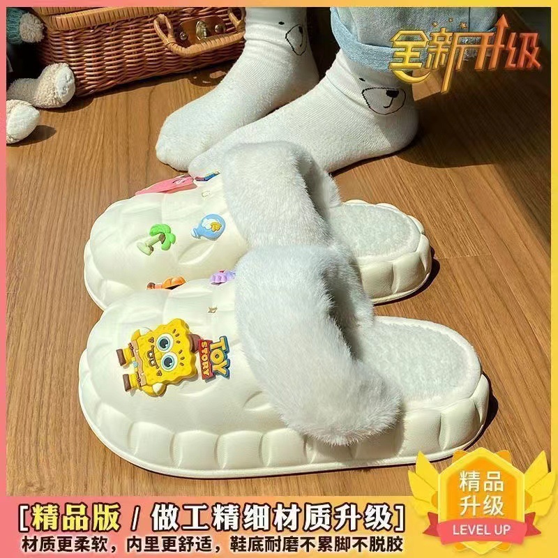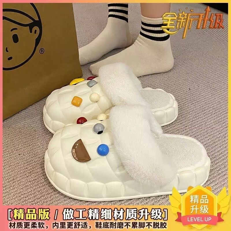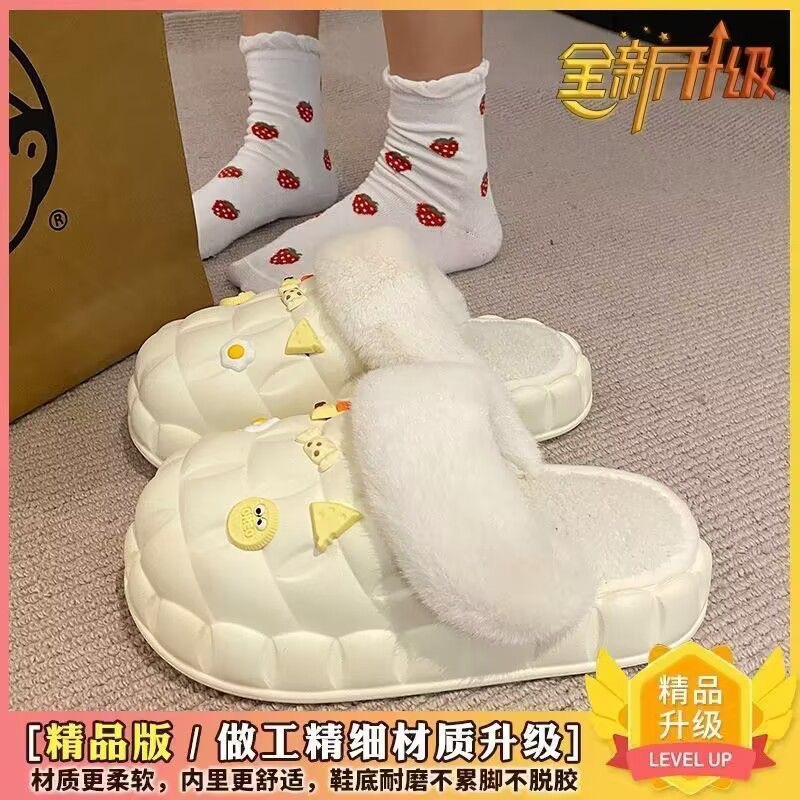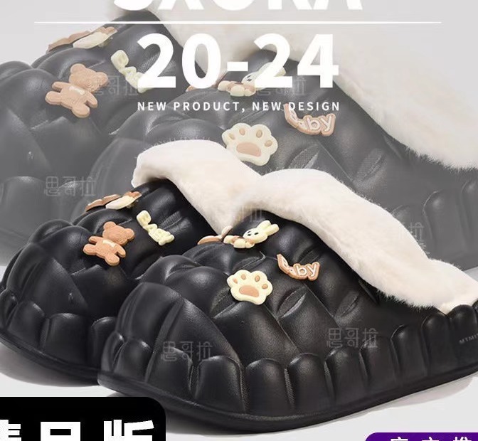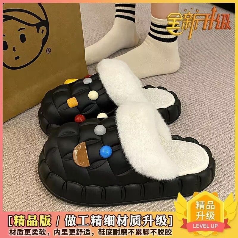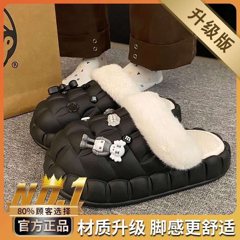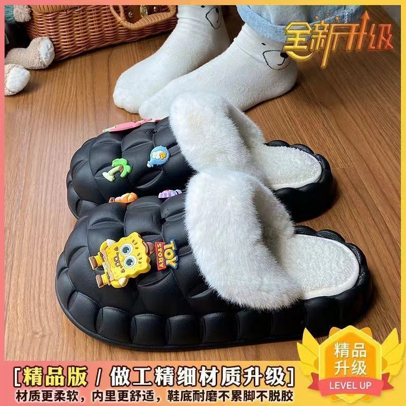2025女新款可拆卸冬季外穿家居室内毛绒棉拖鞋防水保暖毛毛拖鞋