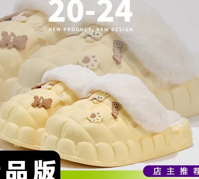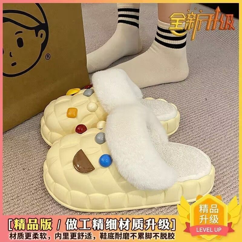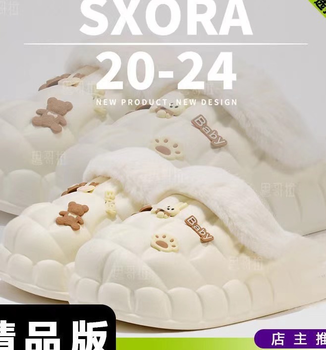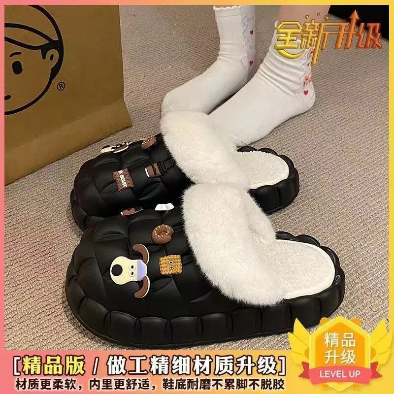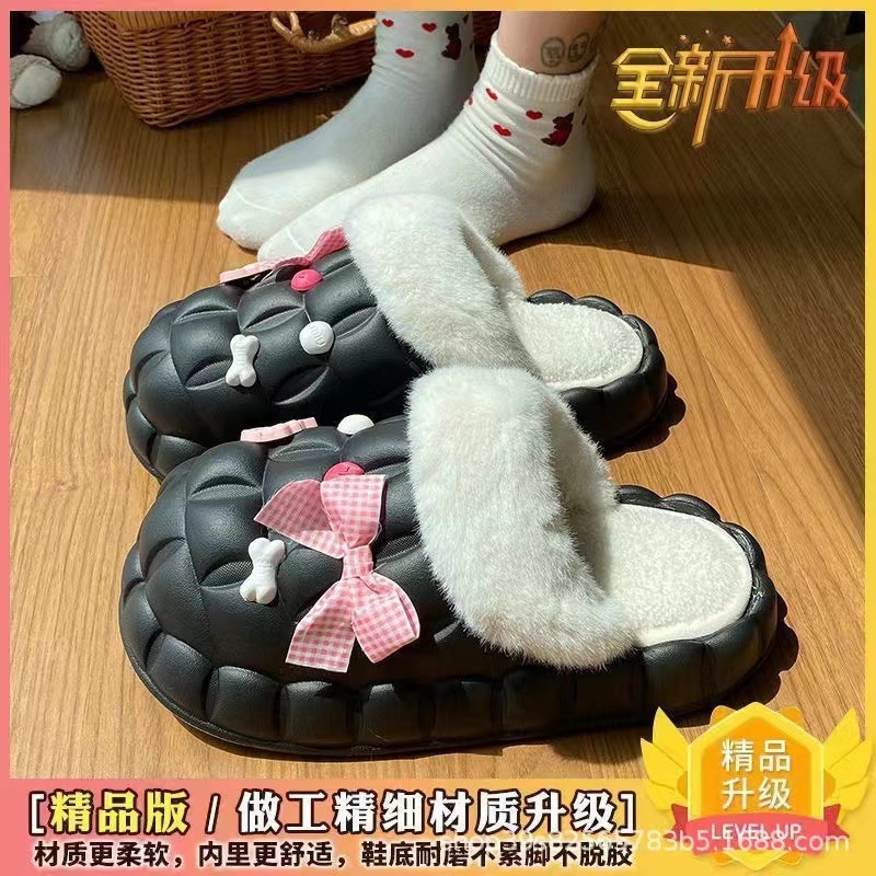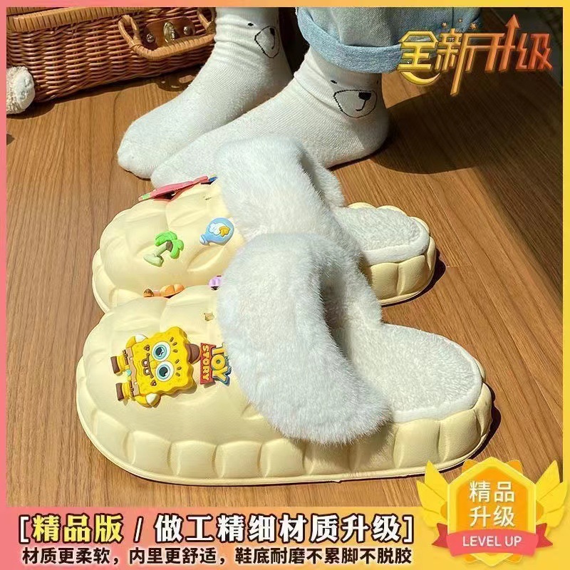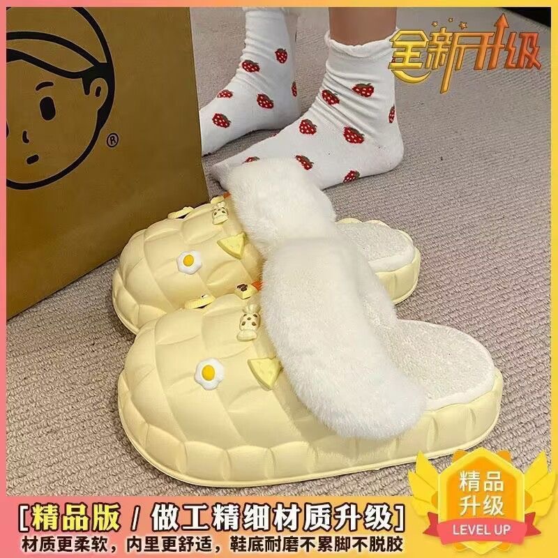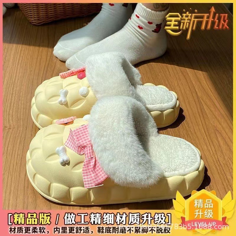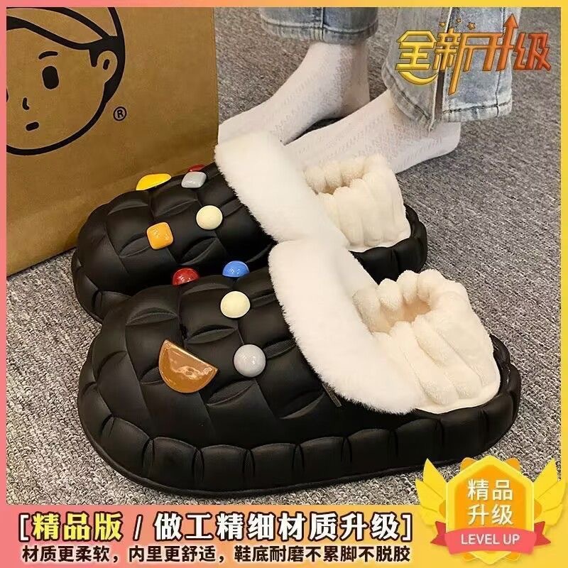 2025女新款可拆卸冬季外穿家居室内毛绒棉拖鞋防水保暖毛毛拖鞋