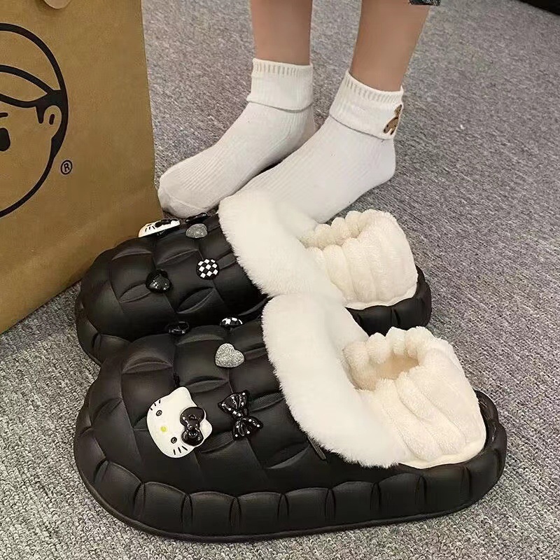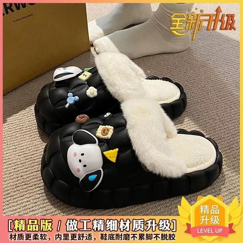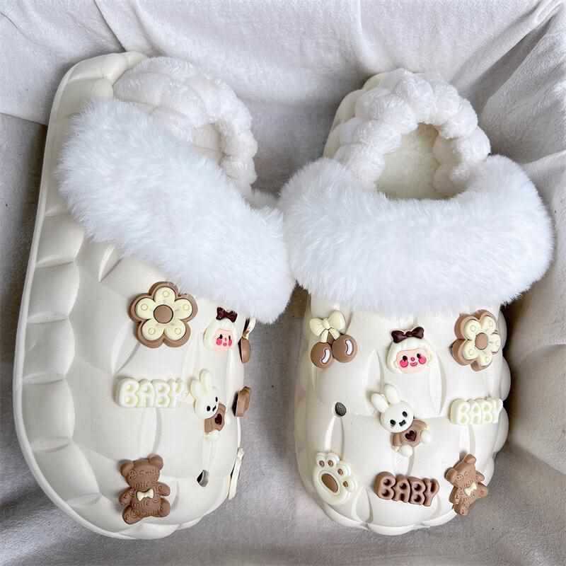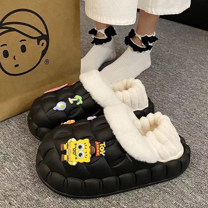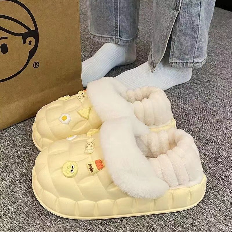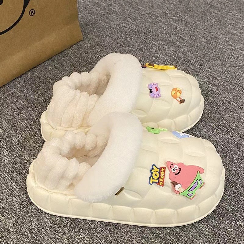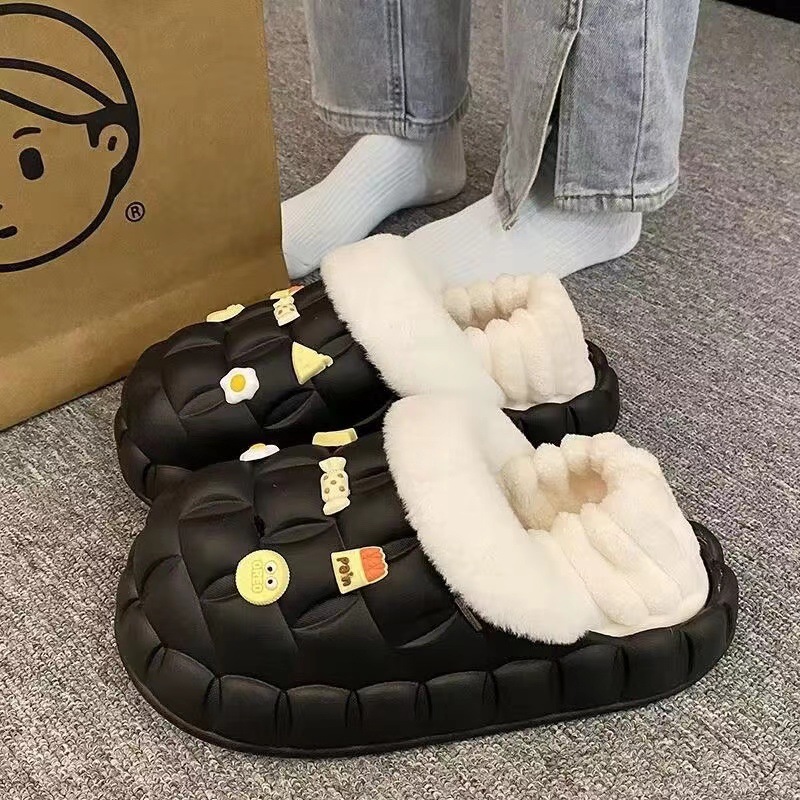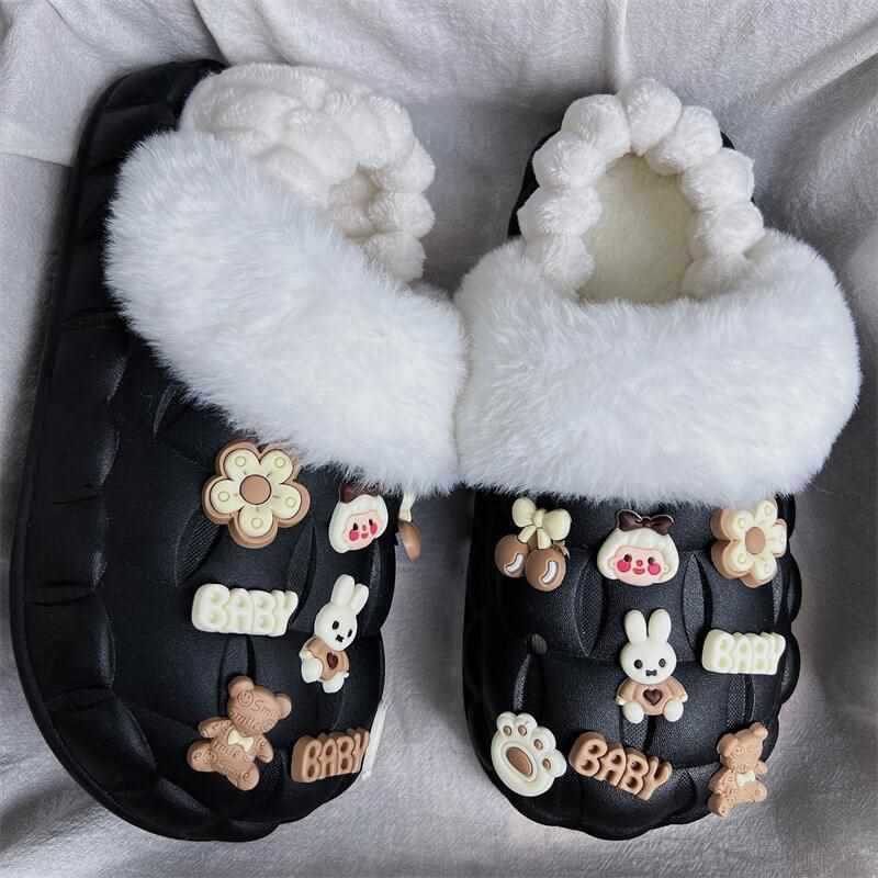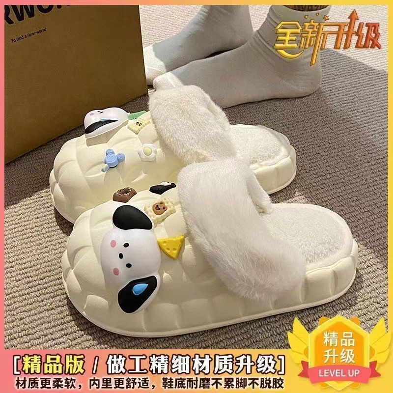 2025女新款可拆卸冬季外穿家居室内毛绒棉拖鞋防水保暖毛毛拖鞋