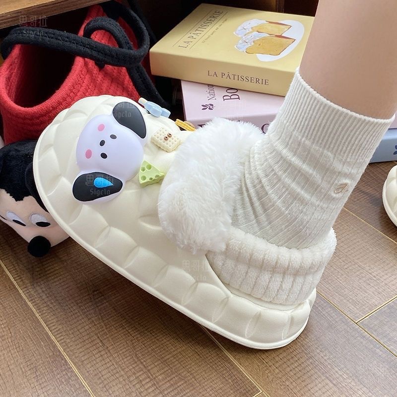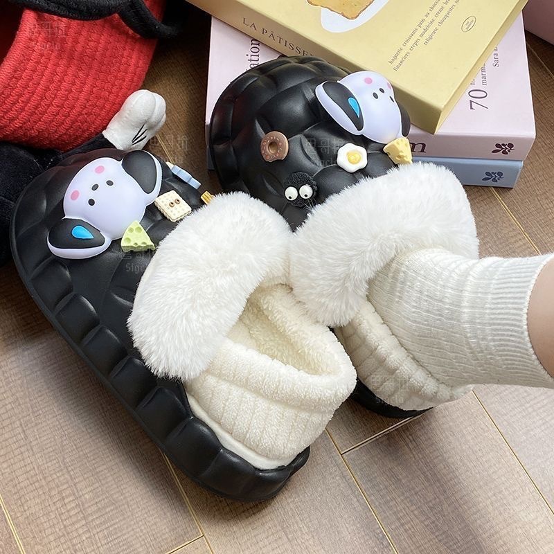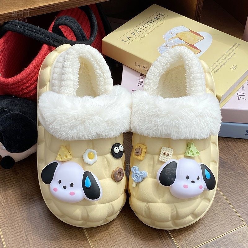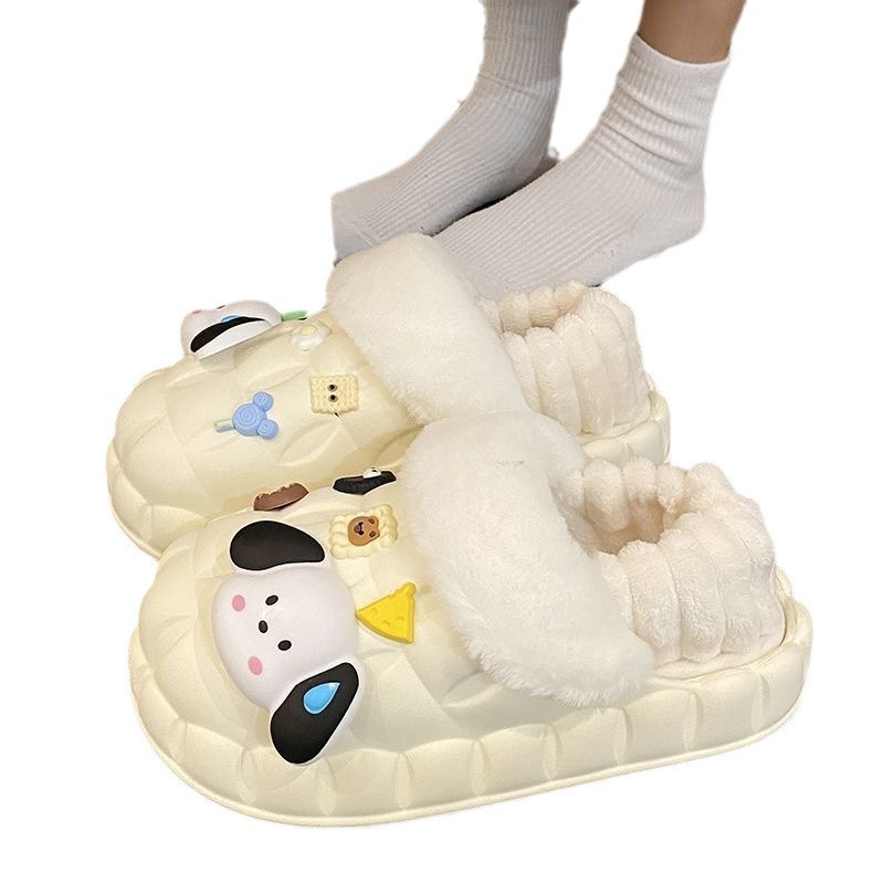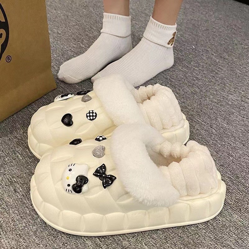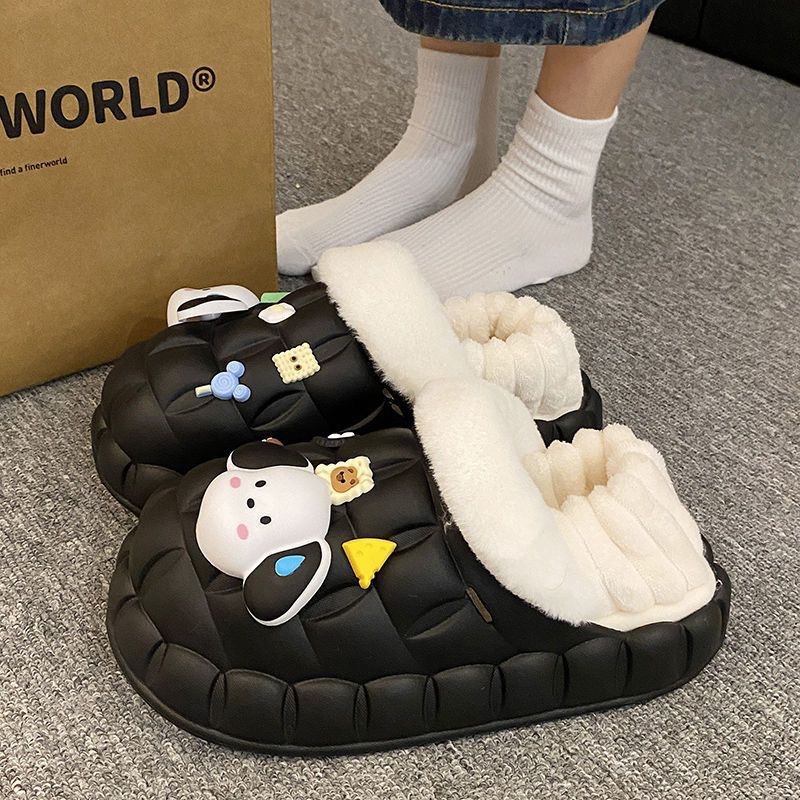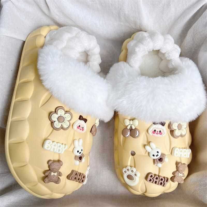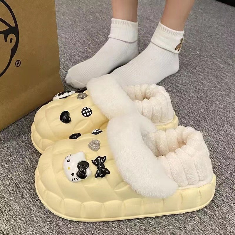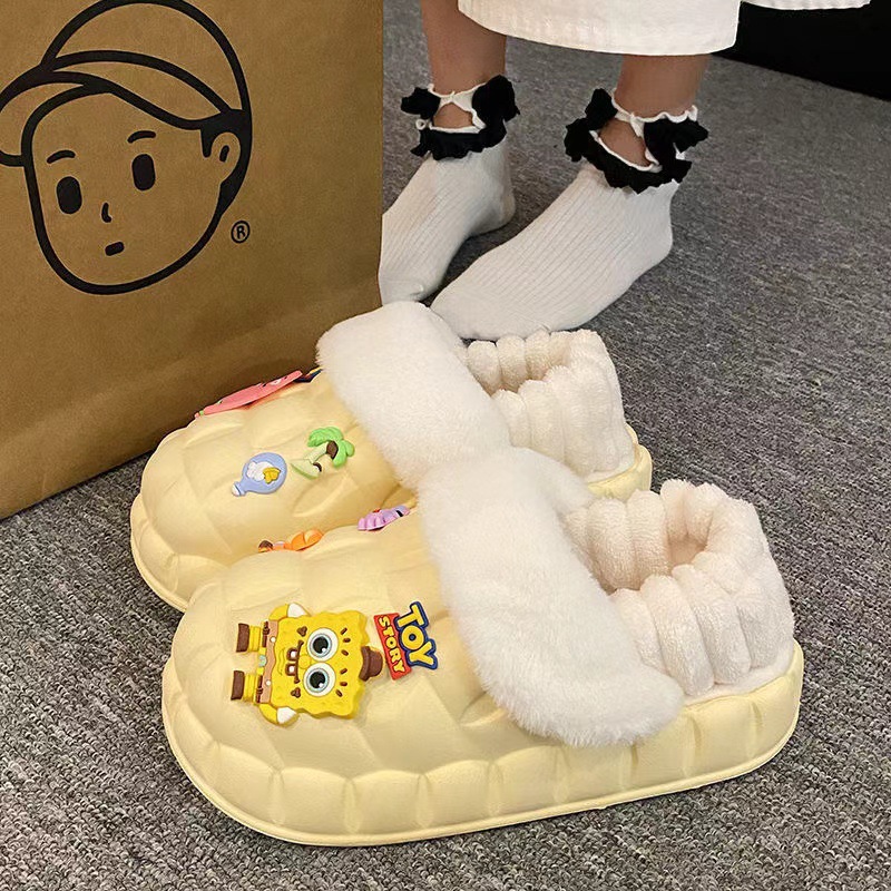 2025女新款可拆卸冬季外穿家居室内毛绒棉拖鞋防水保暖毛毛拖鞋