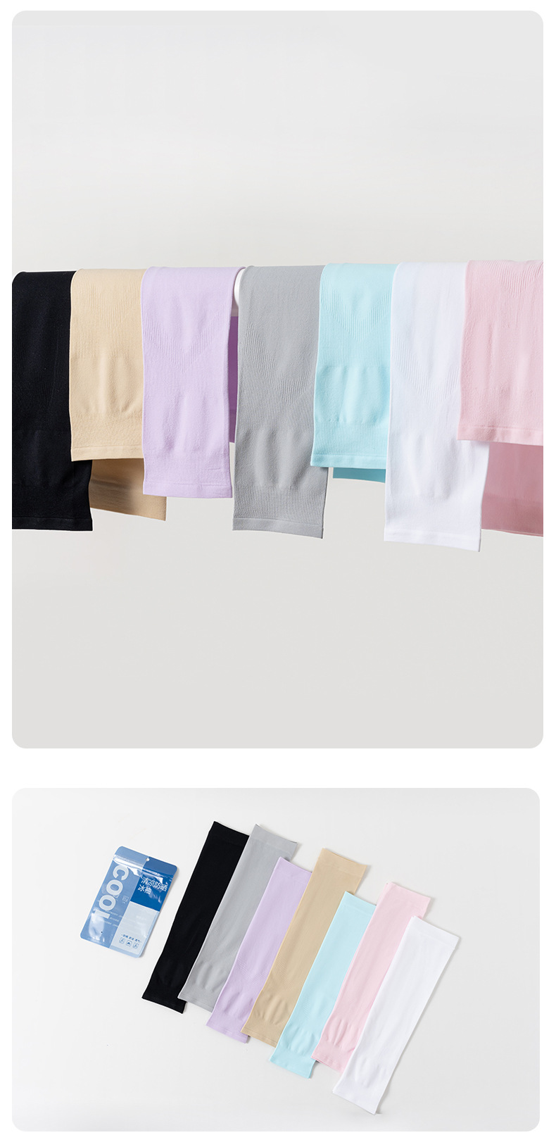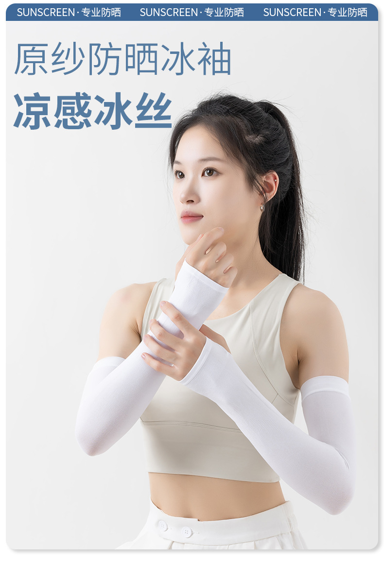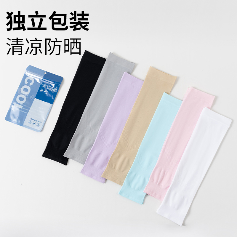 冰袖纯色防晒袖套烫印LOGO男女冰丝袖套夏季防紫外线手臂套袖批发