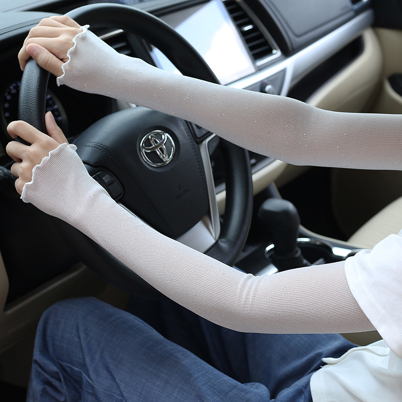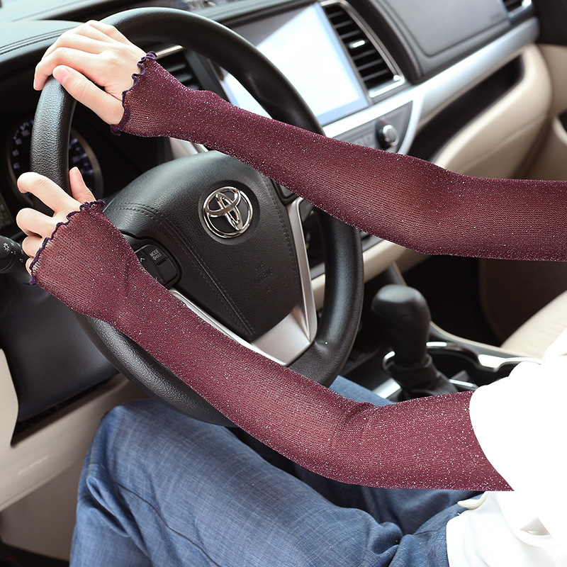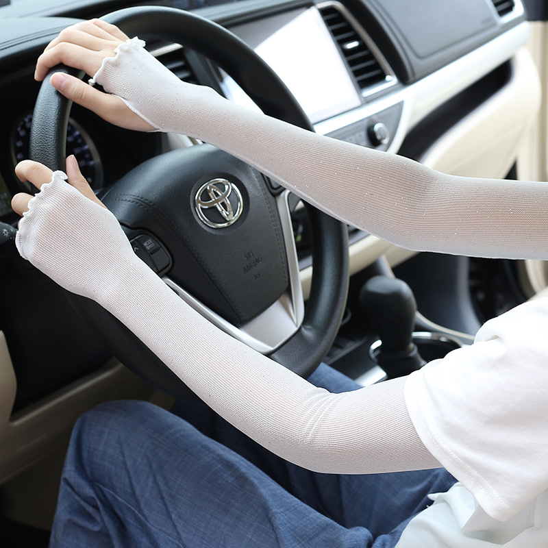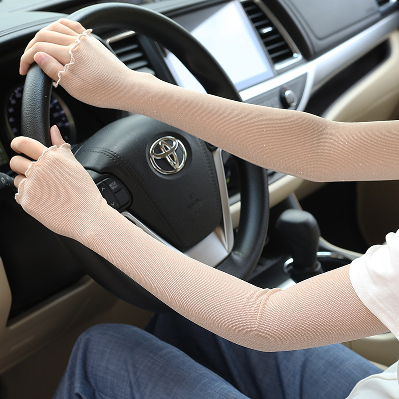 厂家直销薄款防晒袖套女夏季网纱冰袖长款半指手套开骑车护臂批发
