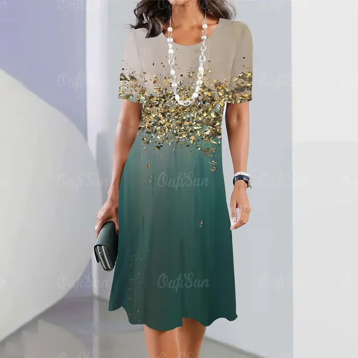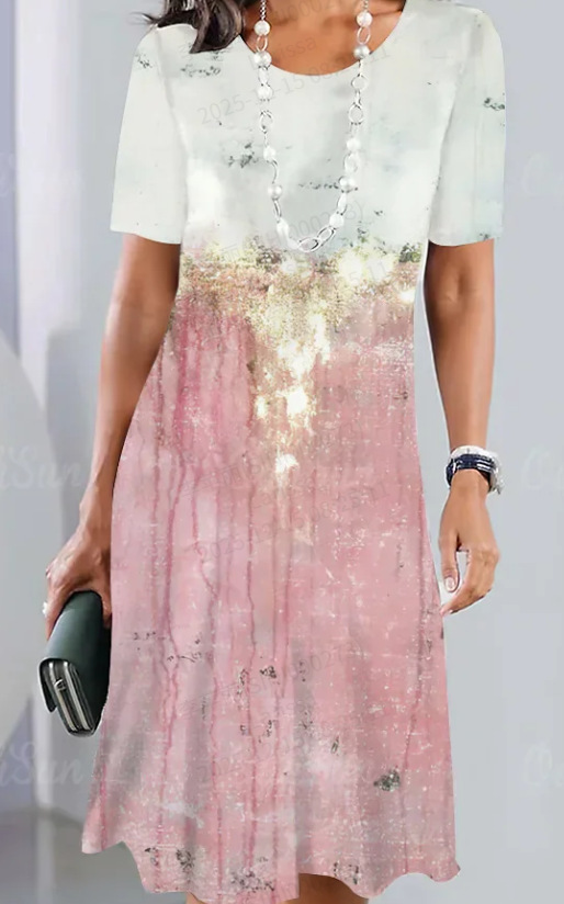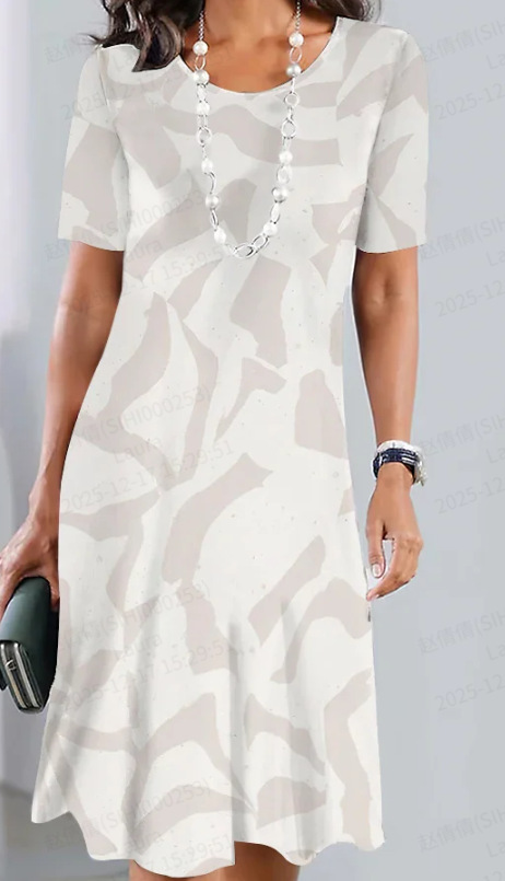 欧美新款女士连衣裙跨境时尚百搭日常休闲宽松大码圆领短袖连衣裙