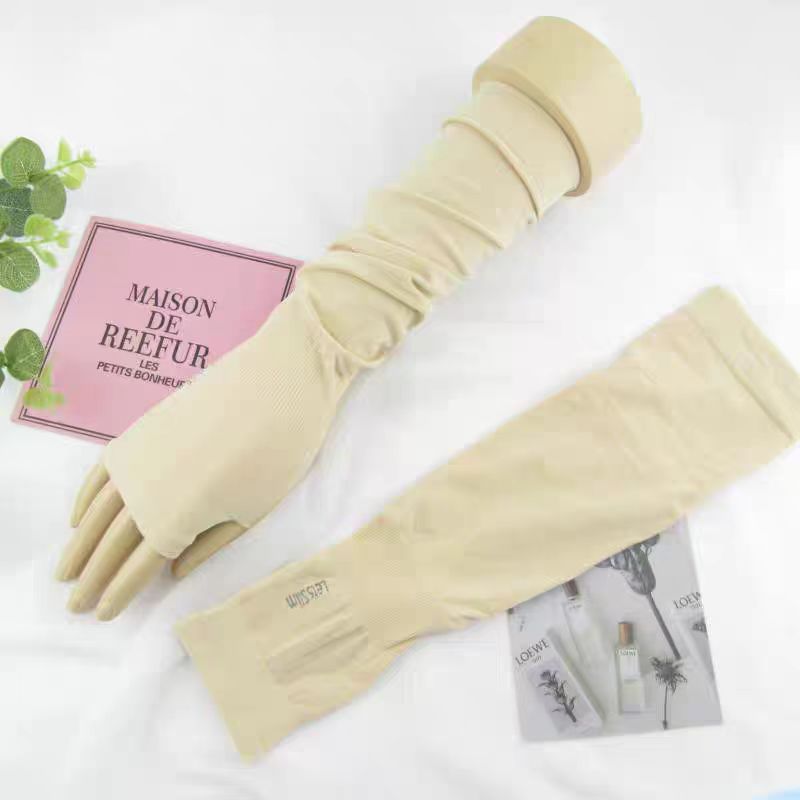 防晒袖套盒装冰袖冰爽遮阳有洞套指高弹冰丝男女骑行运动纯色冰袖