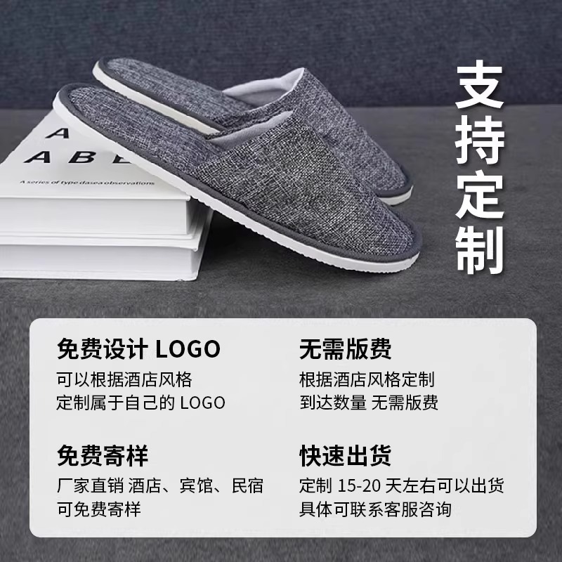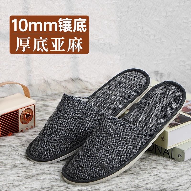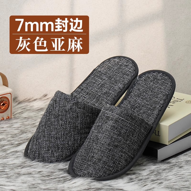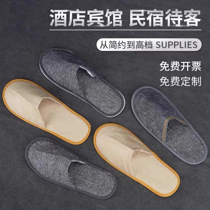 星级酒店一次性亚麻棉麻拖鞋夏季专用大码防滑宾馆民宿logo批发