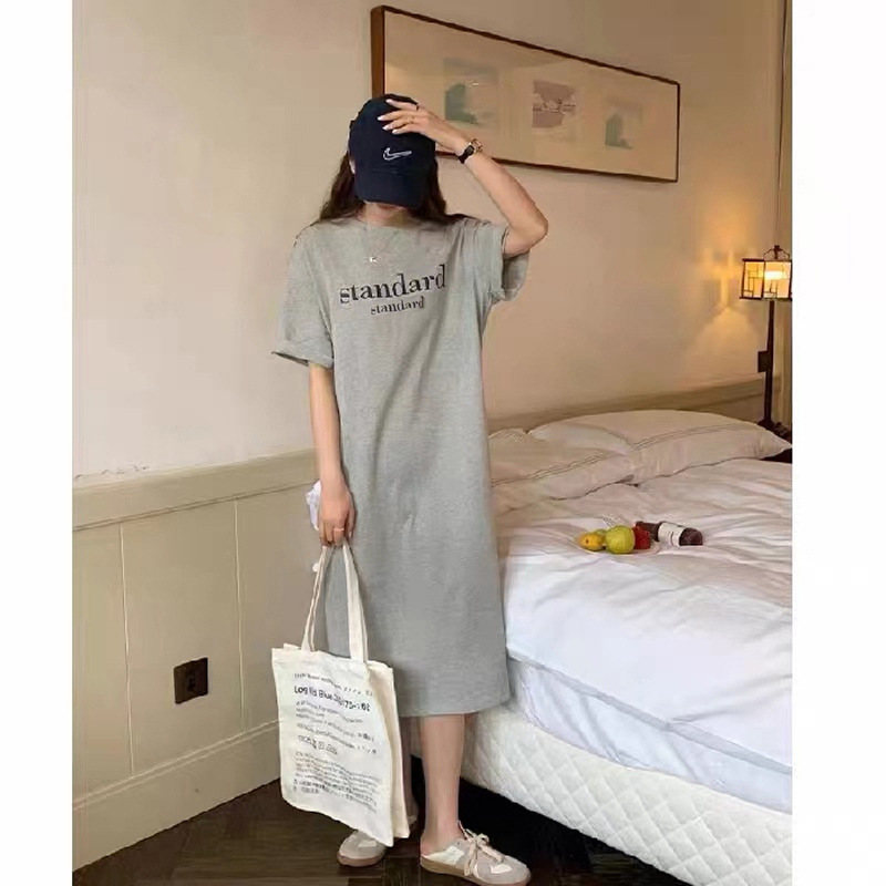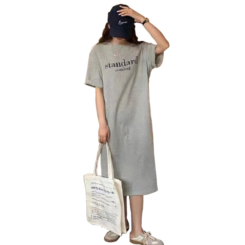 2022年新款休闲短袖女复古卡通t恤上衣夏季宽松中长款过膝连衣裙