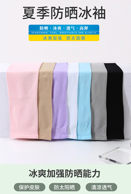 冰袖定制logo防晒冰丝袖套男女防紫外线夏季户外袖套简约纯色针织