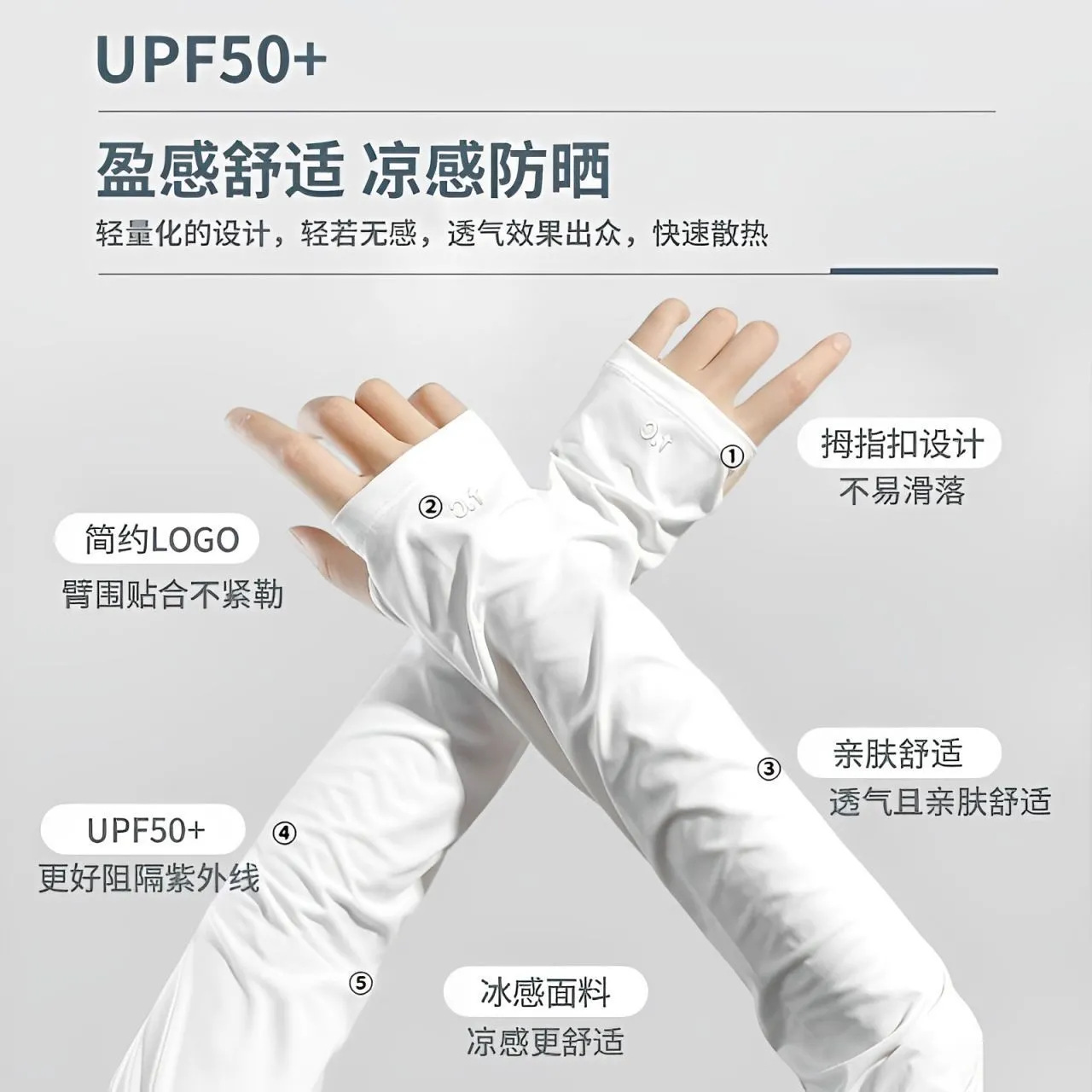 专业防晒冰袖男女款 UPF50+ 冰感透气 袖套运动健身跑步骑行适用
