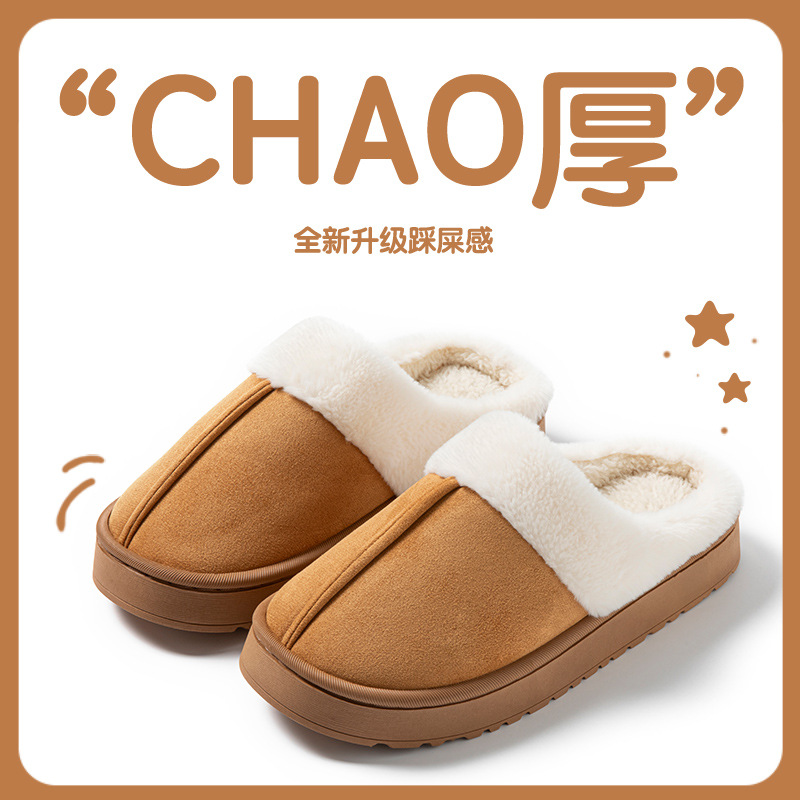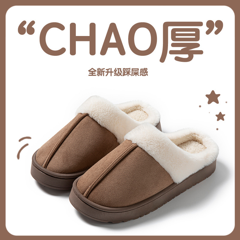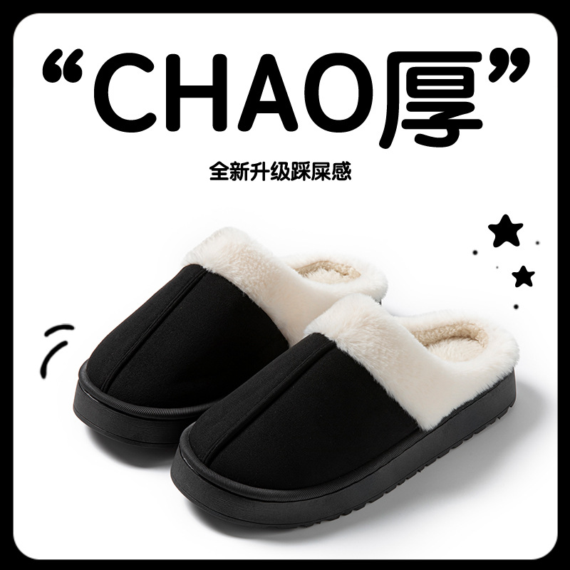 棉拖鞋女士秋冬季室内家居家防滑厚底情侣踩屎感毛毛绒保暖月子鞋